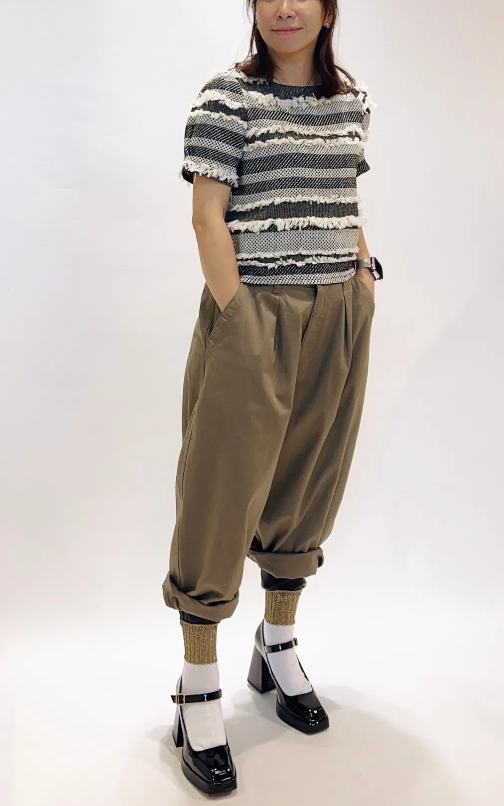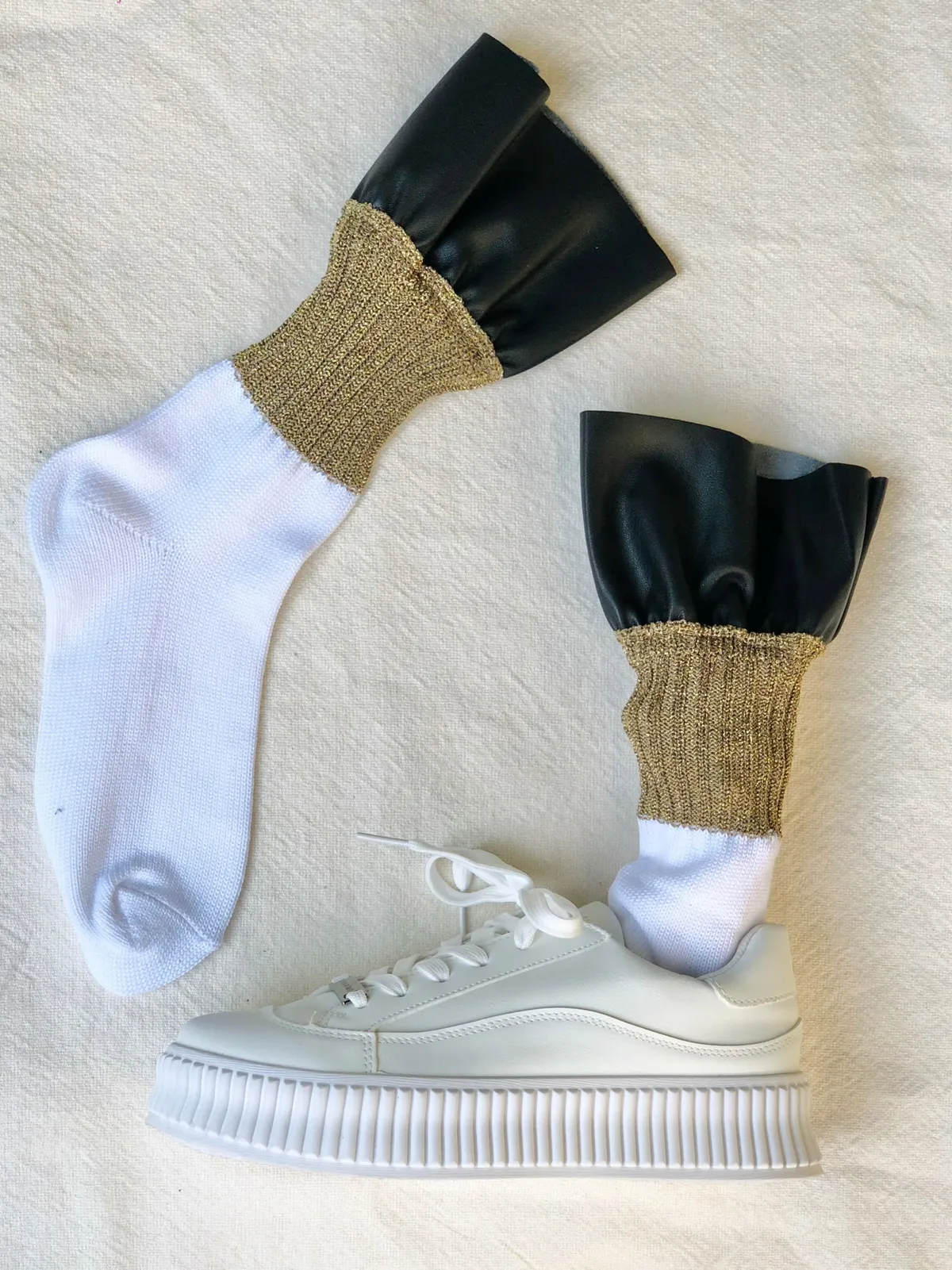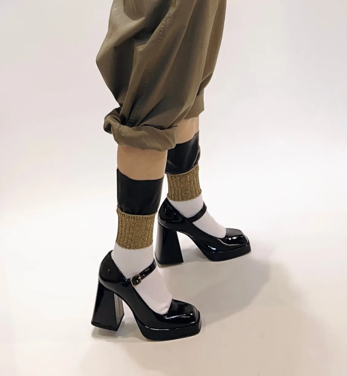 [日本製造]皮質拼接金蔥襪