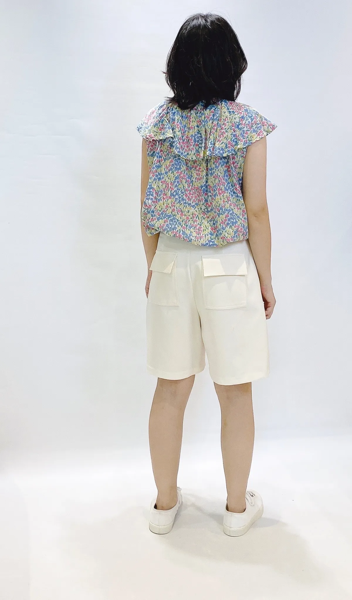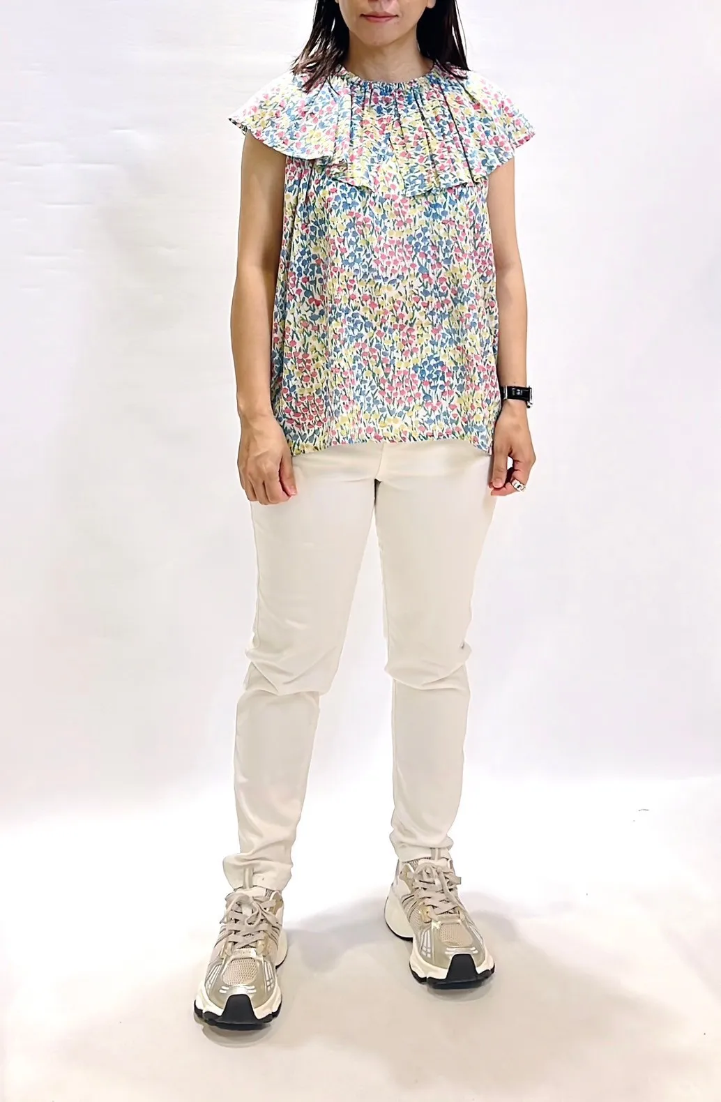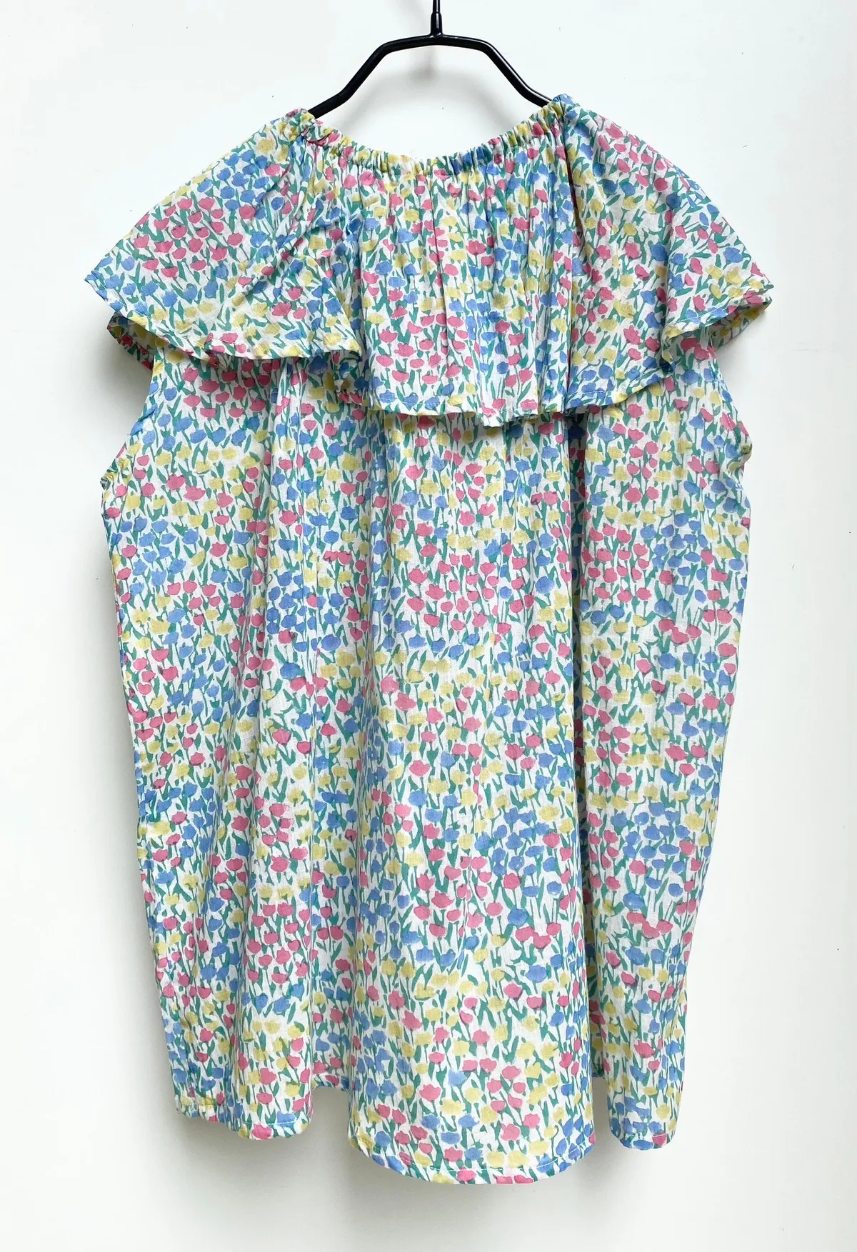 .碎花領片設計,側邊小包袖可修飾肩膀手臂