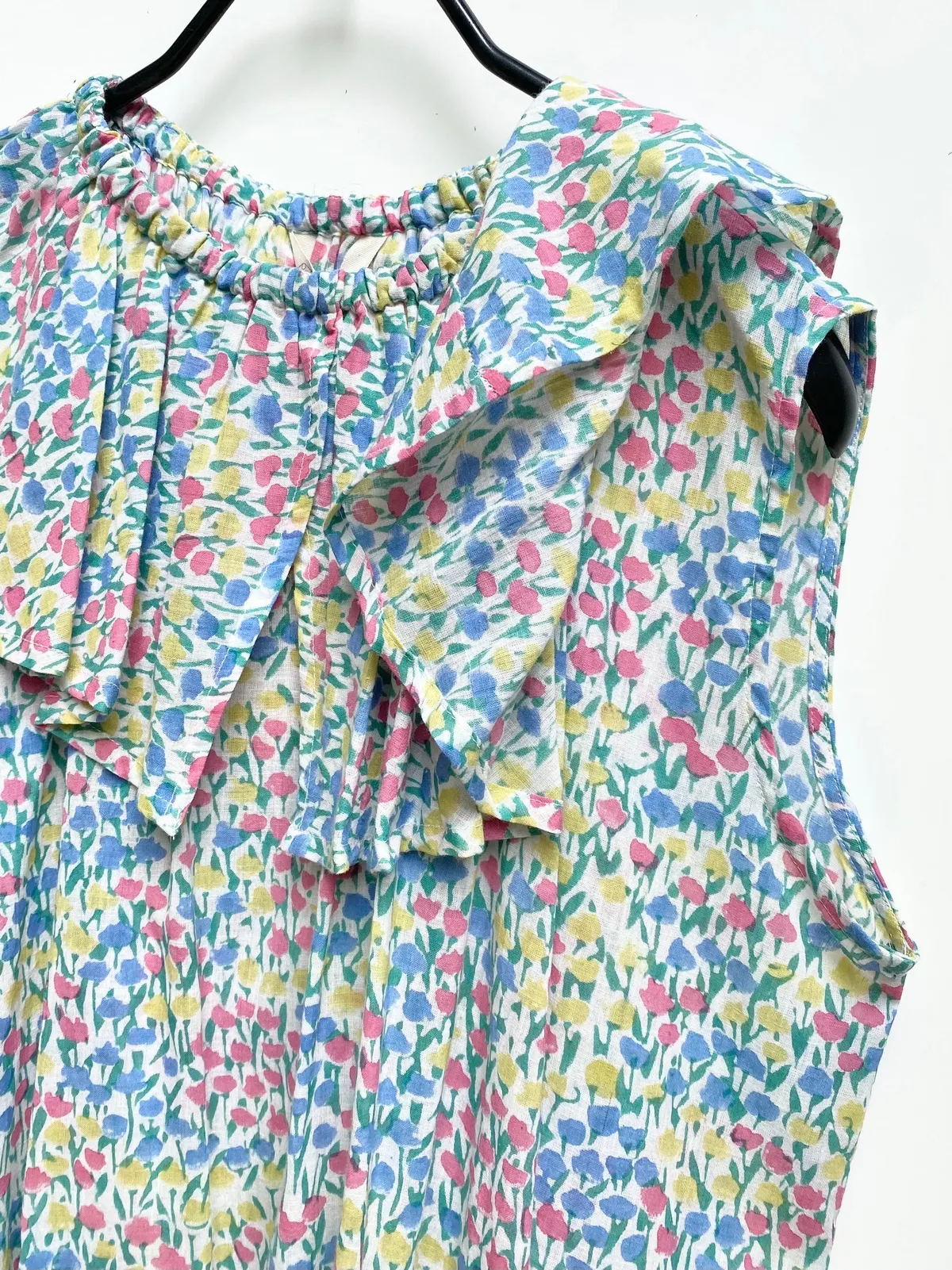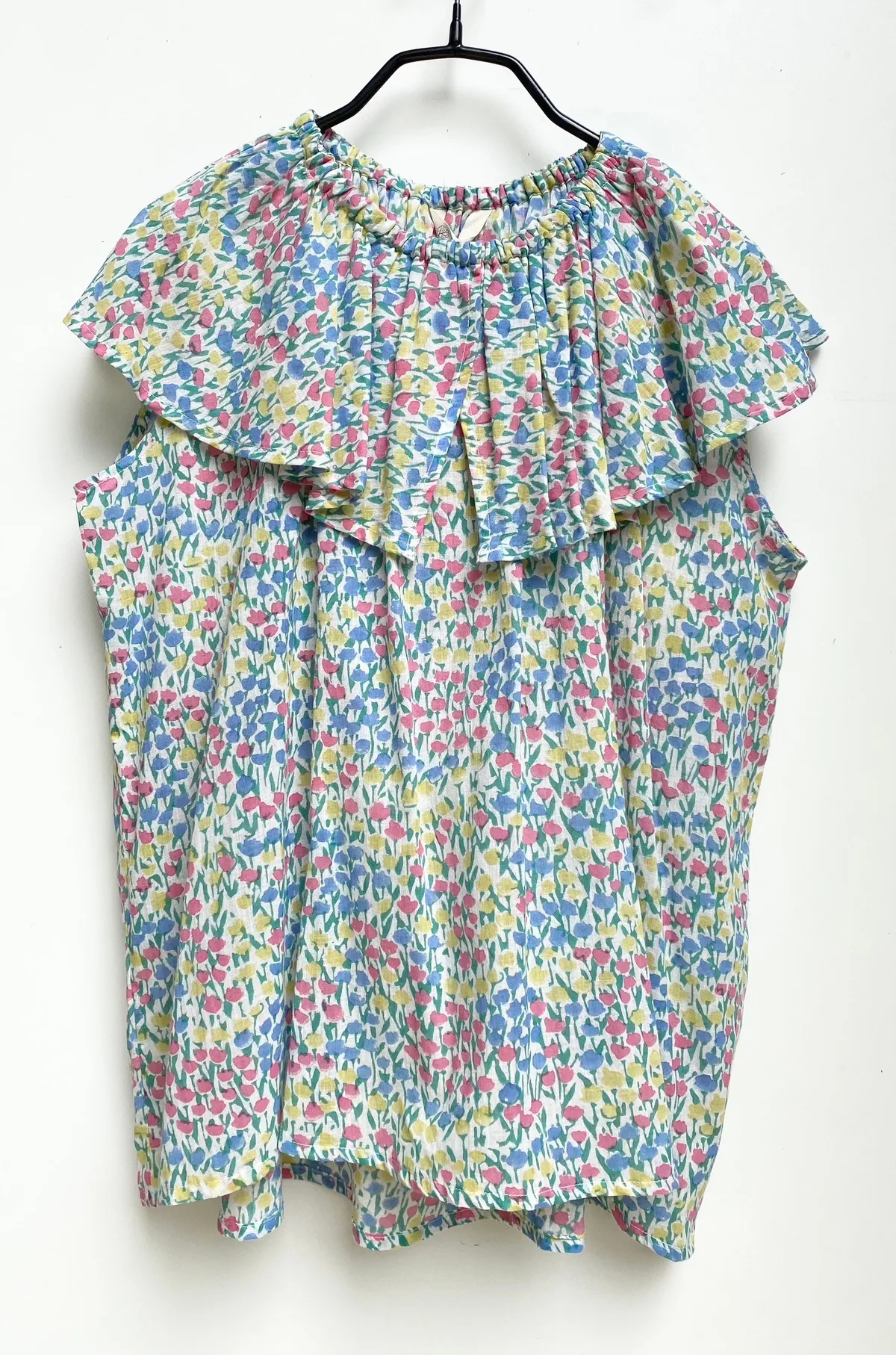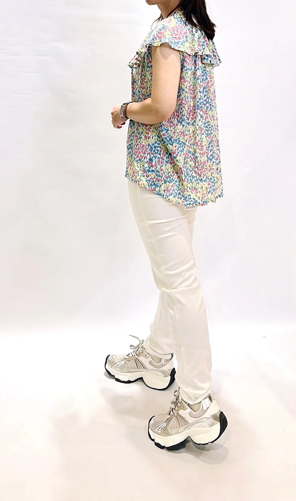 .碎花領片設計,側邊小包袖可修飾肩膀手臂