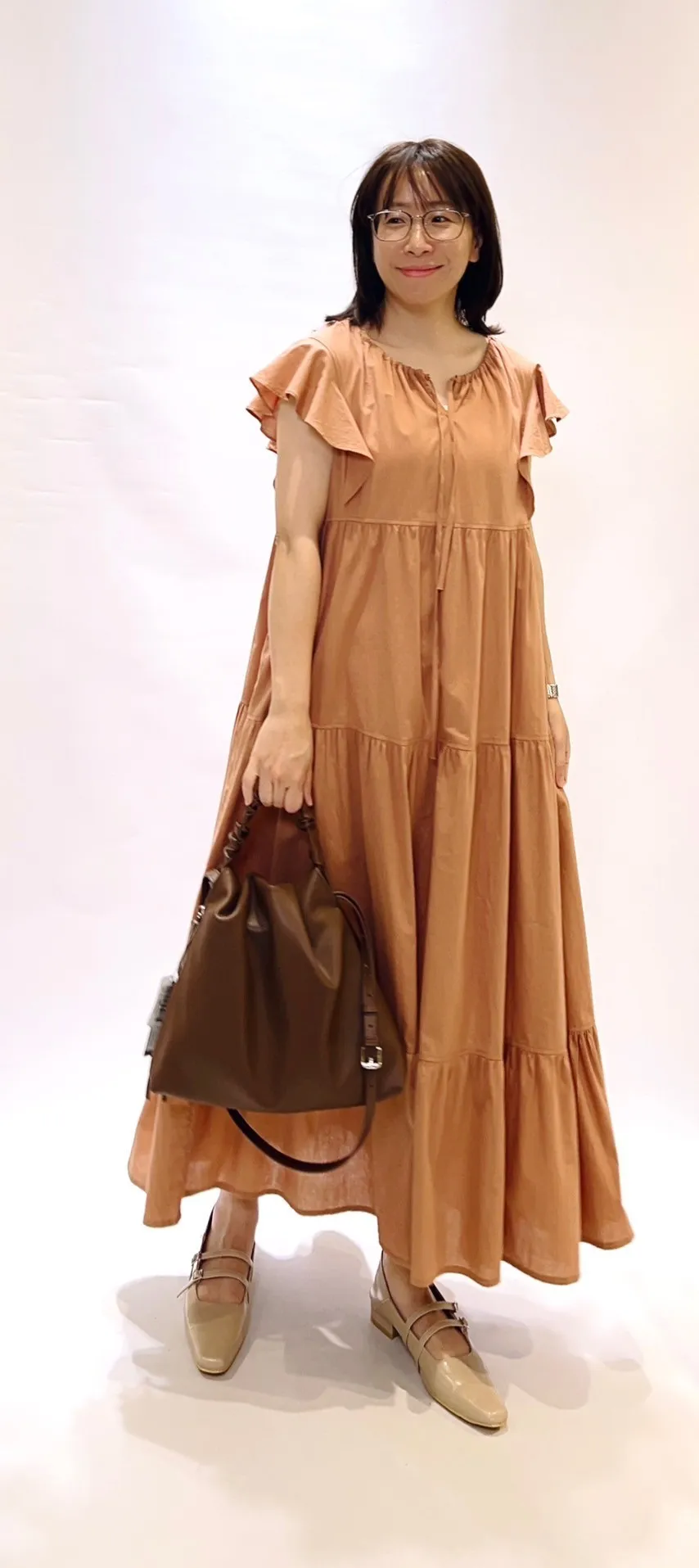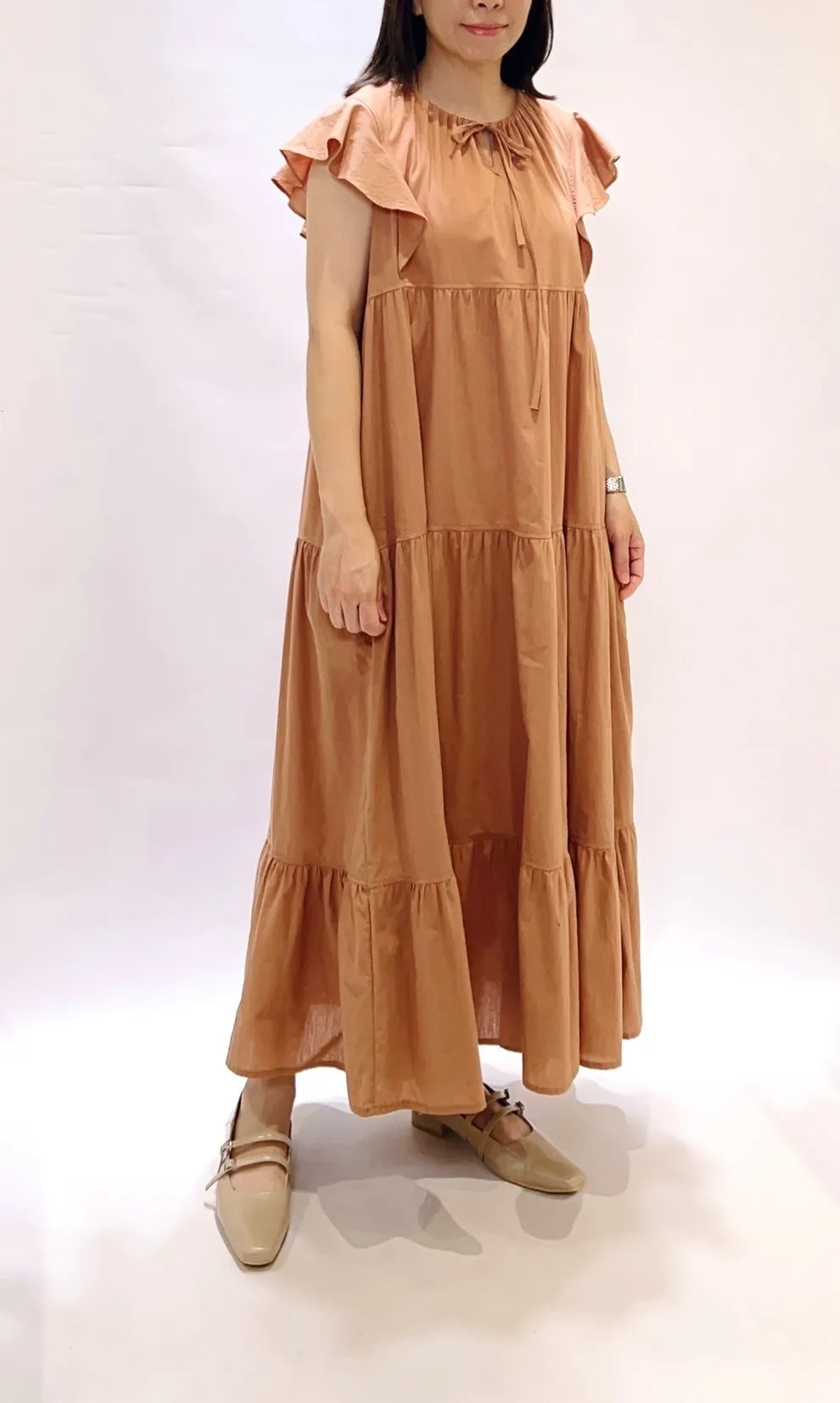 領綁結荷葉層次洋裝