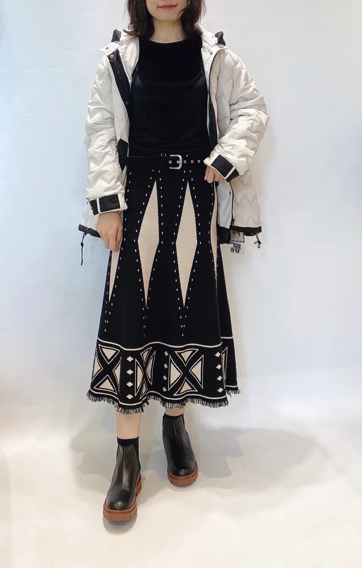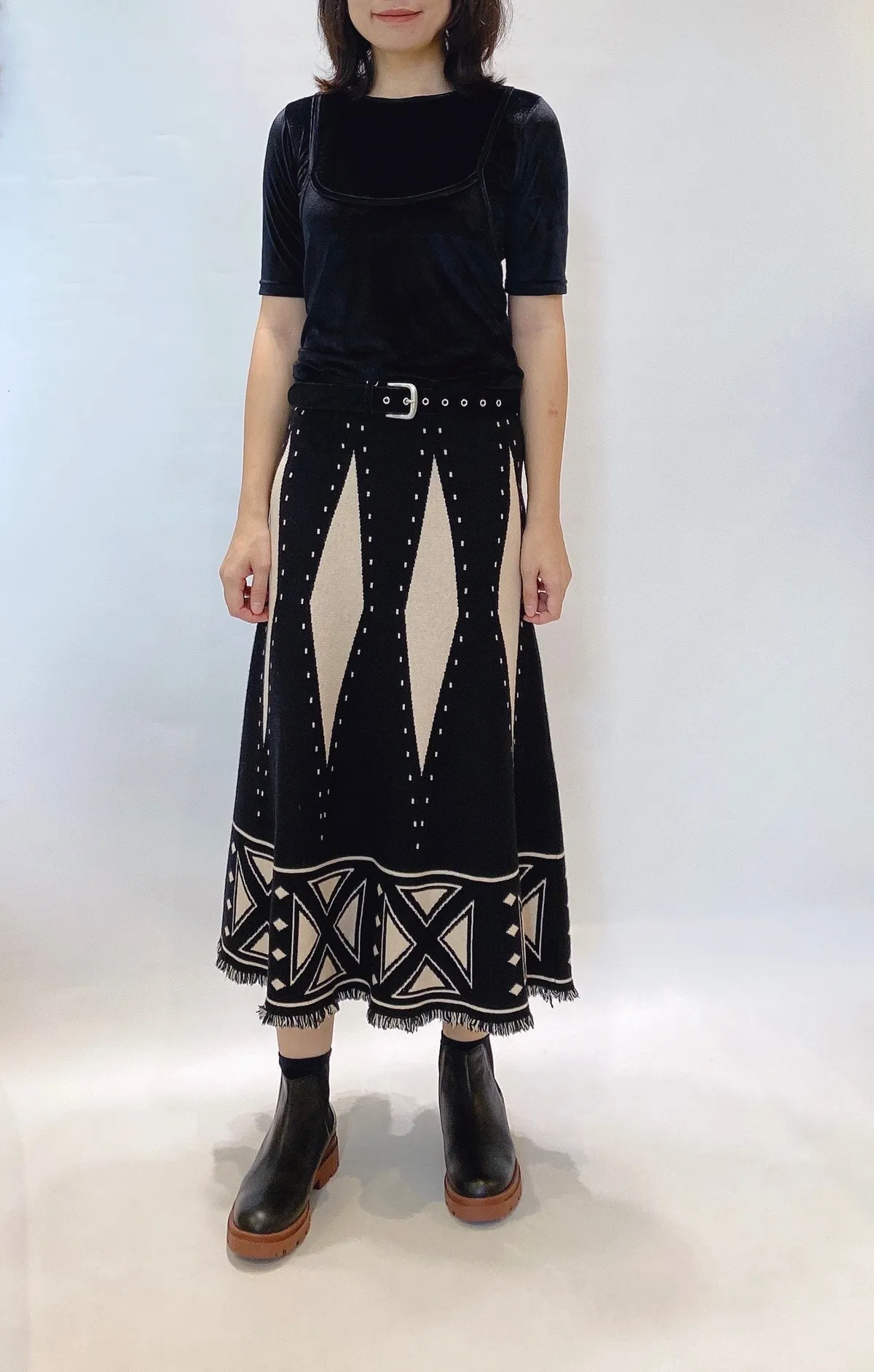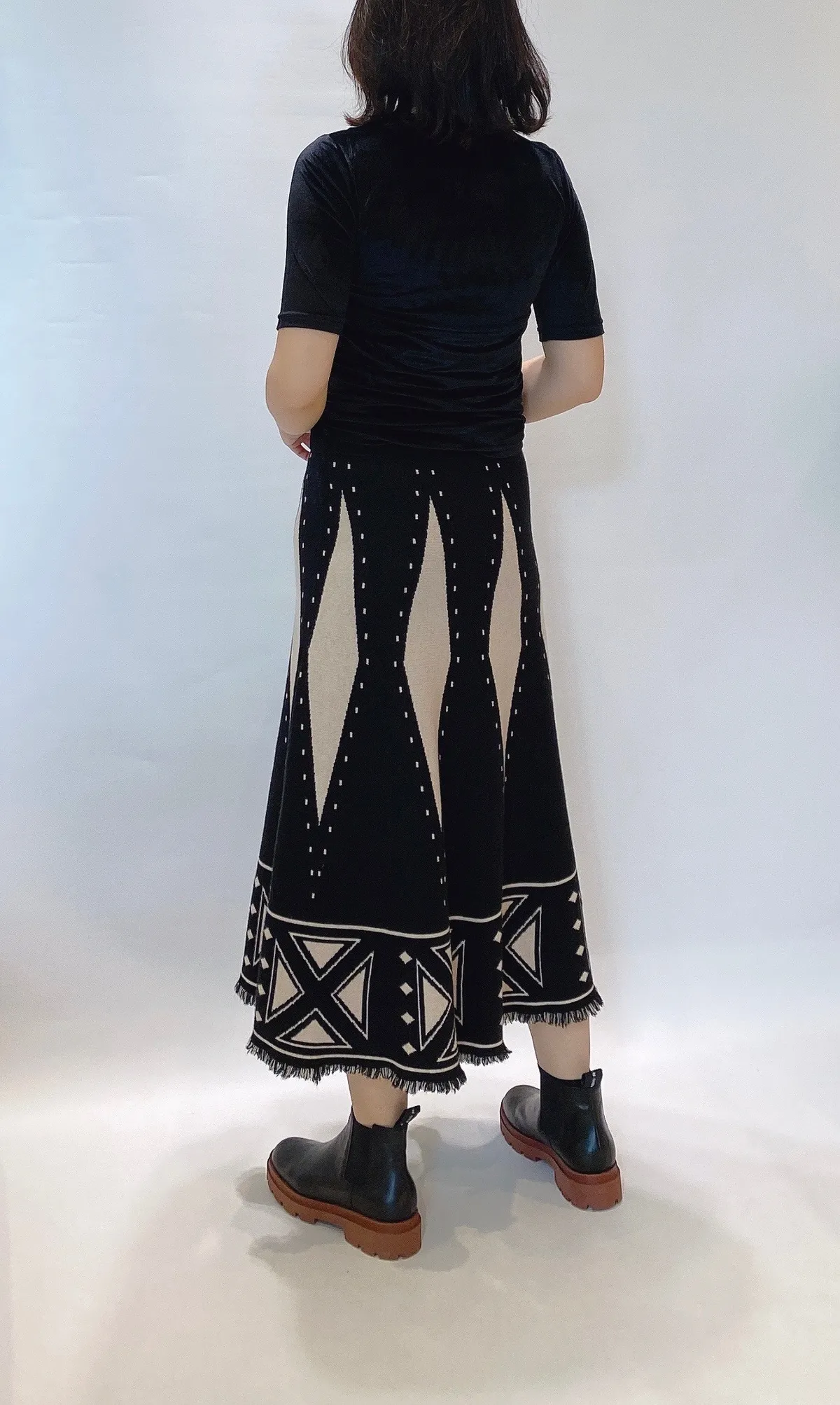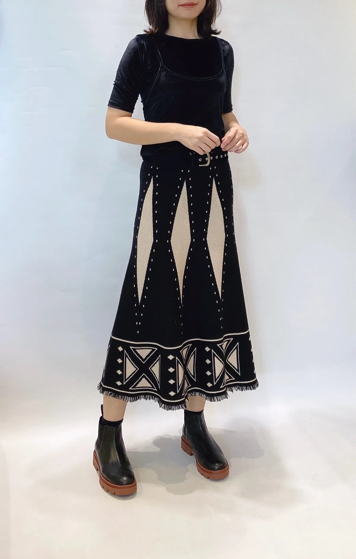 菱格流蘇針織長裙