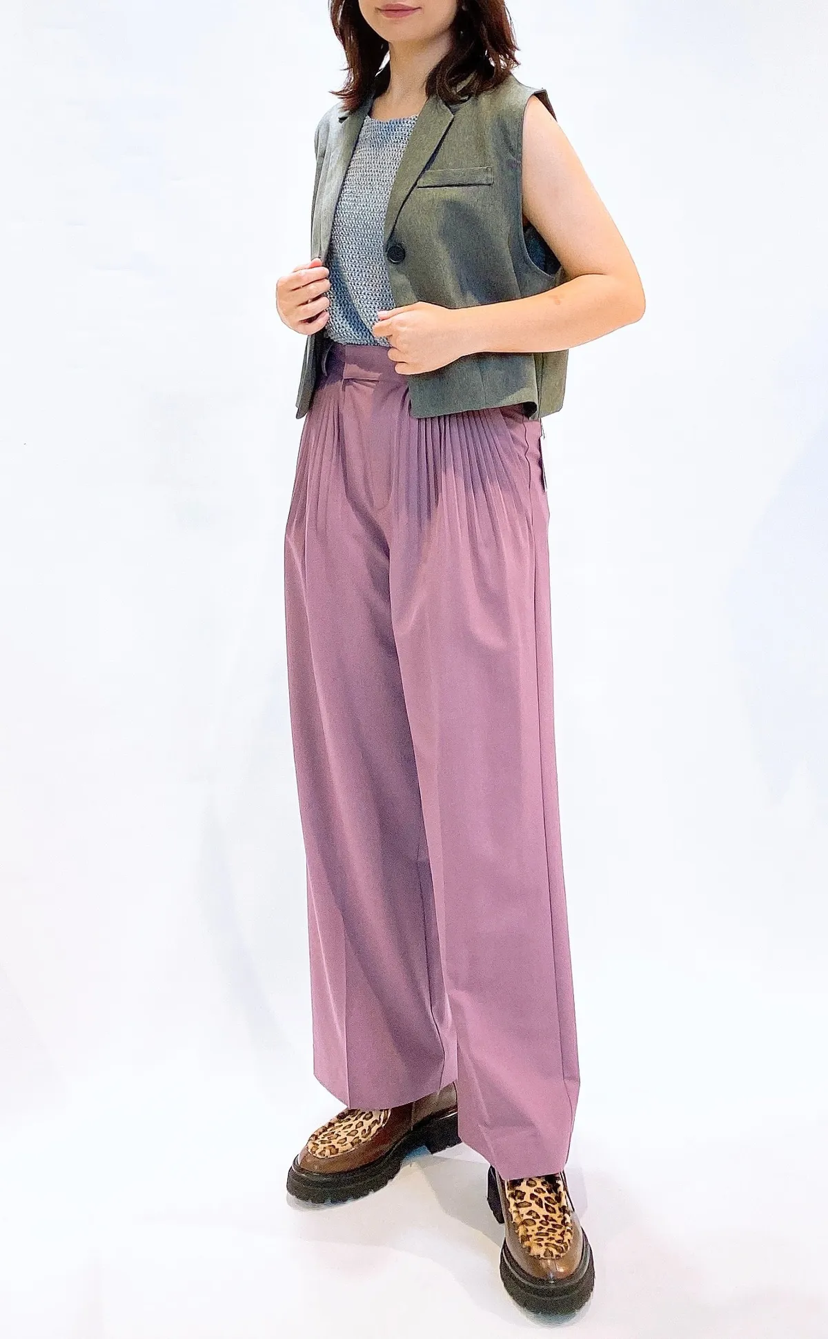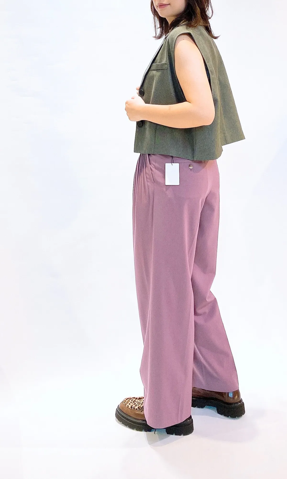 細壓摺滑面直筒褲