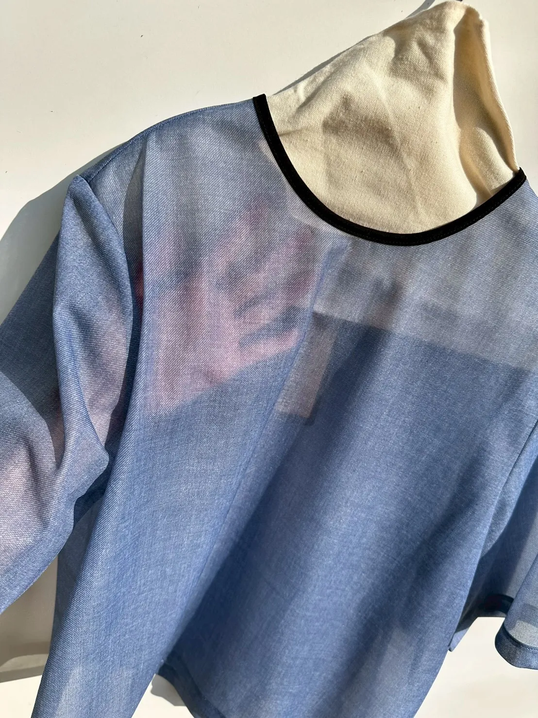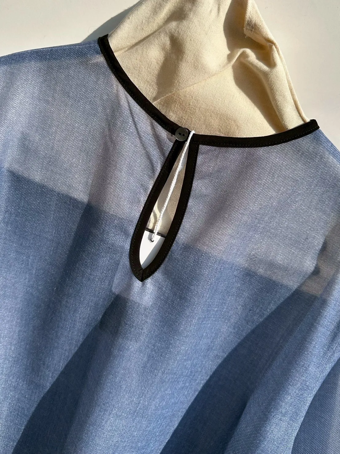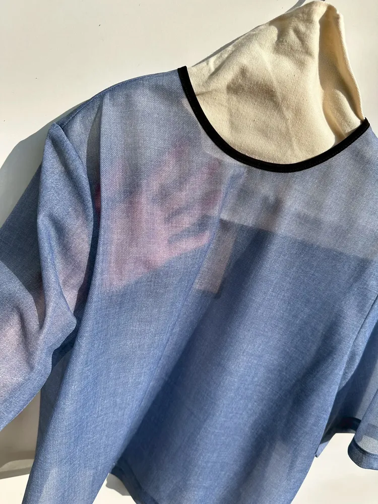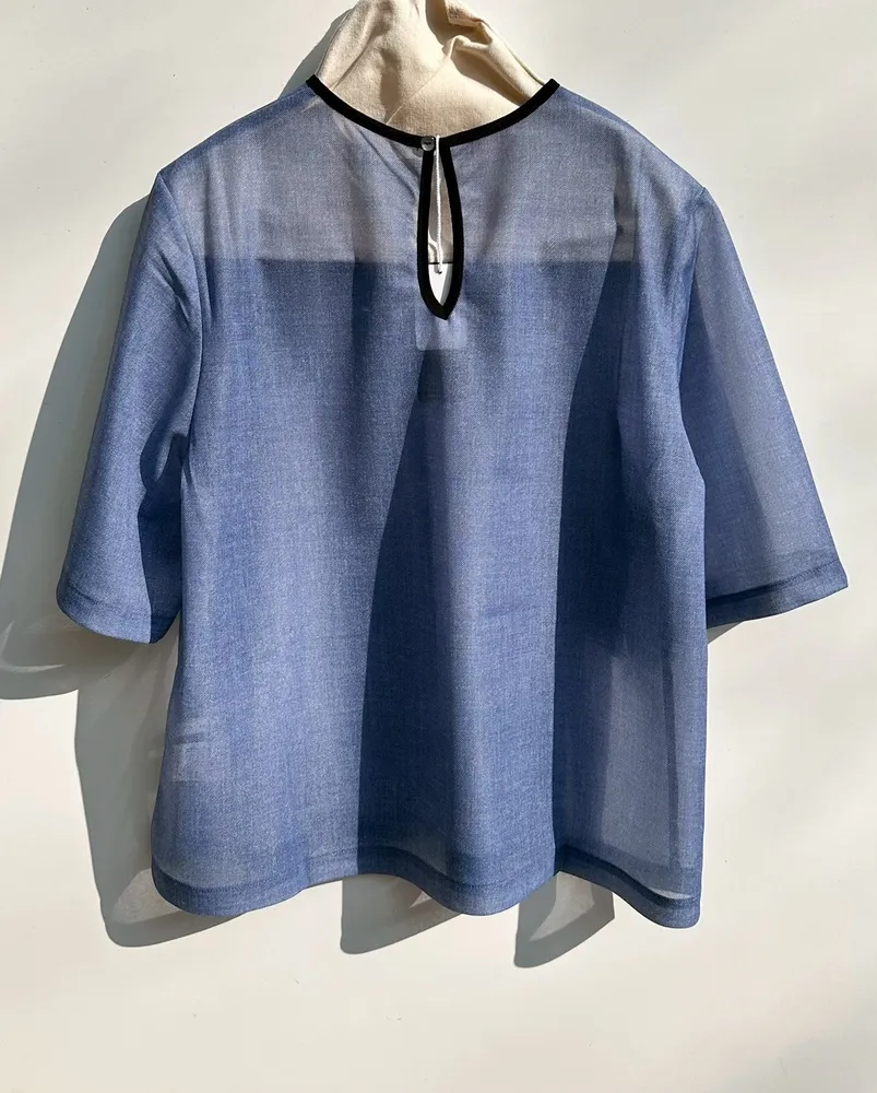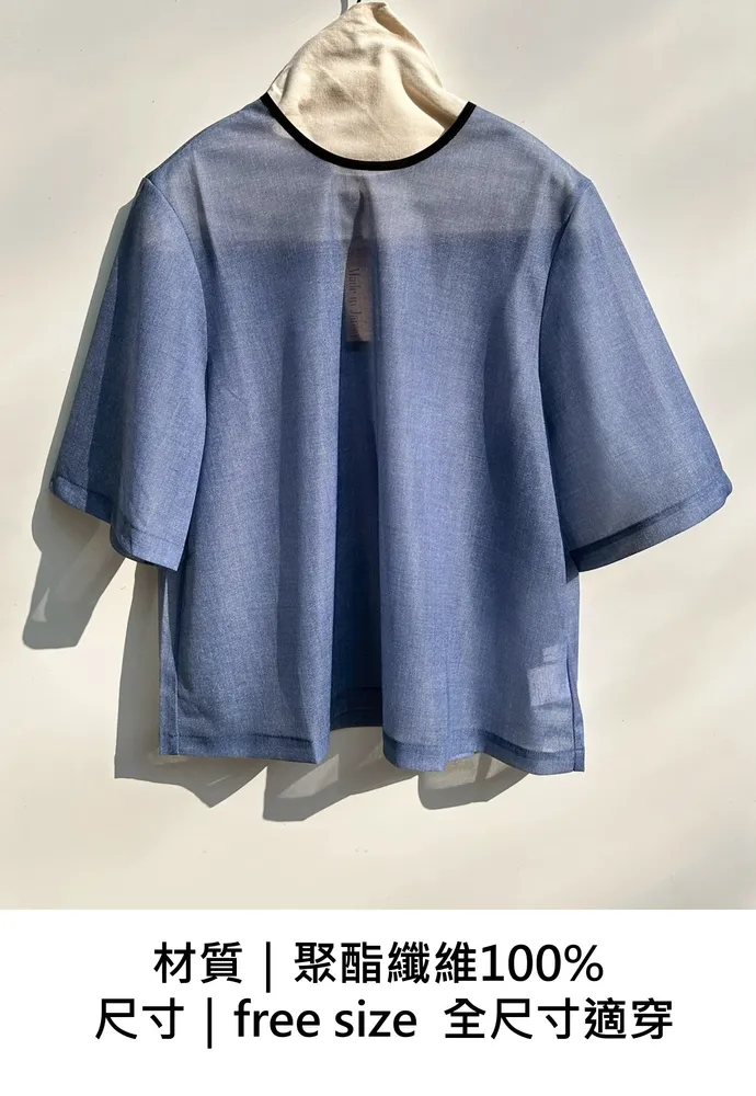 (日製)滾領邊透明感牛仔藍上衣