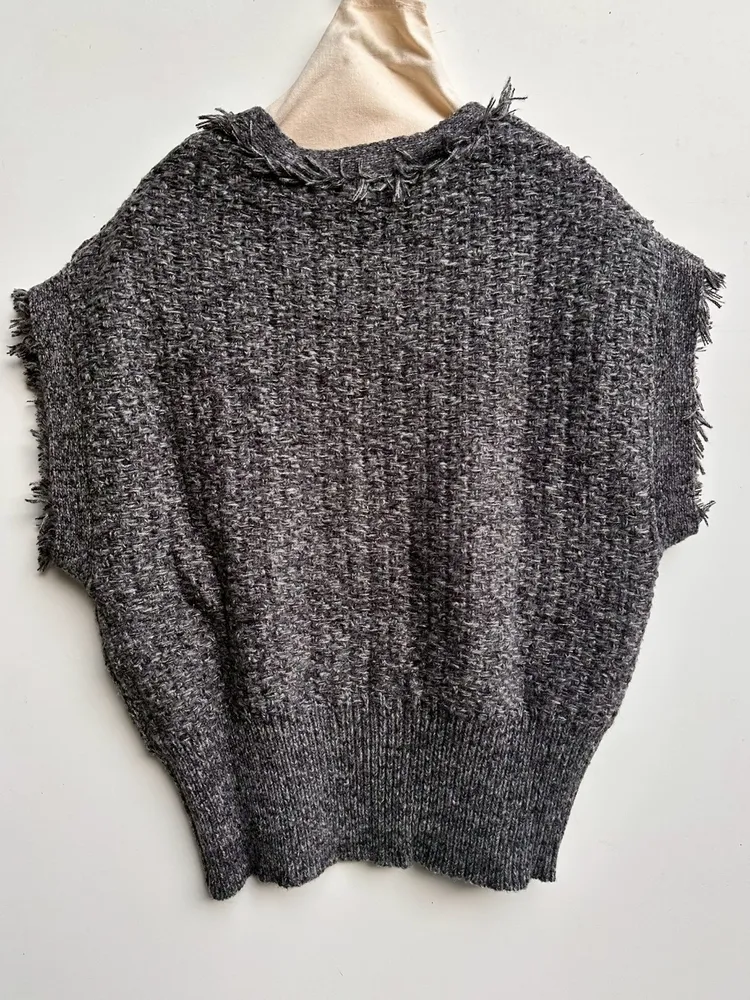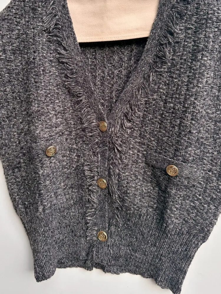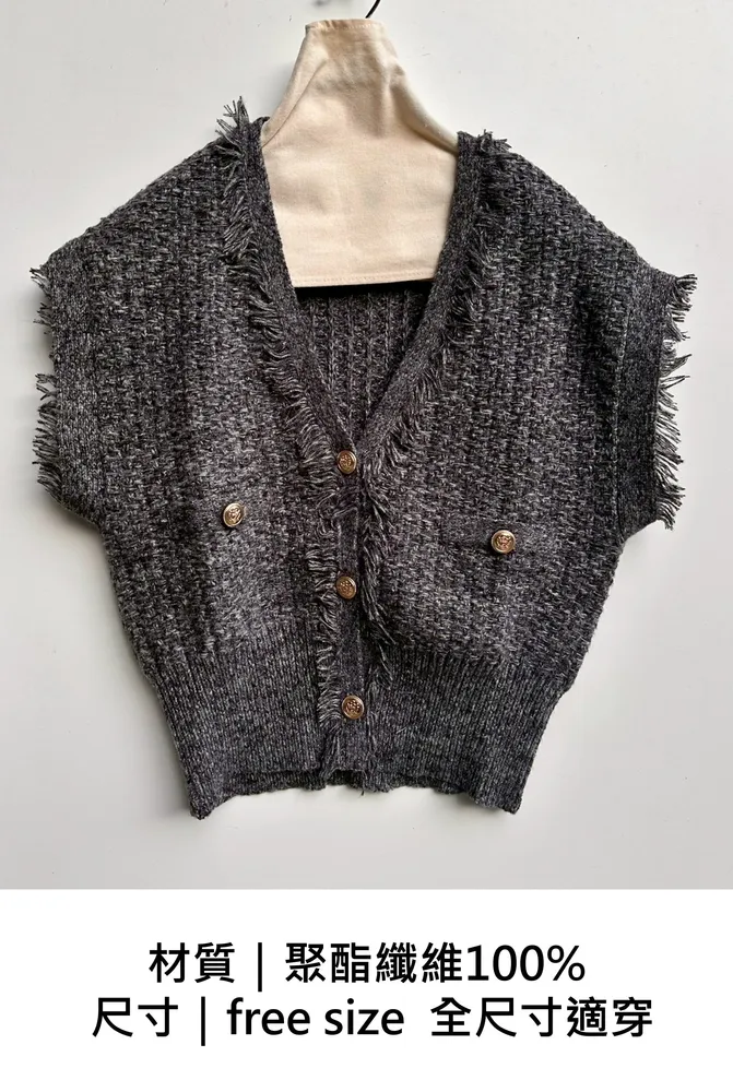 粗花呢針織V流蘇背心