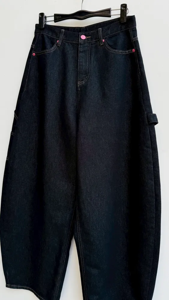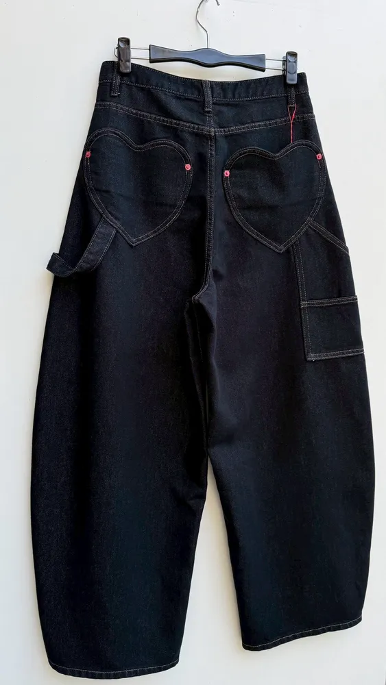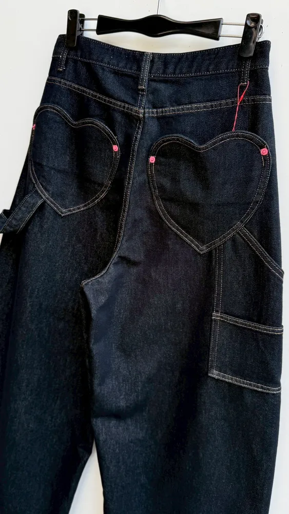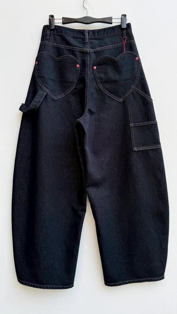 彎刀愛心口袋工裝牛仔褲