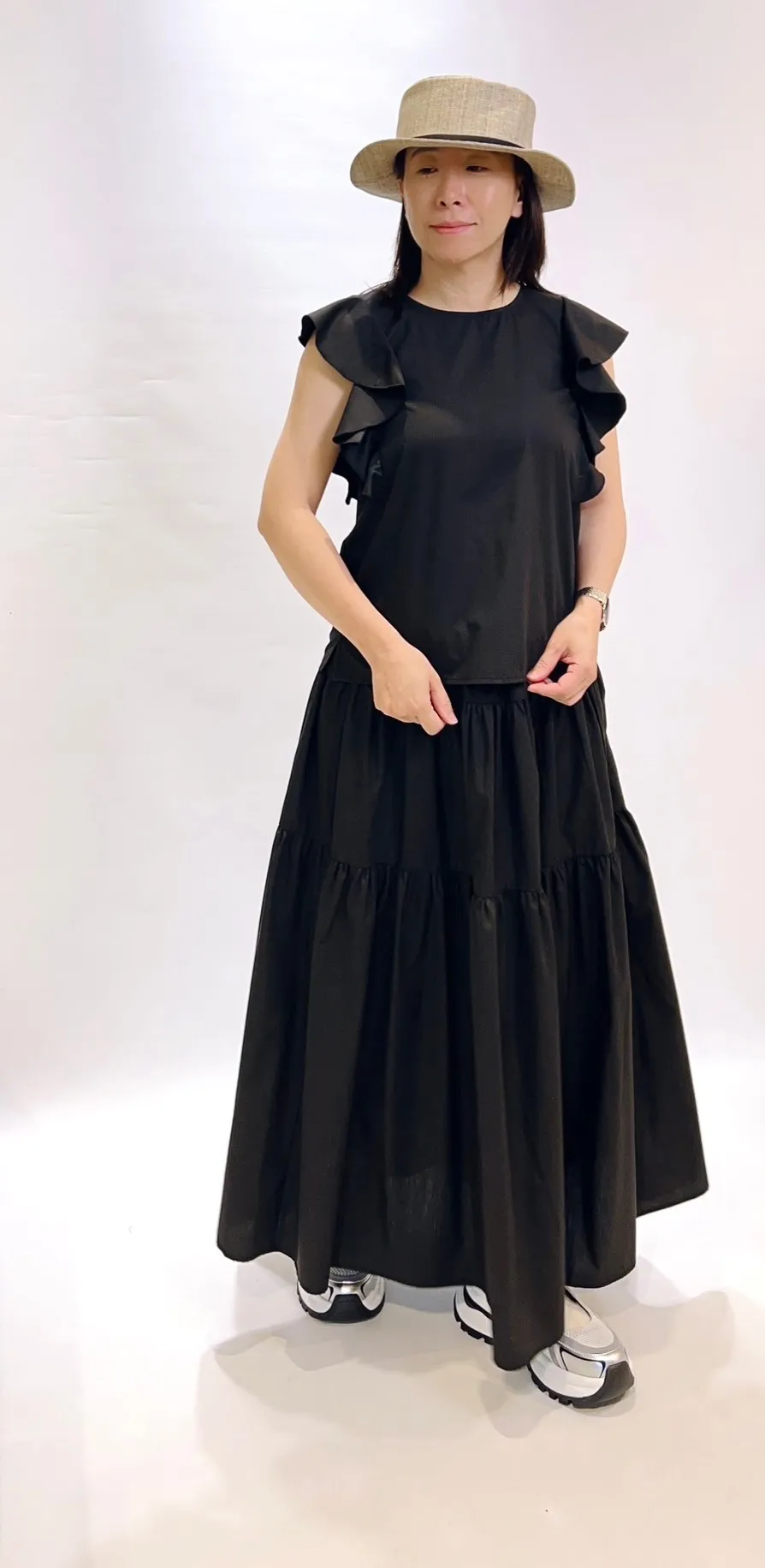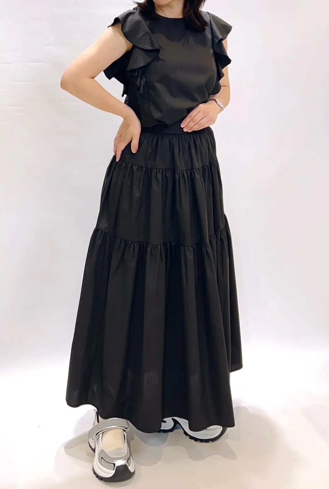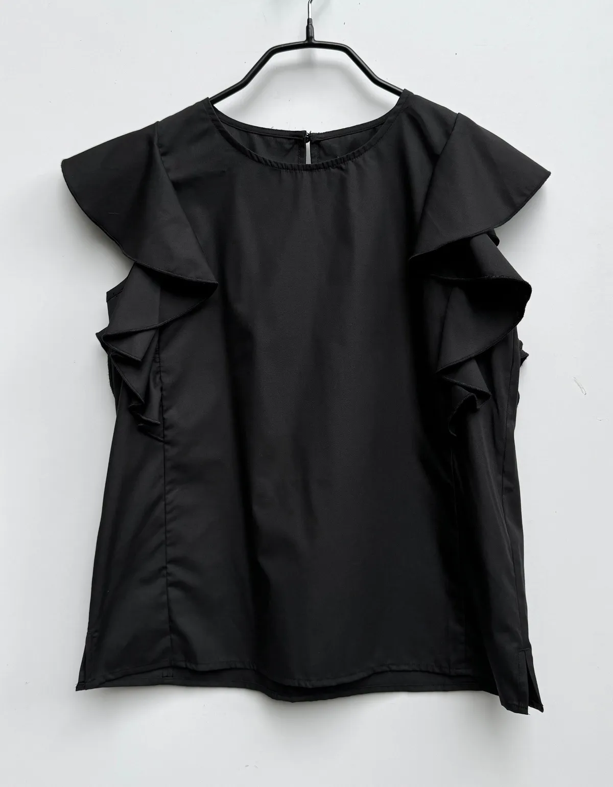 素面荷葉滾袖上衣