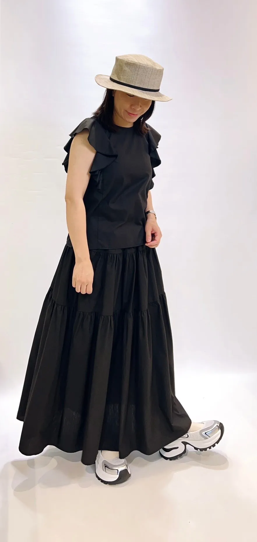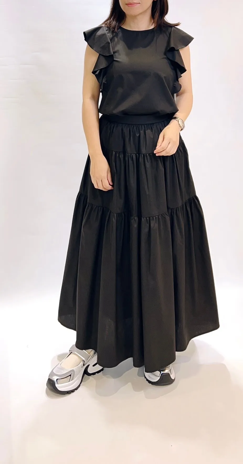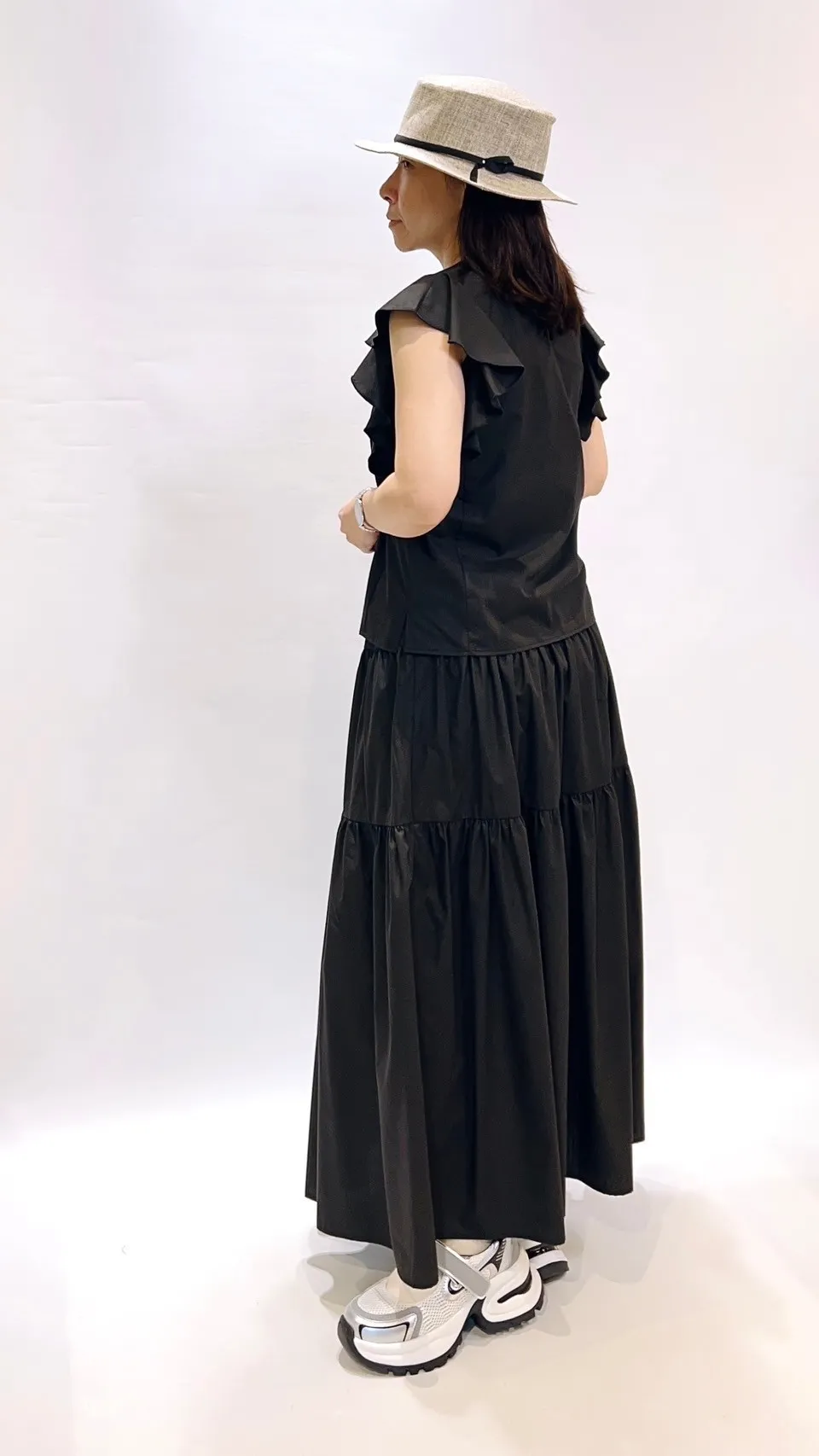 素面荷葉滾袖上衣