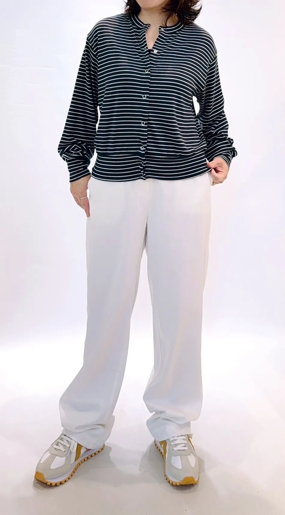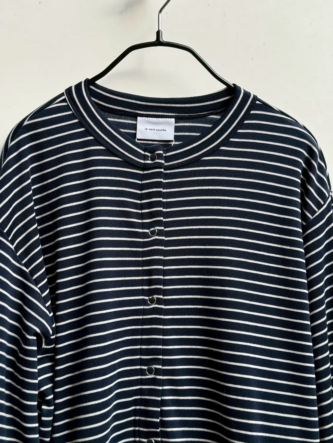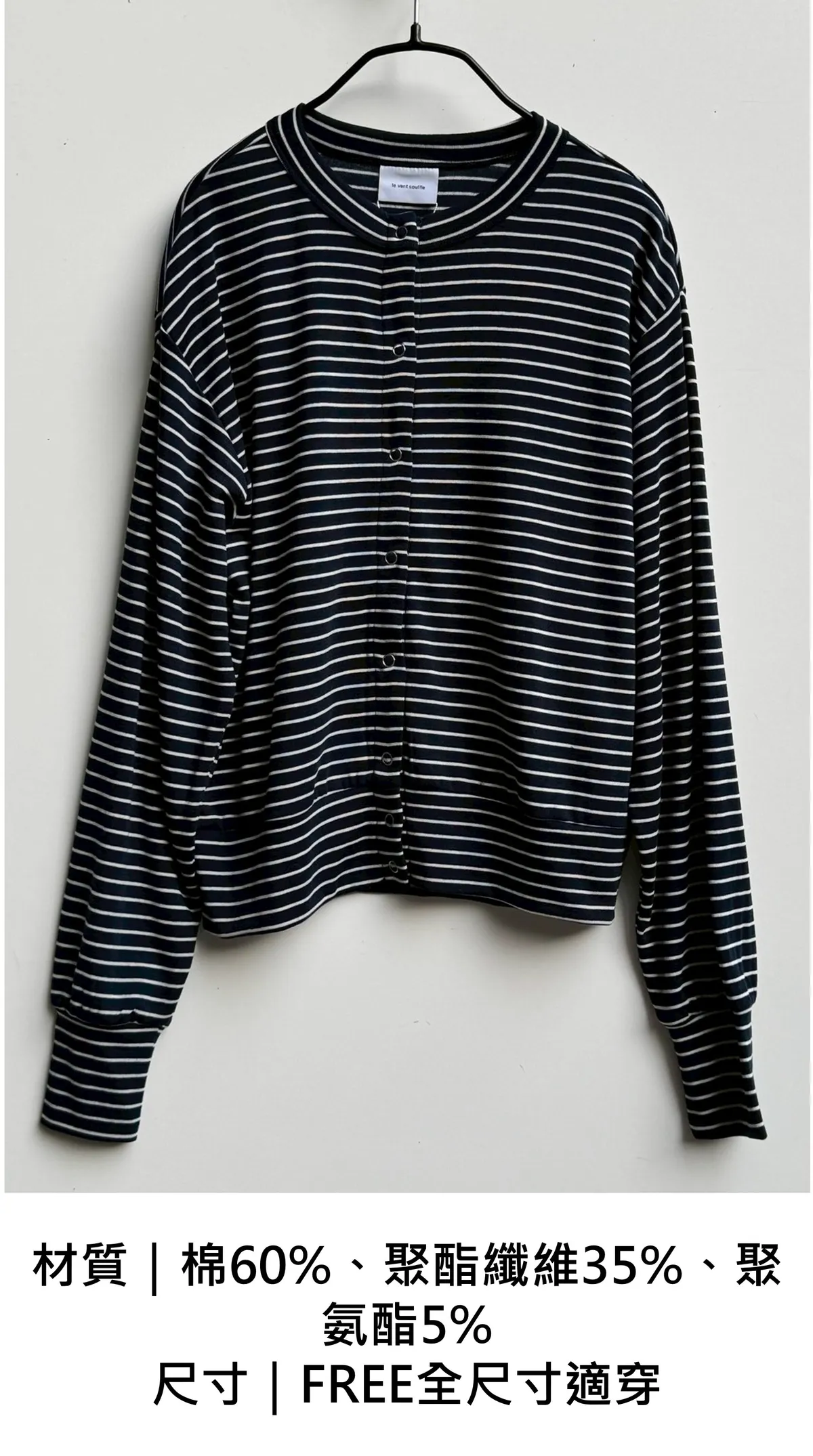 條紋圓領排釦上衣