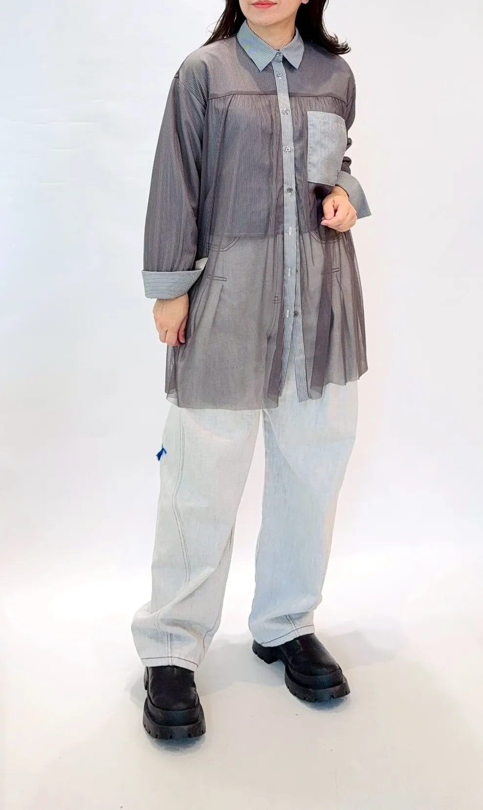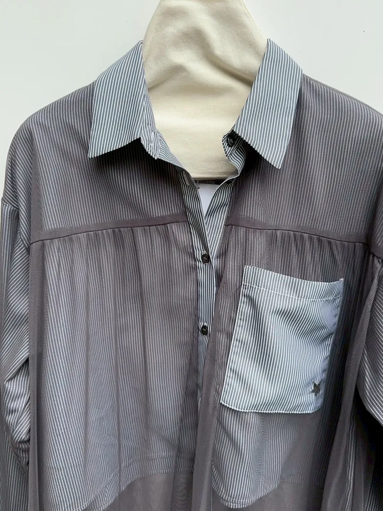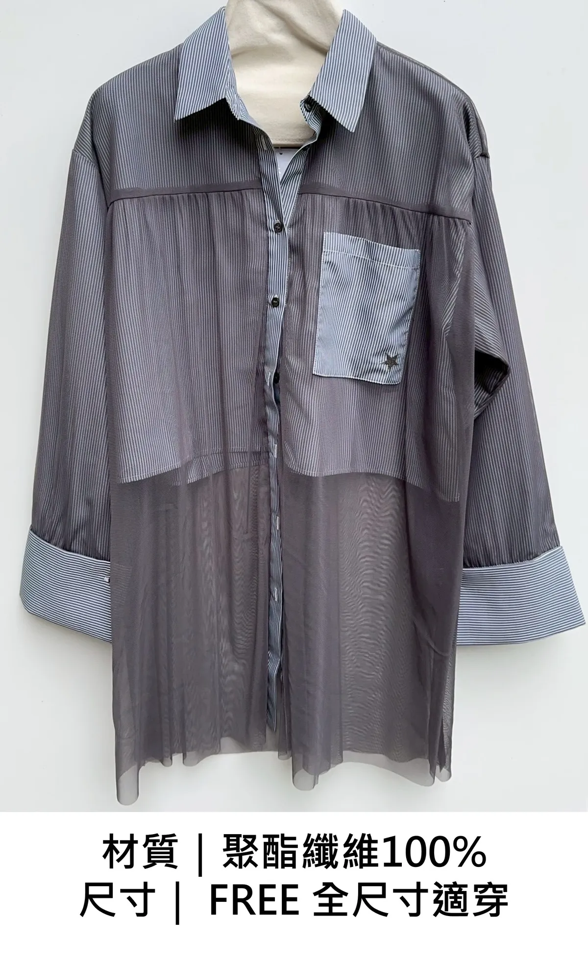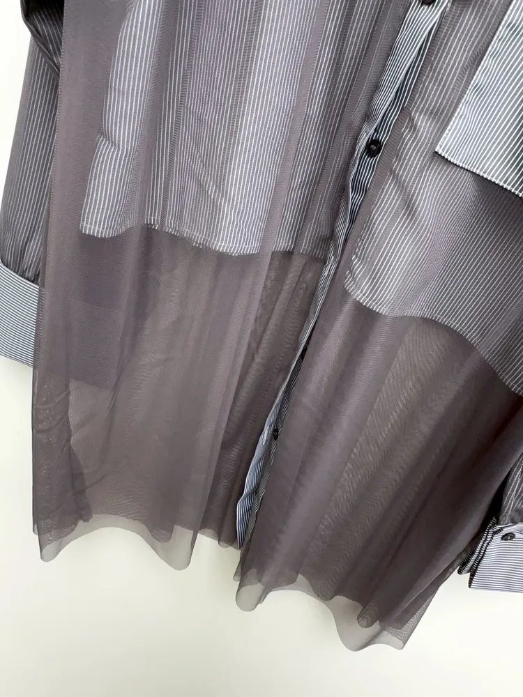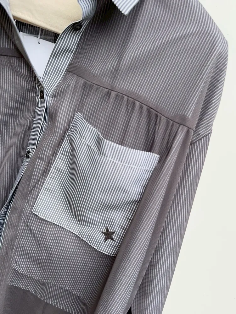 星星拼接紗質直紋襯衫