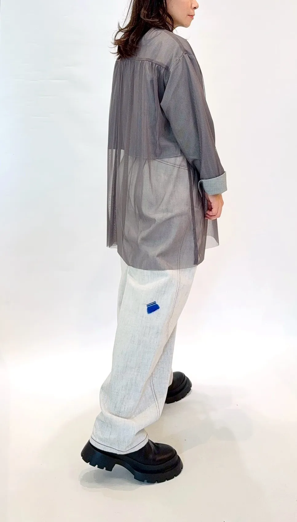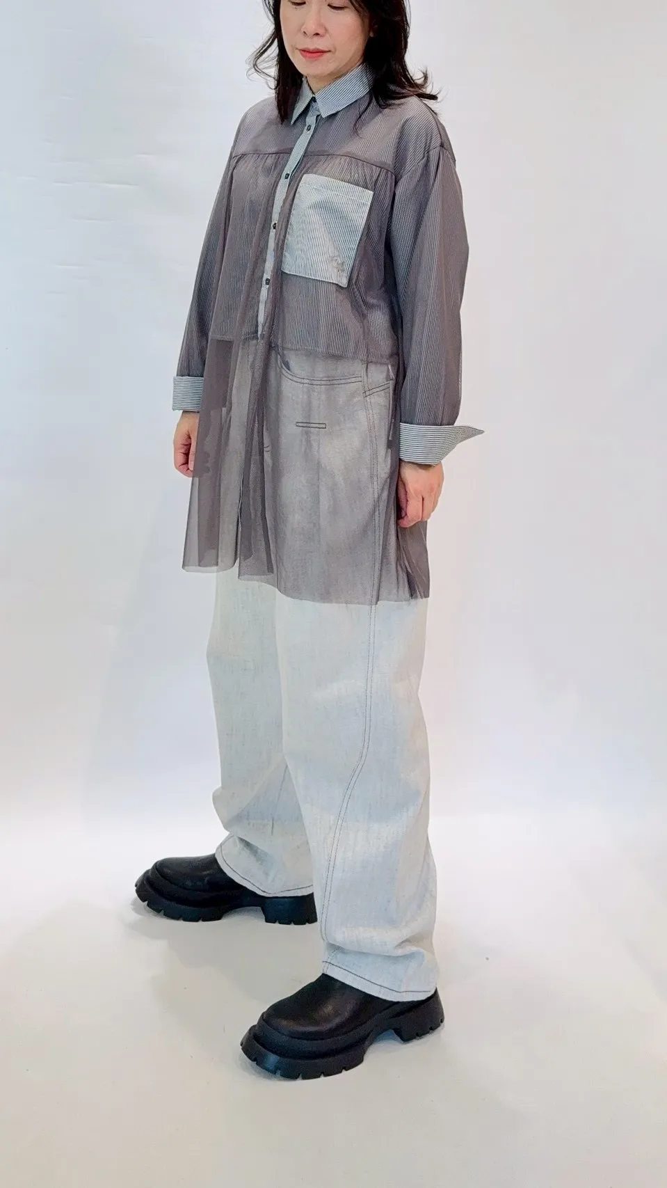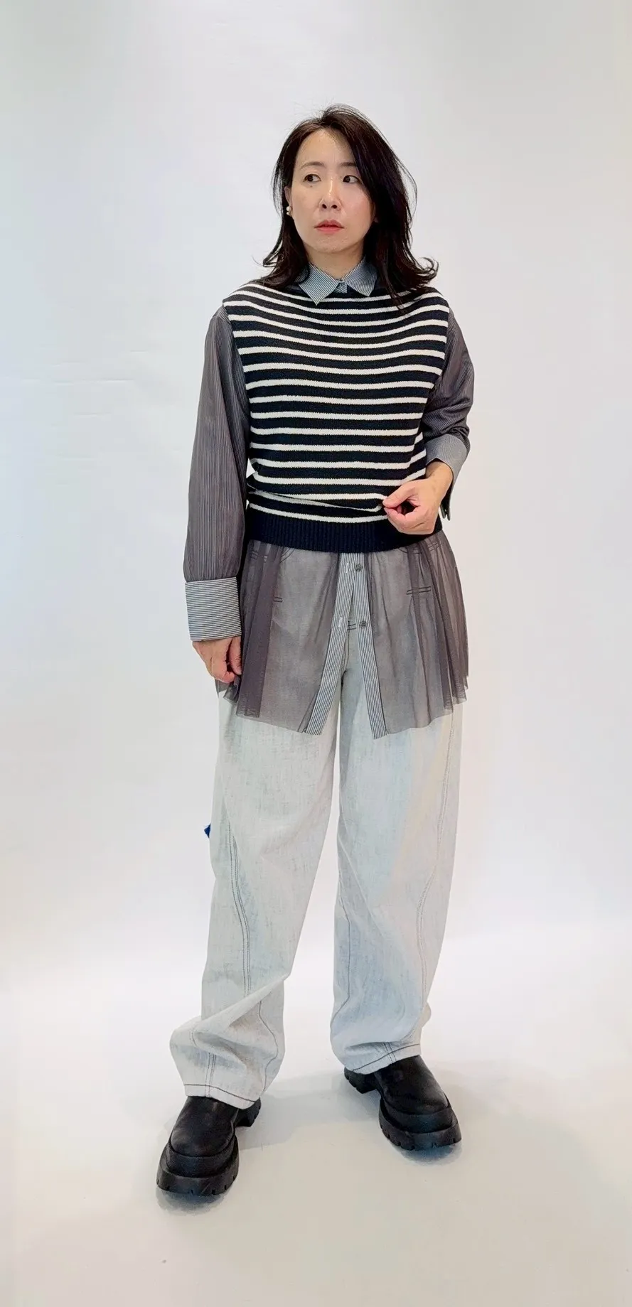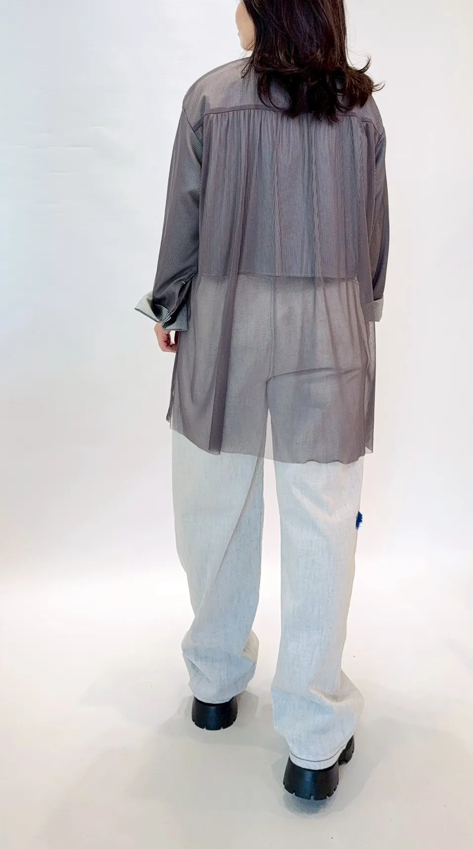 星星拼接紗質直紋襯衫
