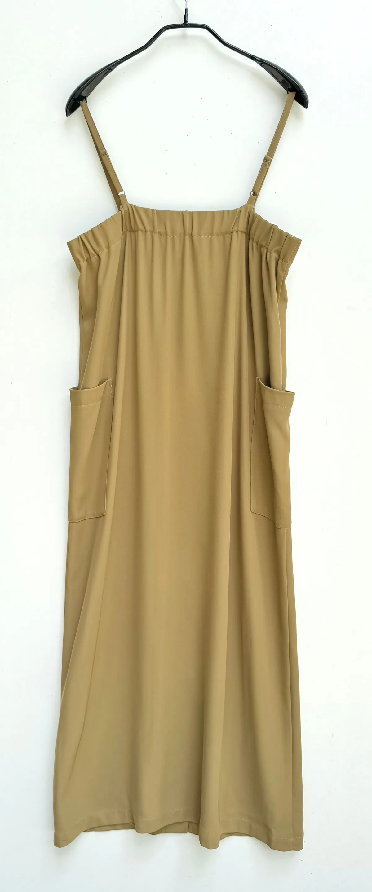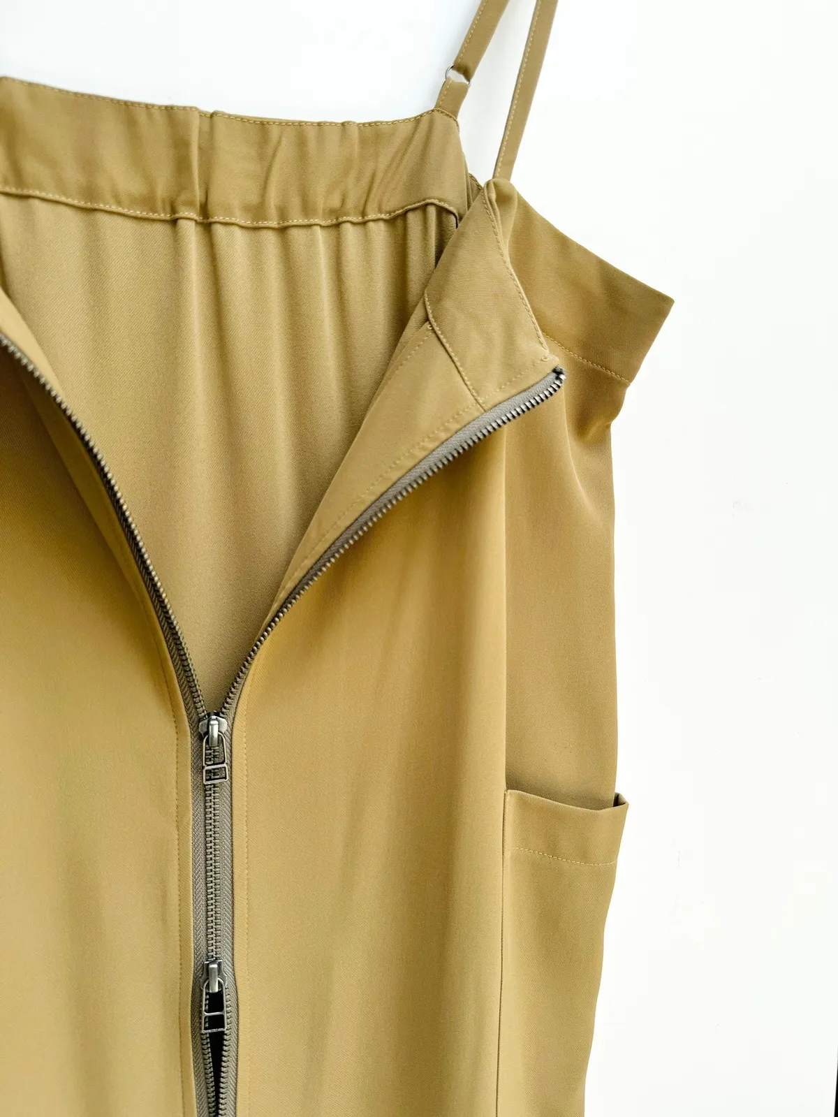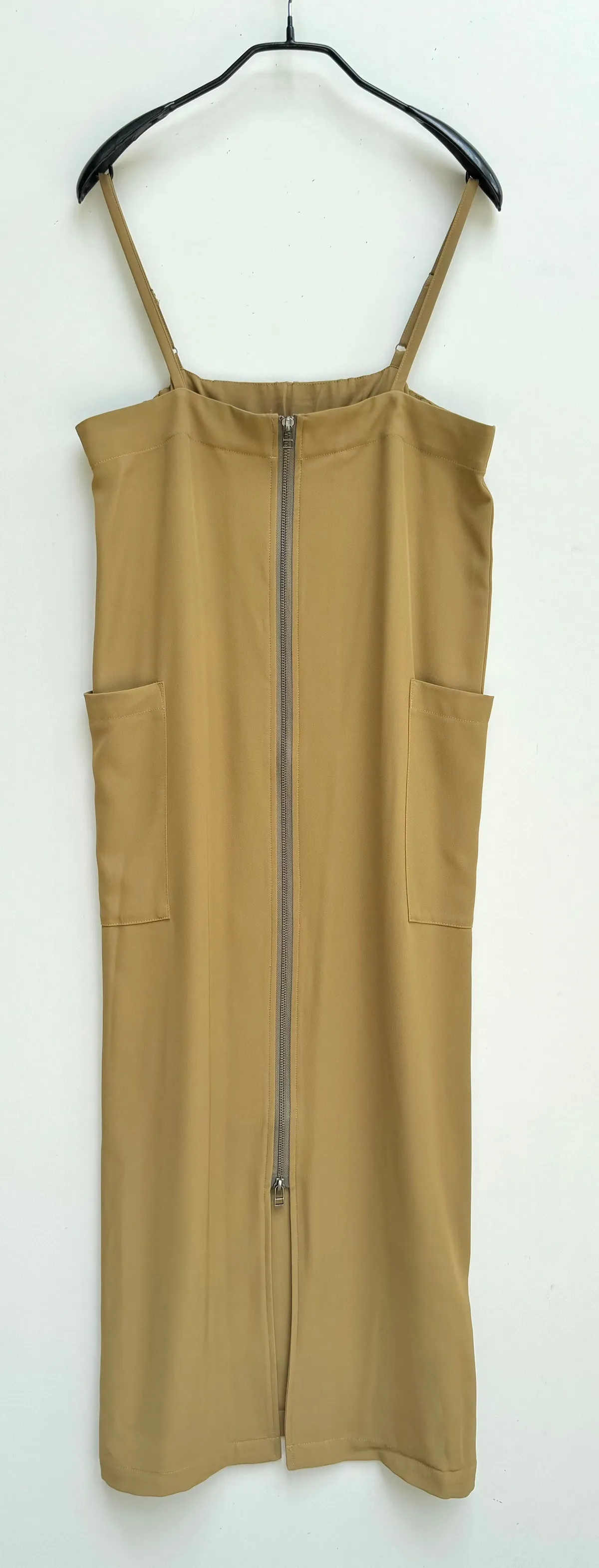 前拉鍊側口袋滑面吊帶洋裝
