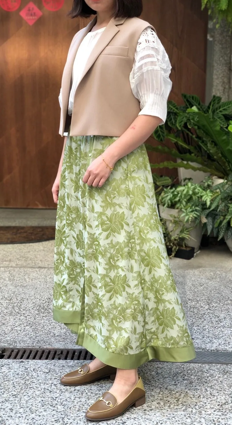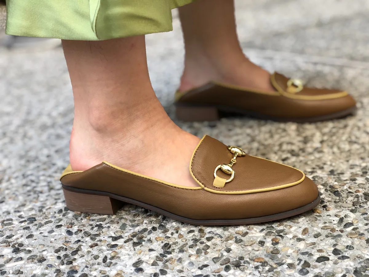 這雙最為特別的地方就在於它的後跟是可以平踩的,在接縫的細節部分處理得很好,因此即使踩著後跟鞋型也不會變形,在搭配上來說由於配色是屬於大地色系,安全自然的色系也代表可以讓你搭配得毫無顧慮,由於這一款版型是屬於比較修長型的,氣質上會比較秀氣一些,因此只要下身搭上長褲、寬褲,就可以穿出正式的味道,而若是想要休閒一些,推薦你下身穿著有飄逸感的長裙,或是上身搭配較為寬鬆版型的款式,就可以輕鬆展現隨性的休閒日系風