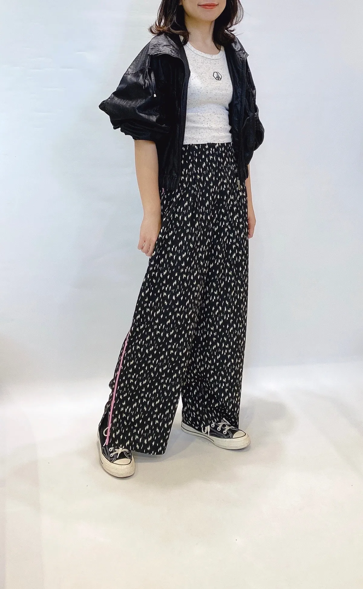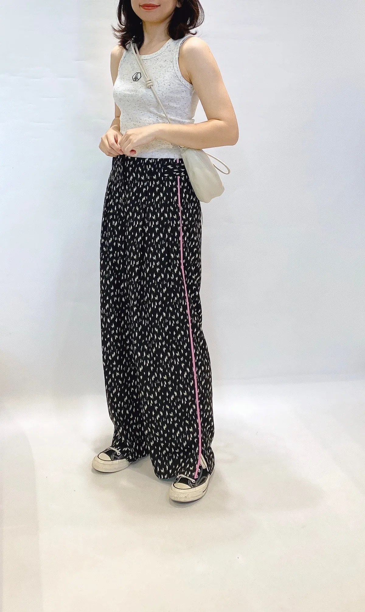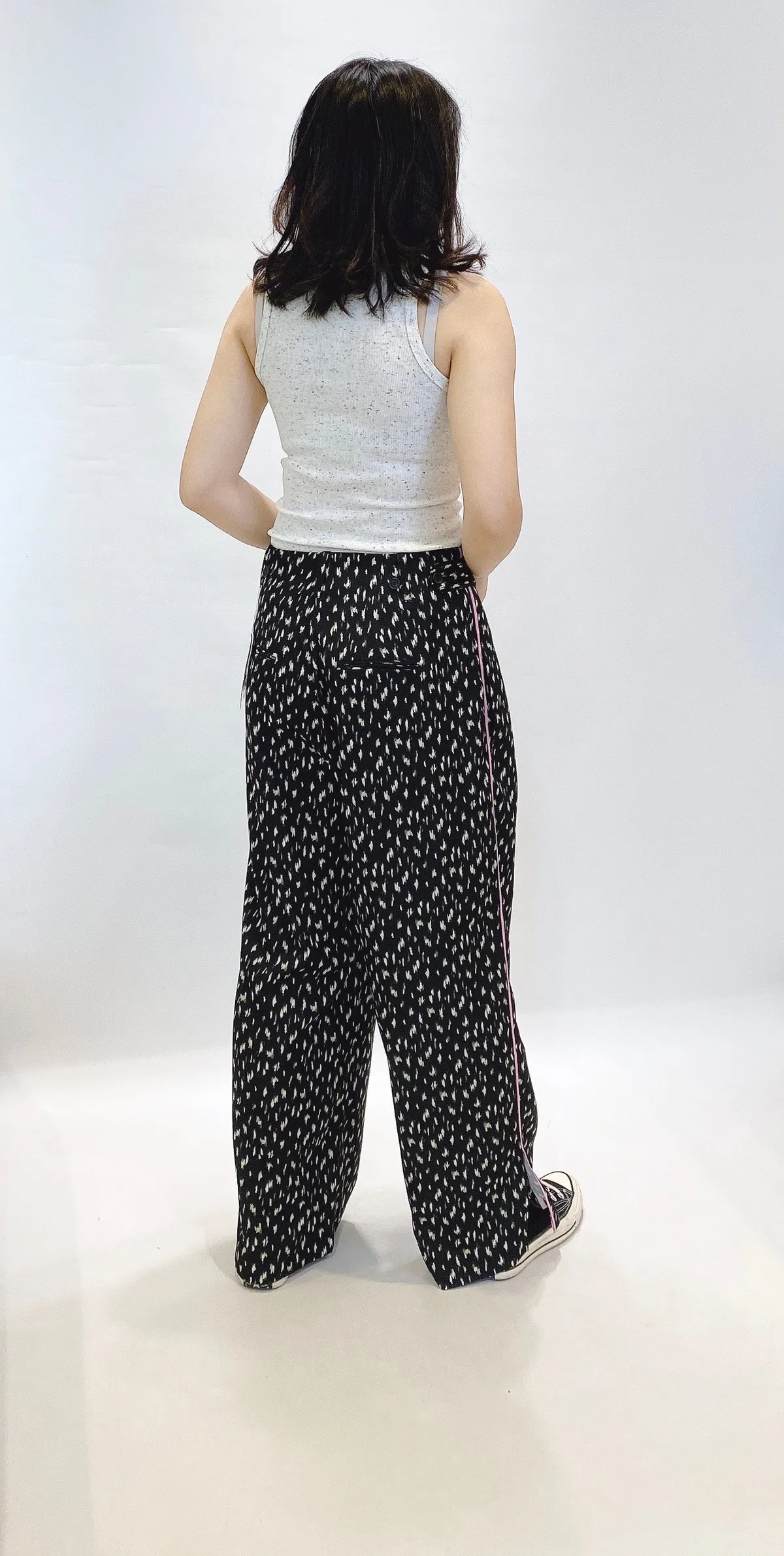 高腰側滾邊花點滑面長褲