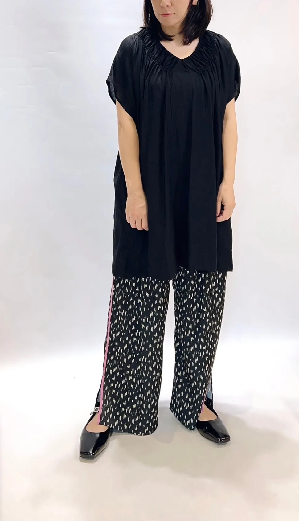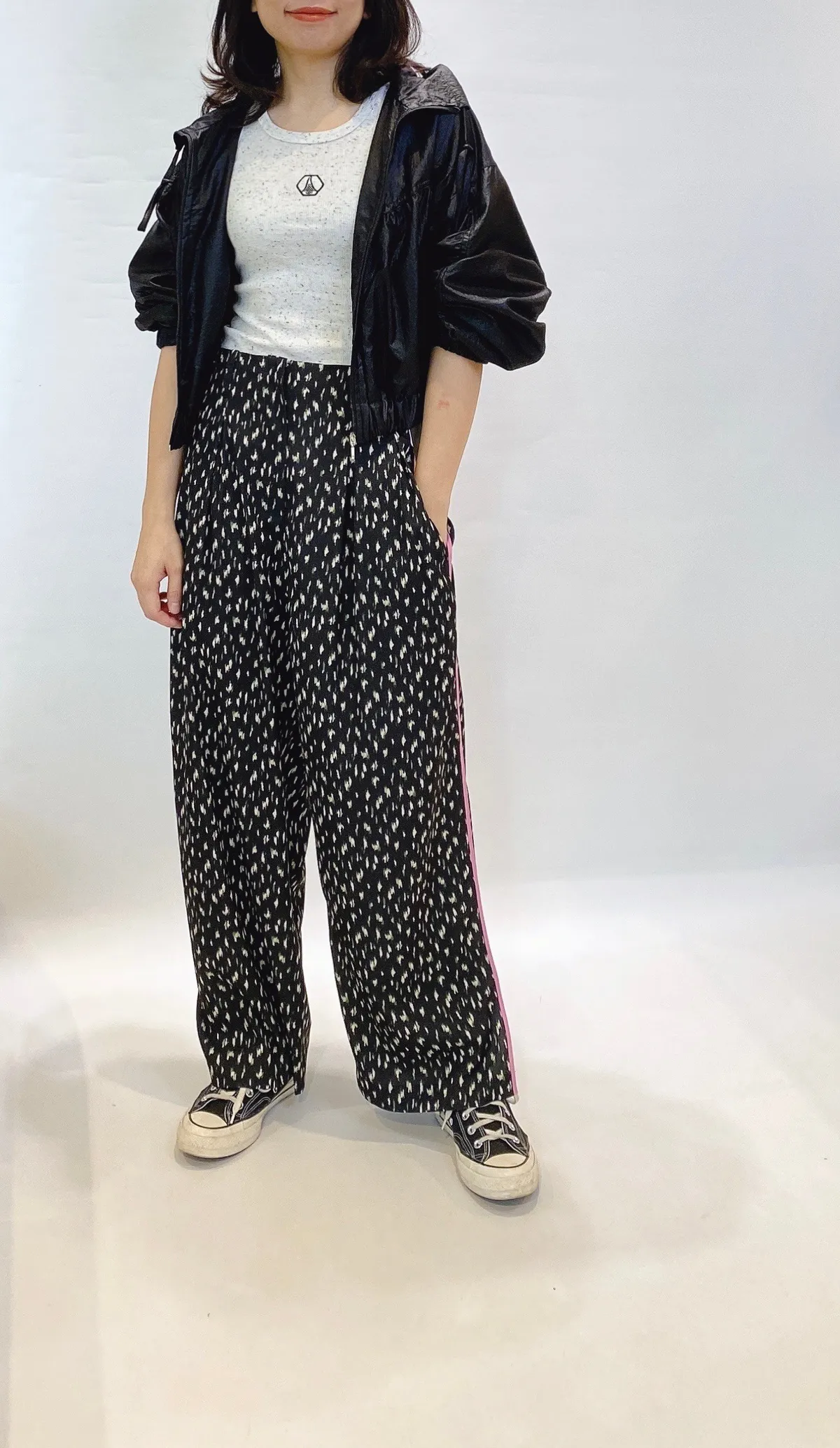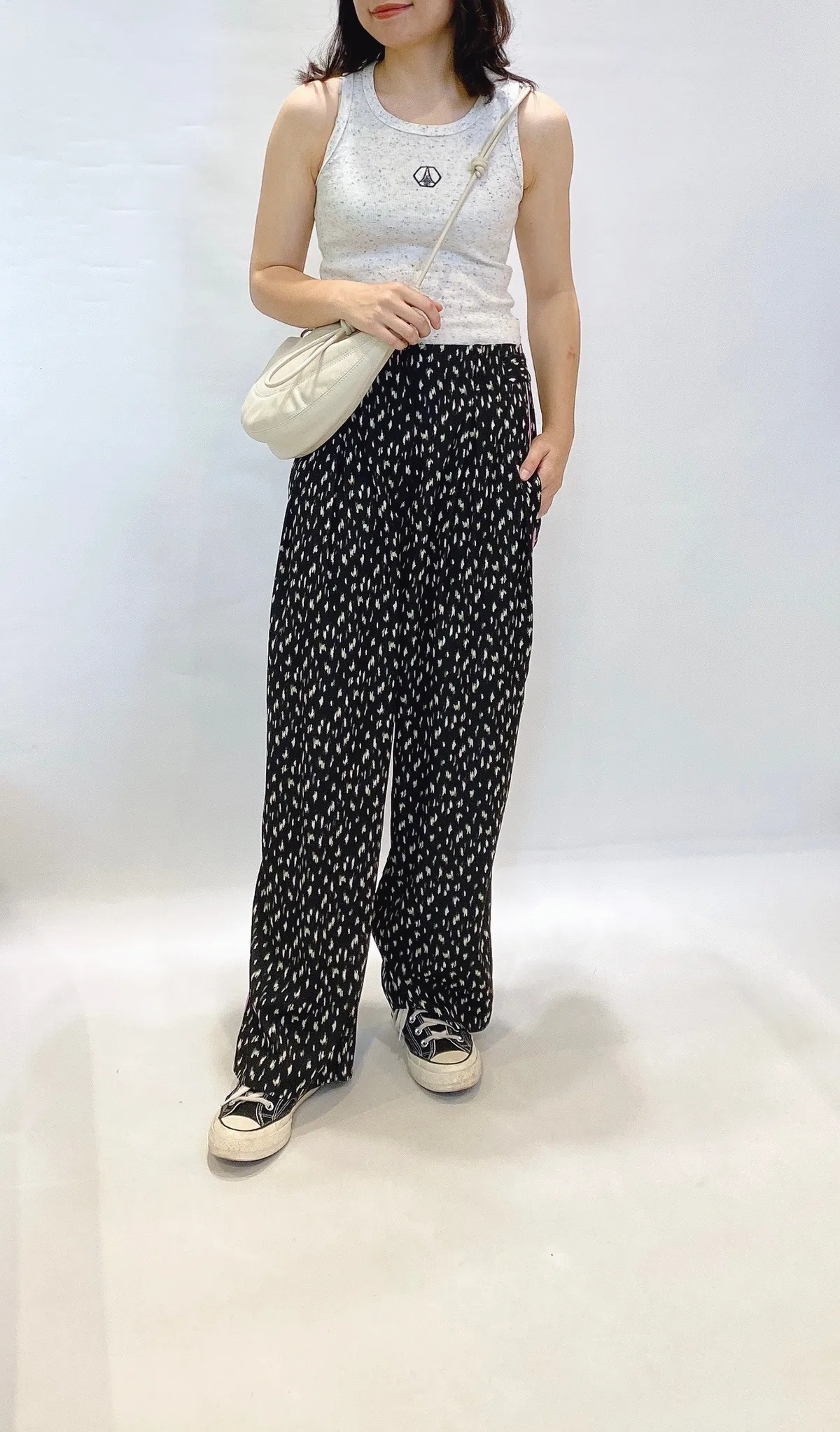 高腰側滾邊花點滑面長褲