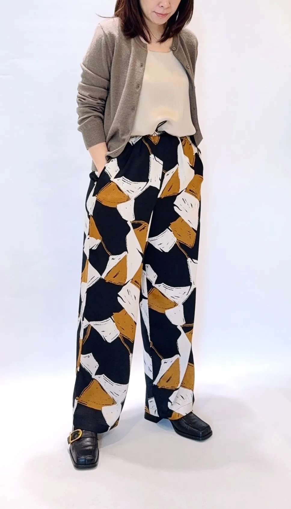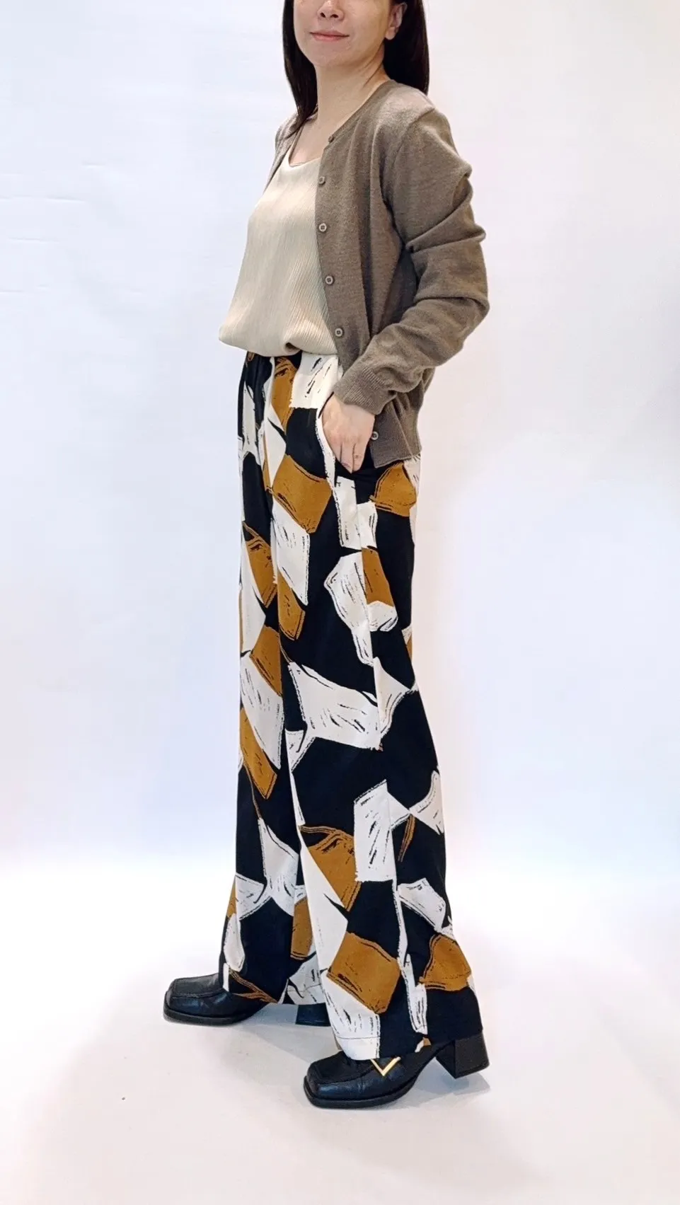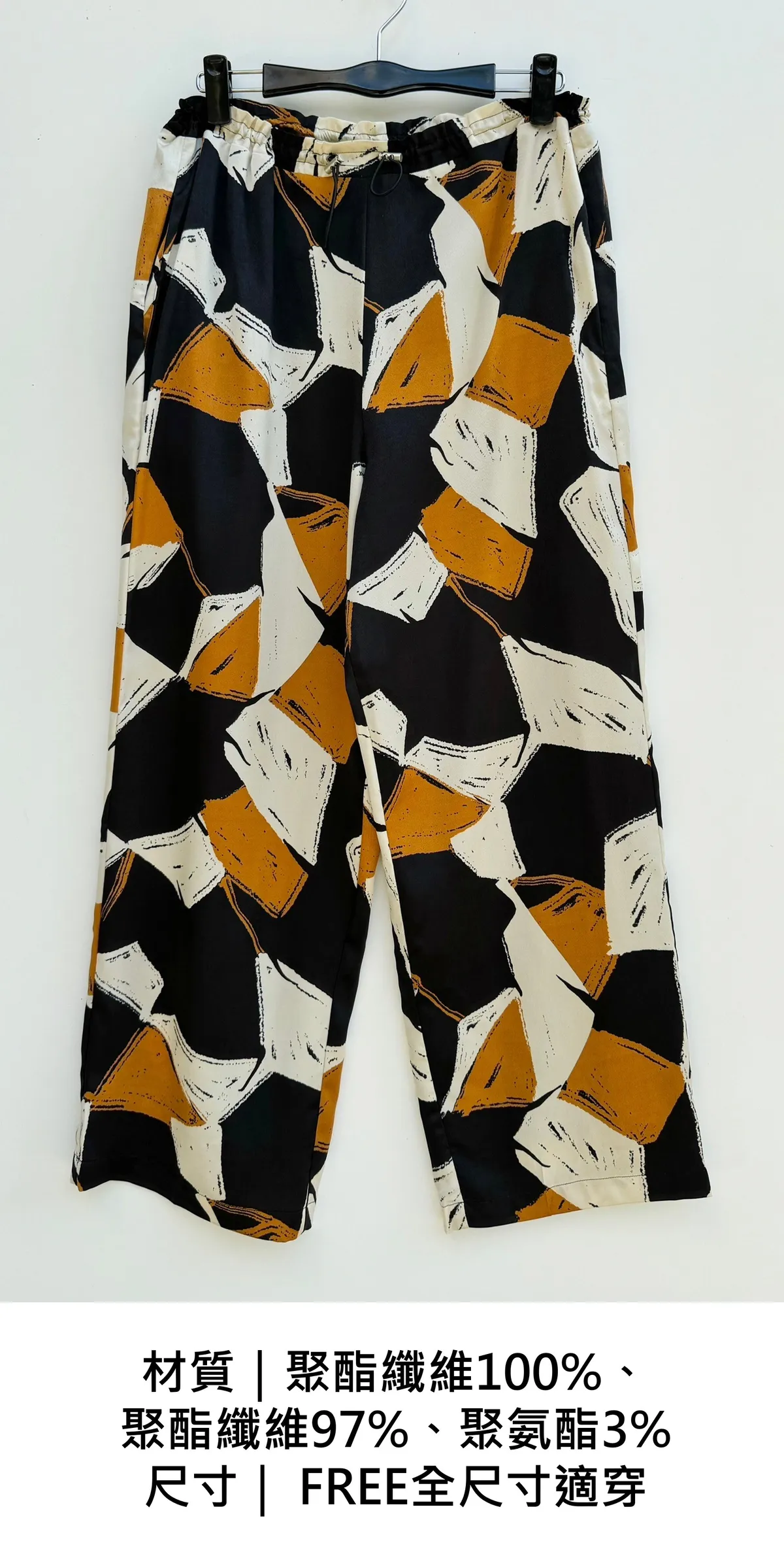 抽繩色塊滑感寬褲