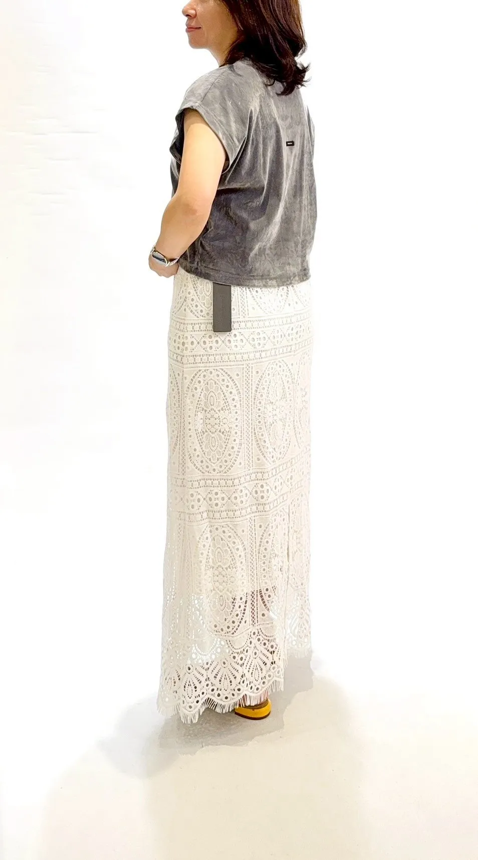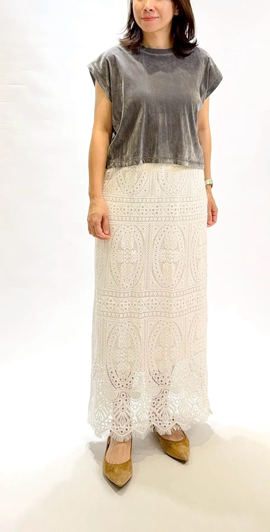 蕾絲花鬆緊腰長裙
