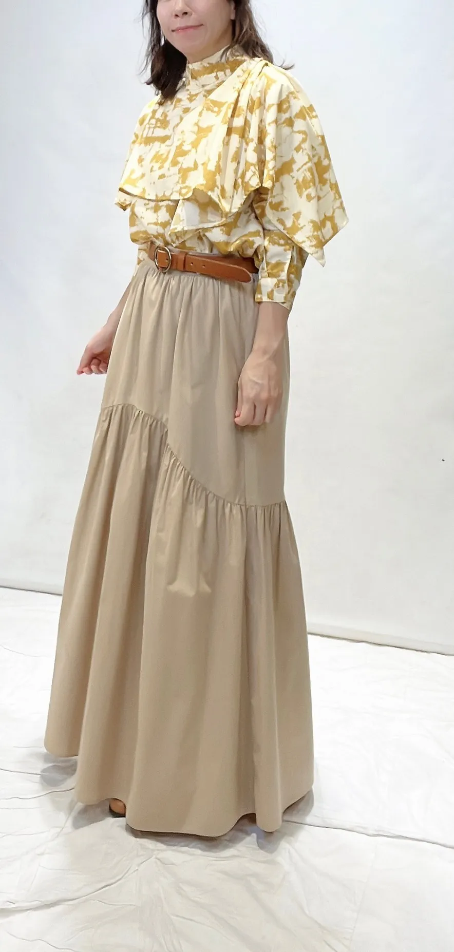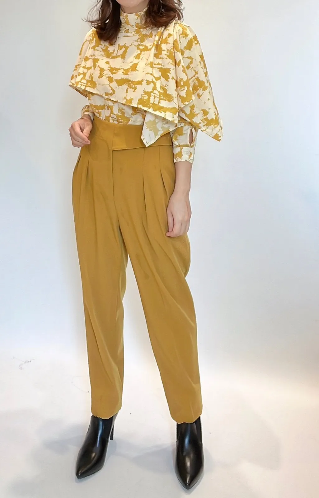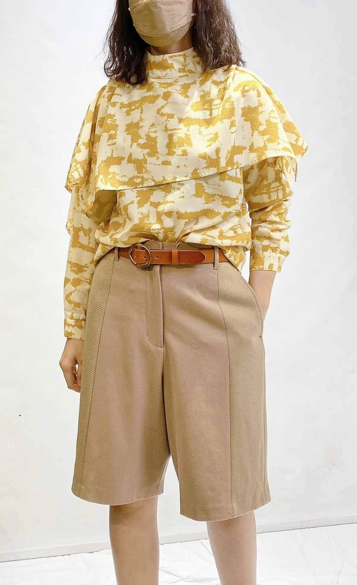立領花彩領片上衣
