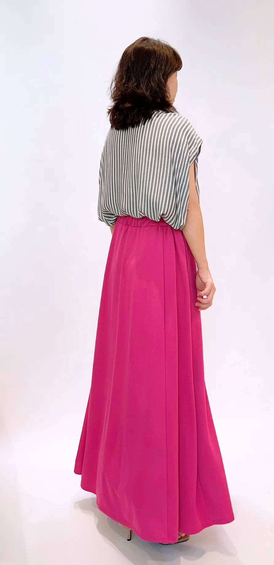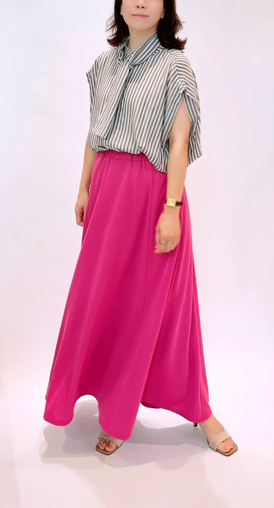 素面拼接綁繩長裙