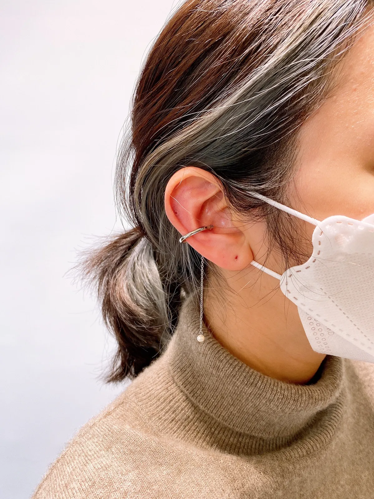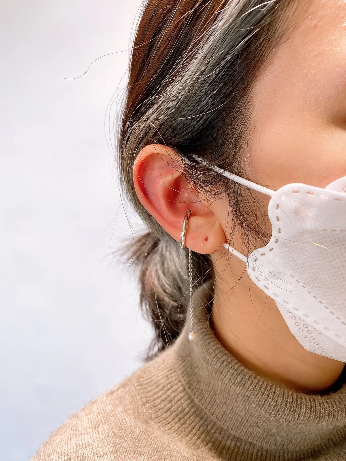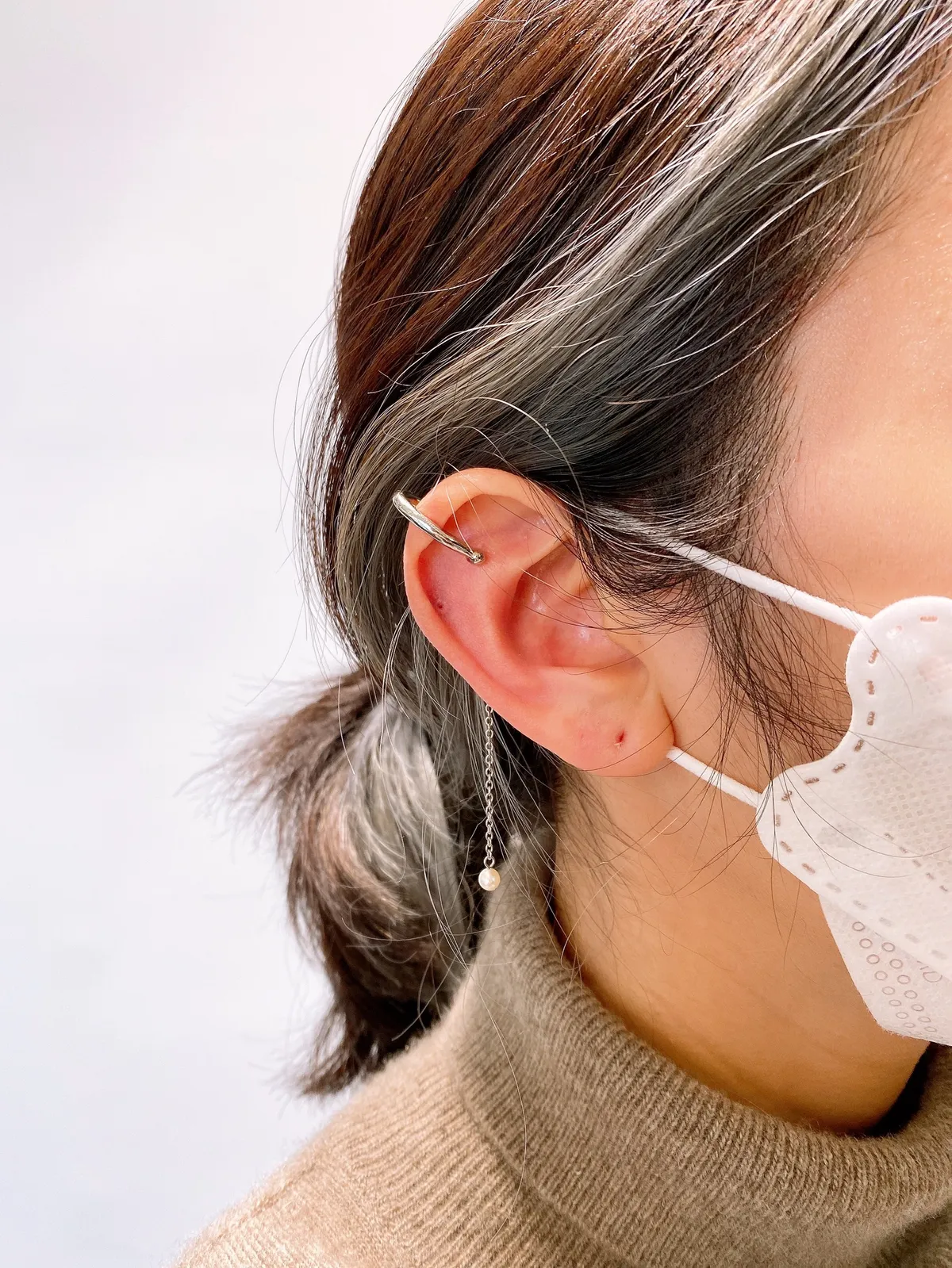 [耳夾式]垂墜式珍珠耳骨夾