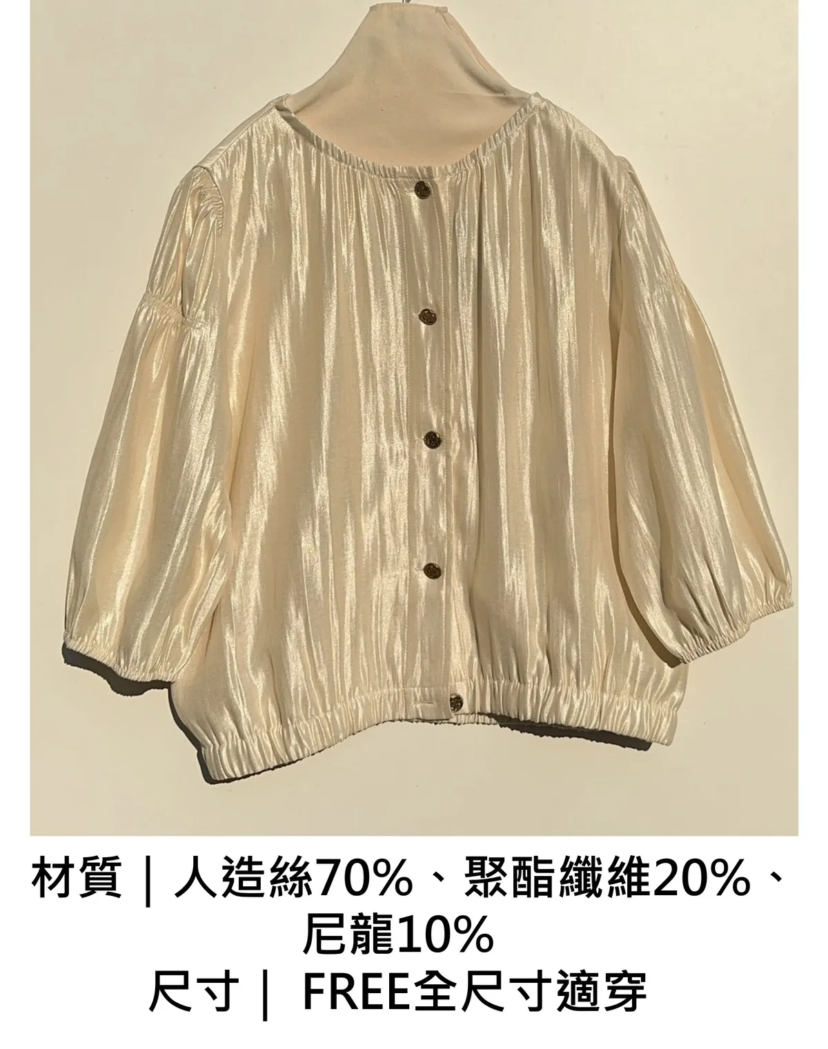 排釦光澤七分袖上衣(2way)