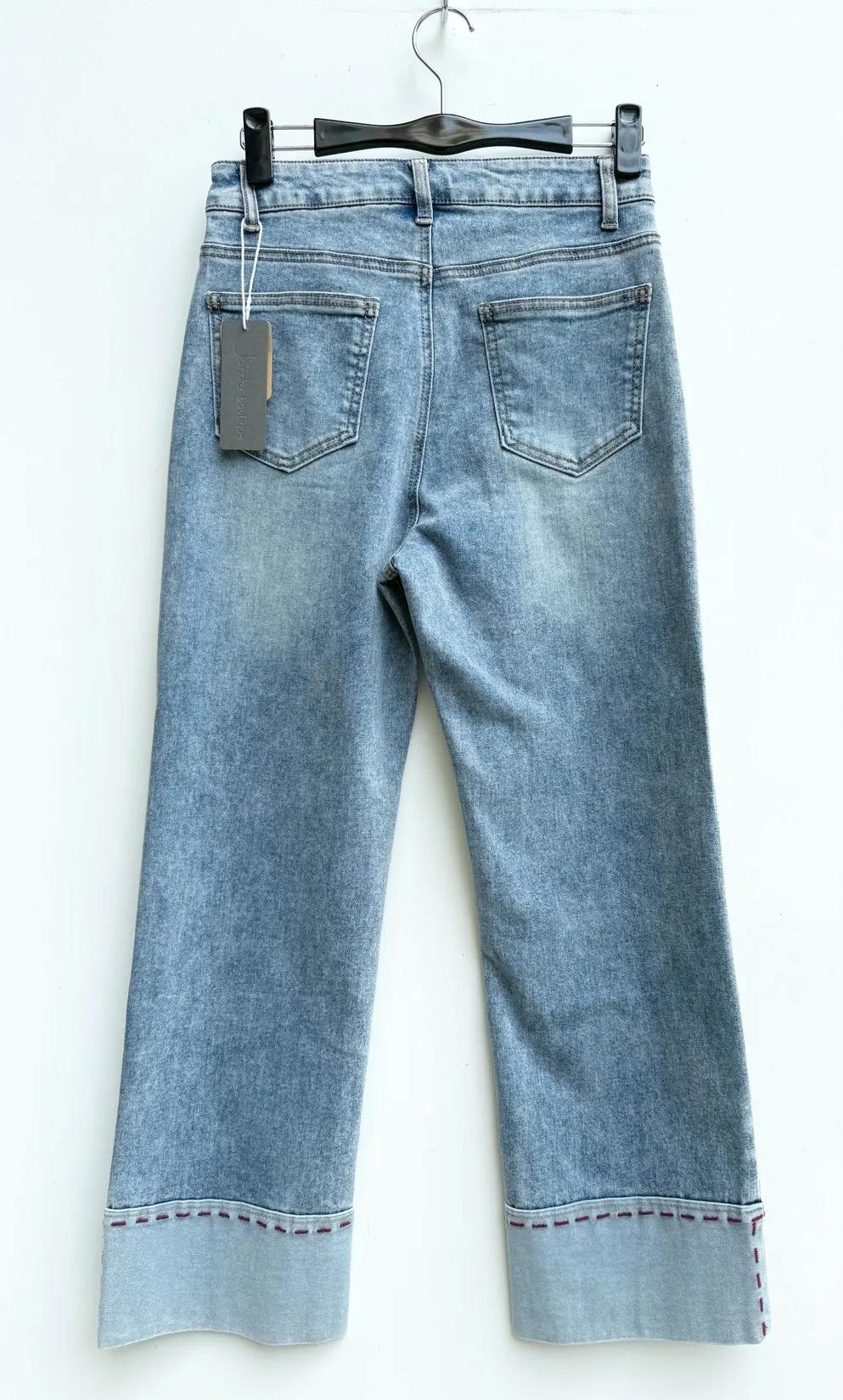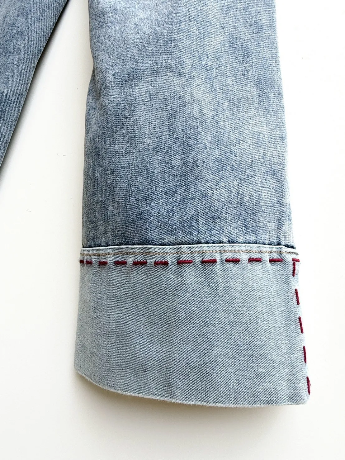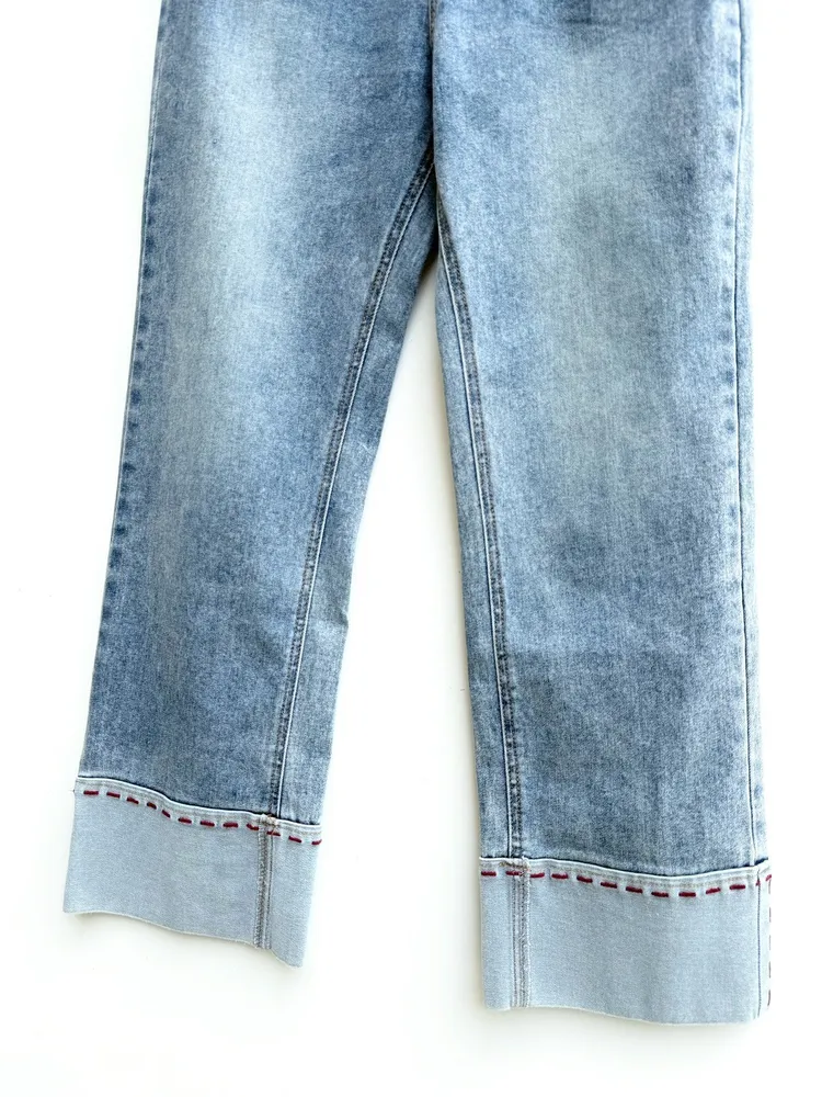下反摺滾紅線彈性牛仔褲