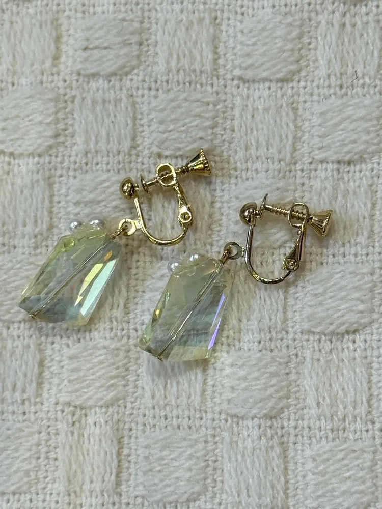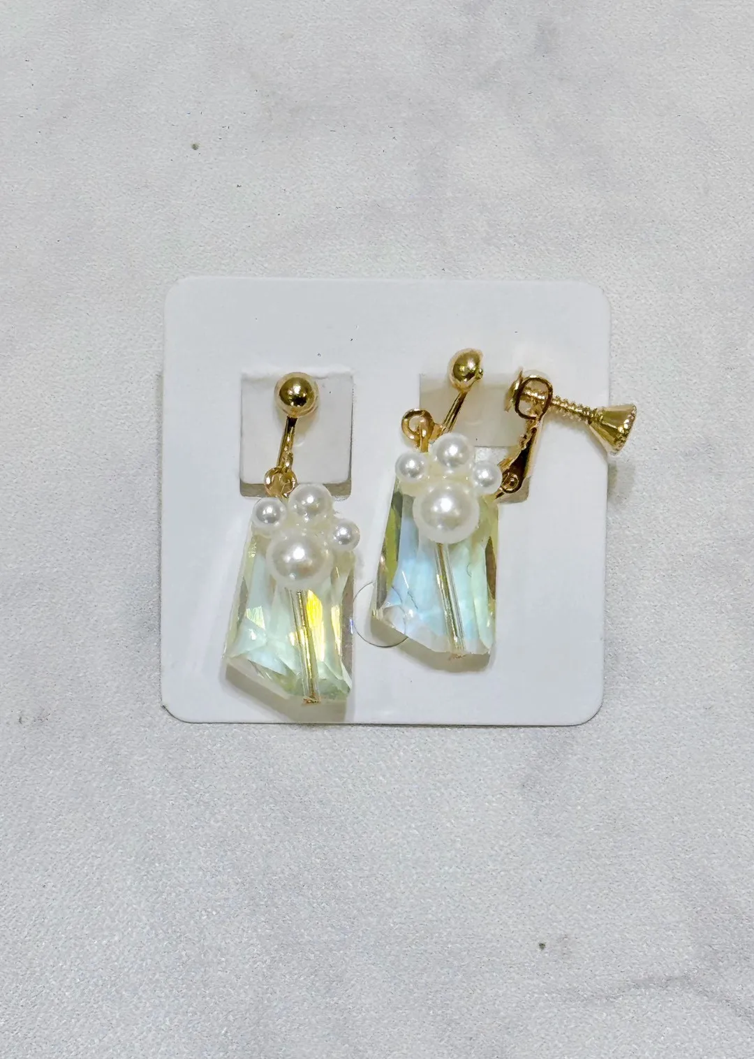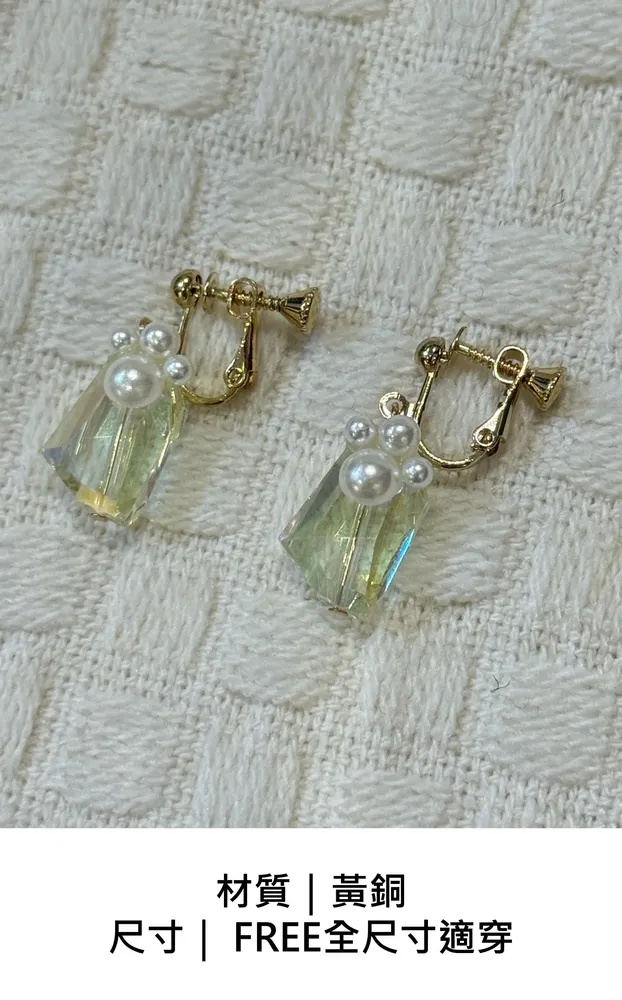 水晶造型珍珠耳夾