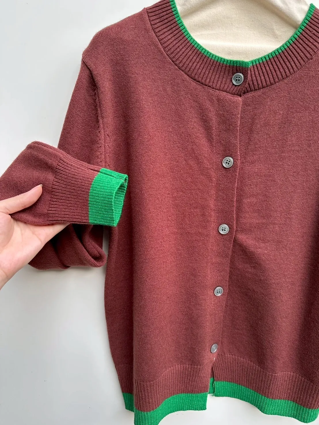 配色款開釦針織衫