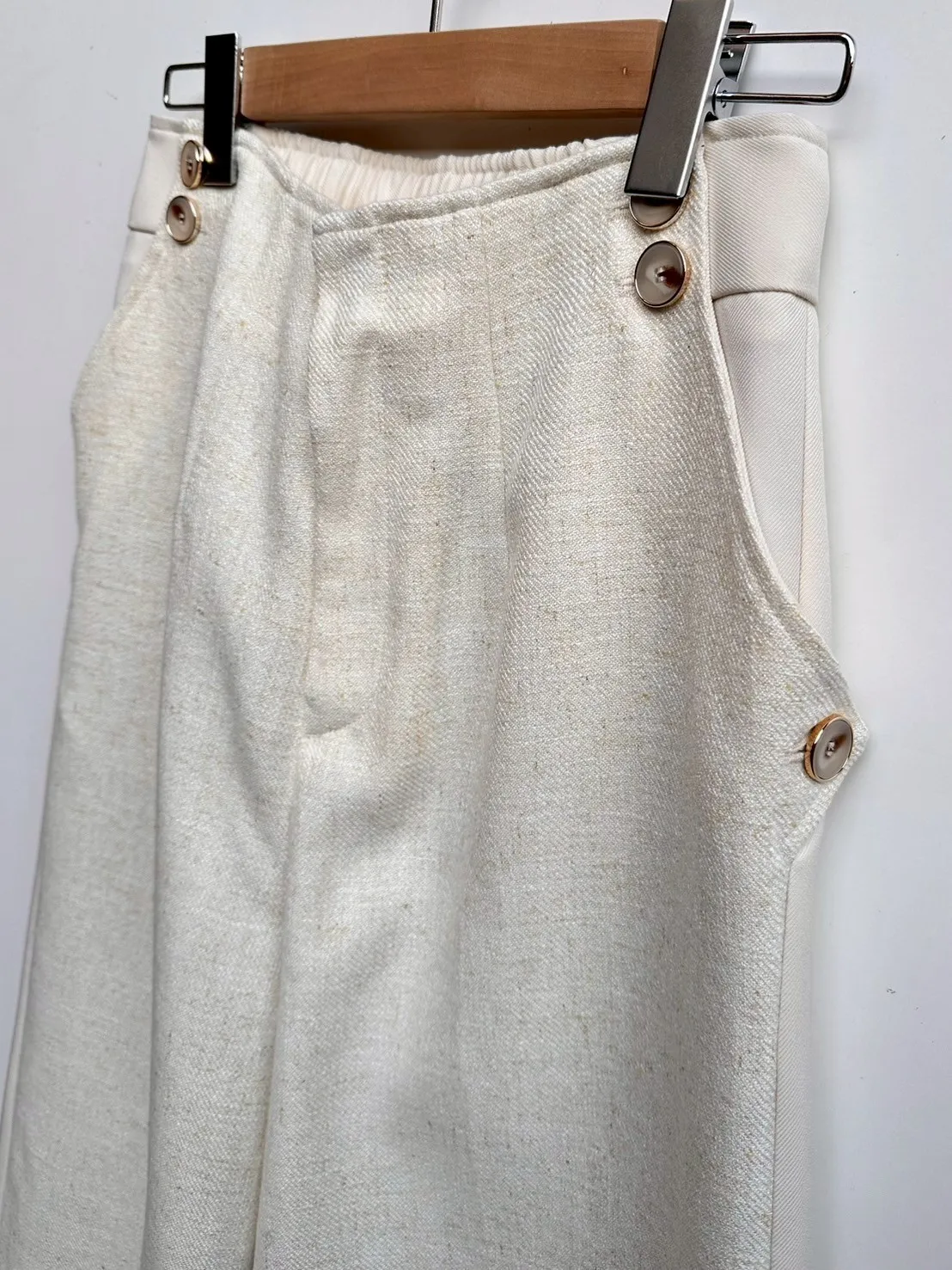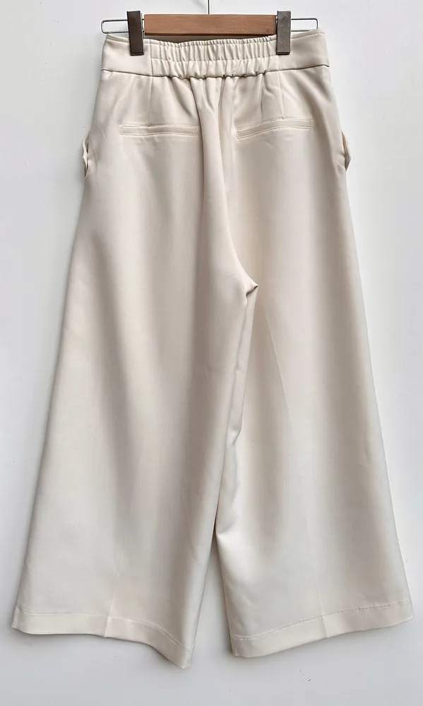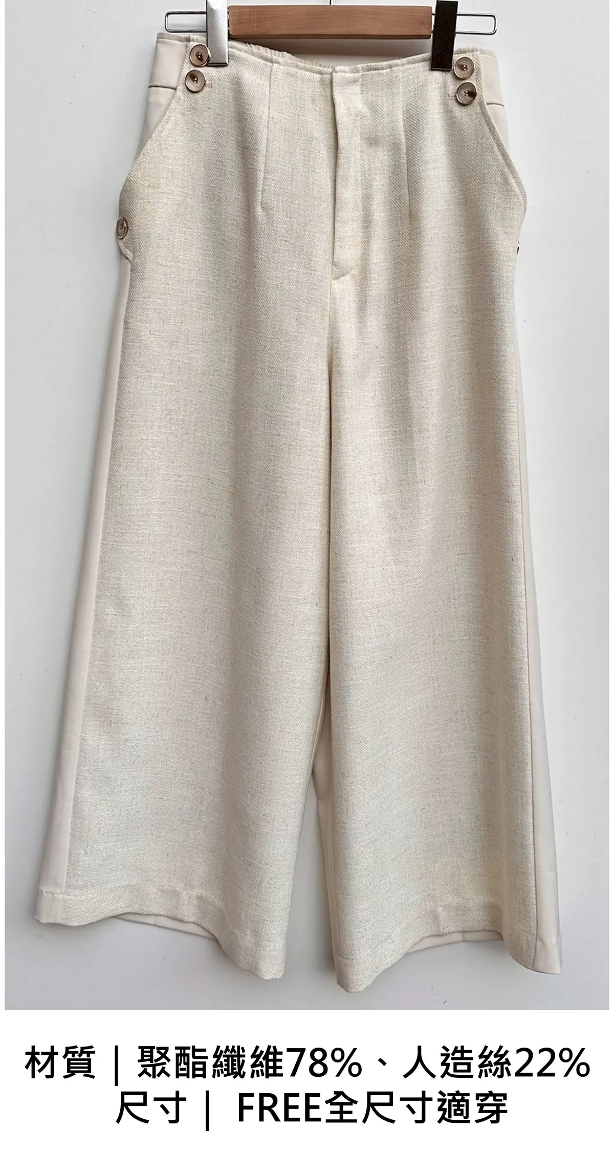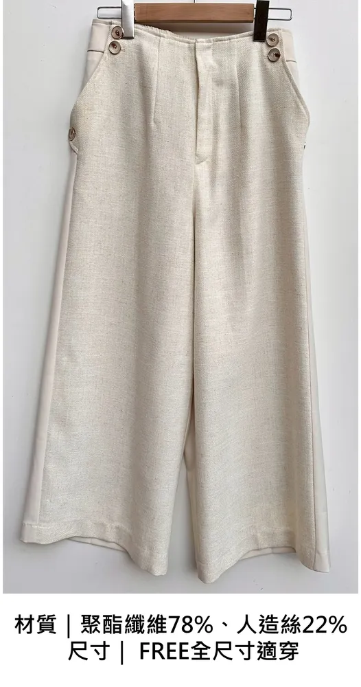 拼接材質毛呢寬褲