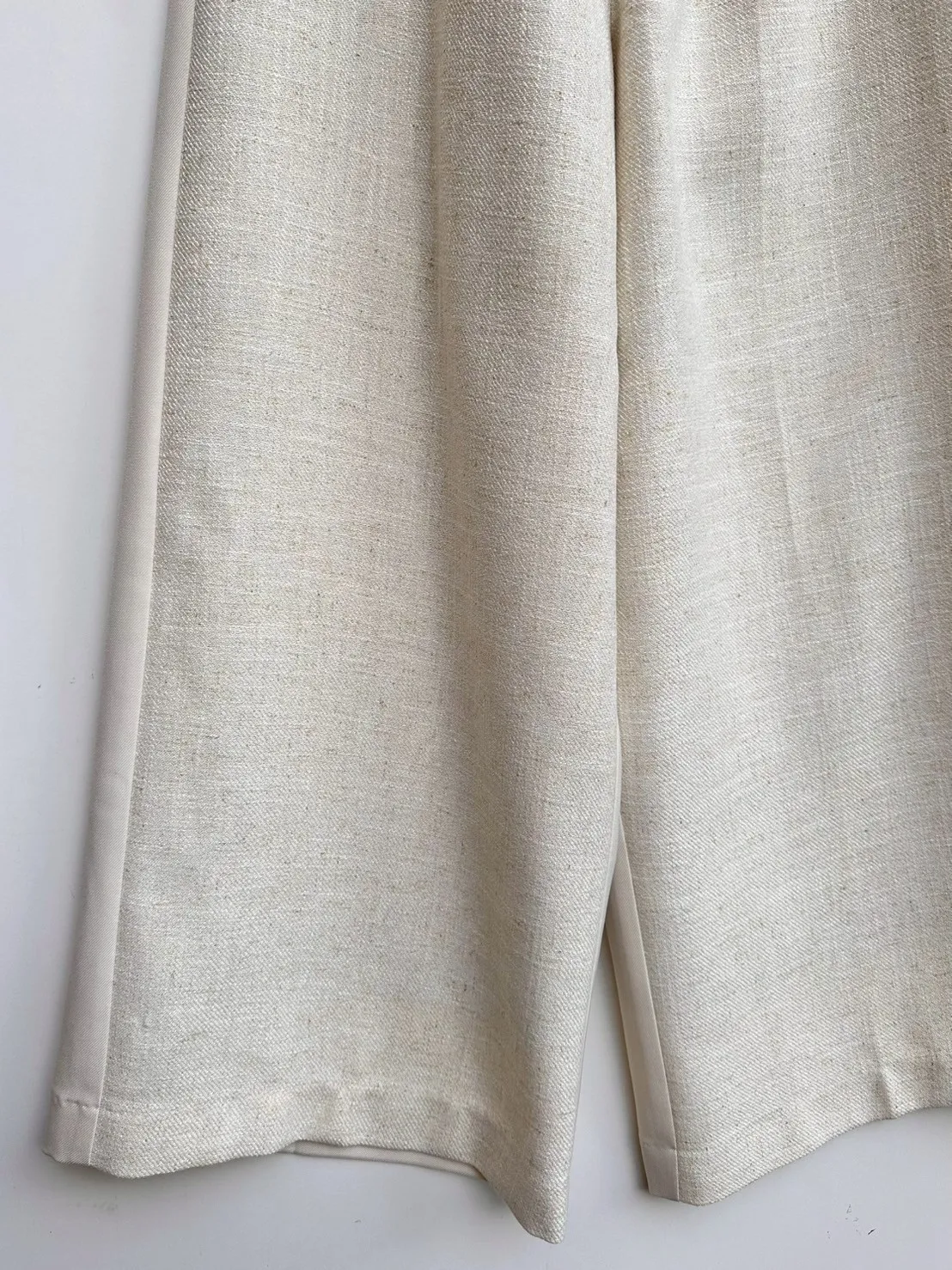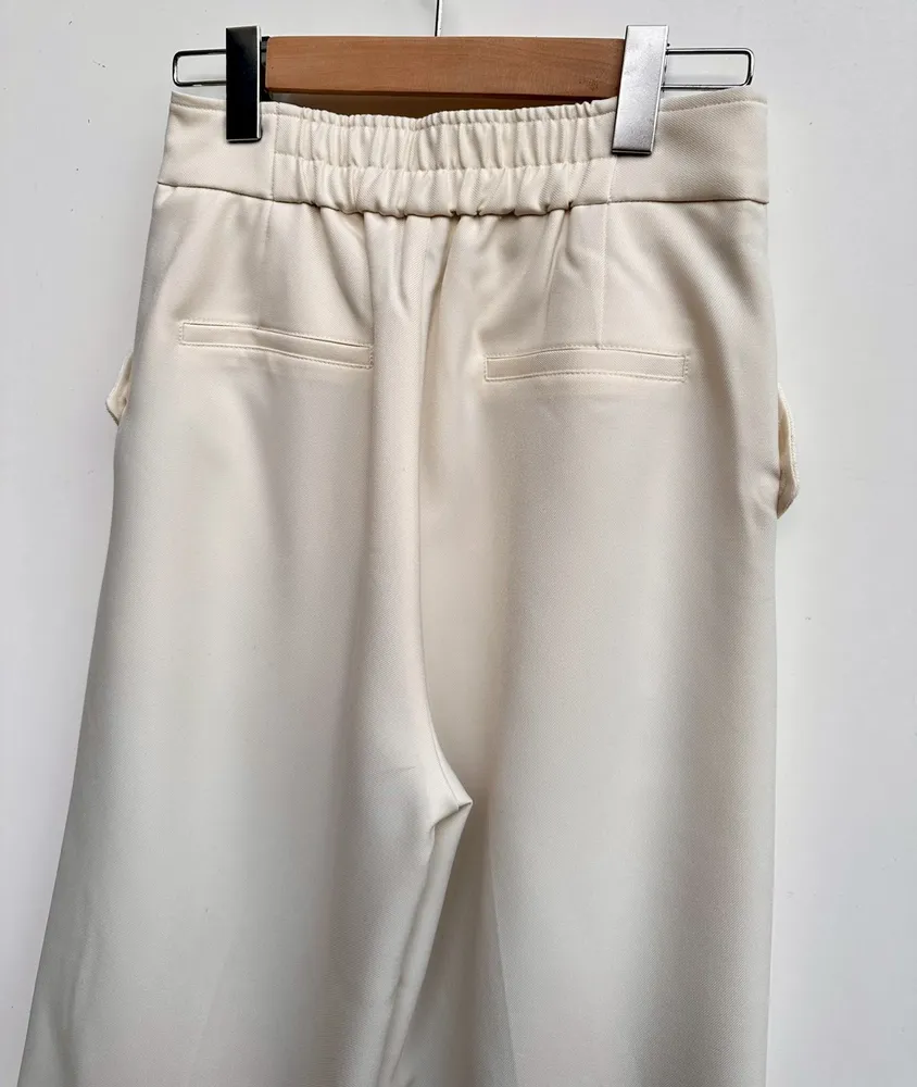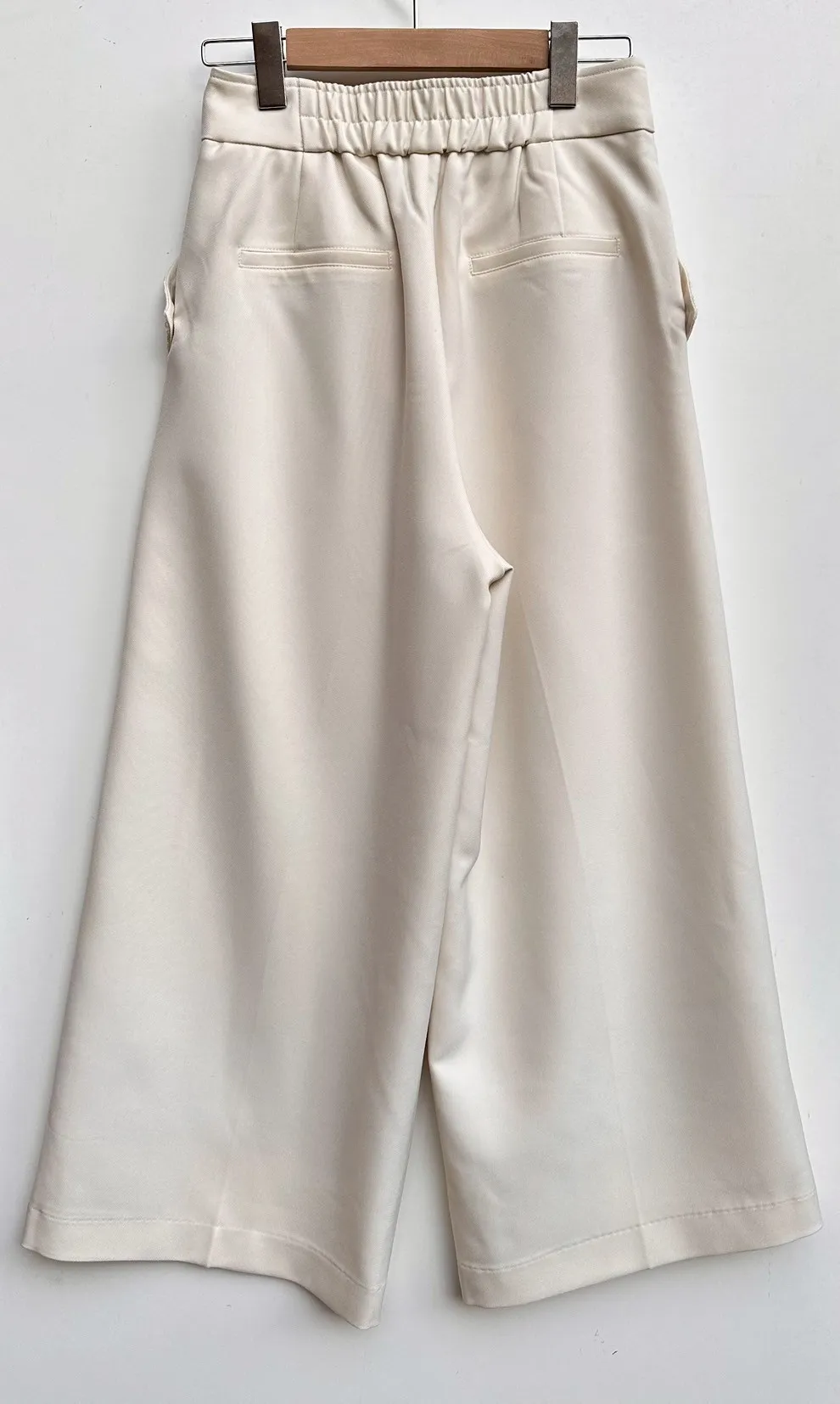 拼接材質毛呢寬褲