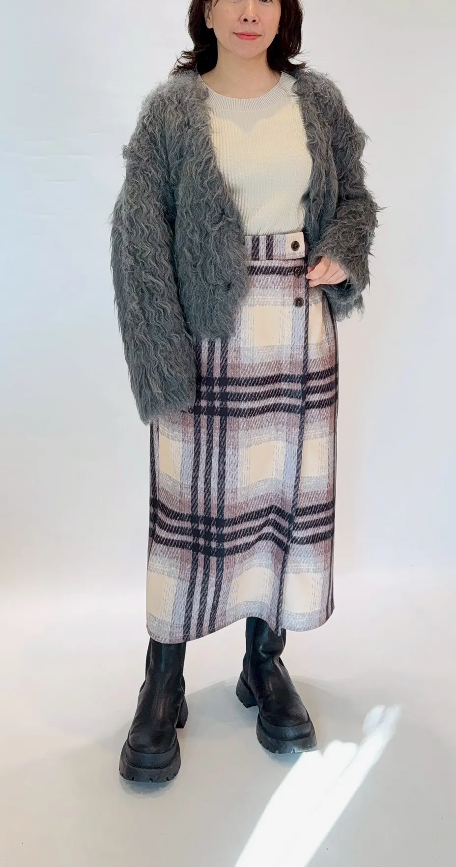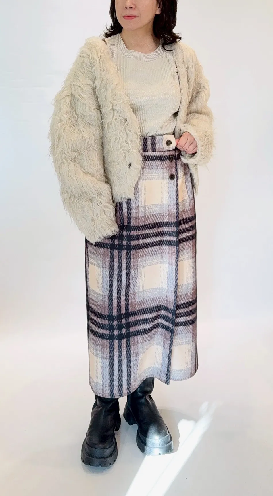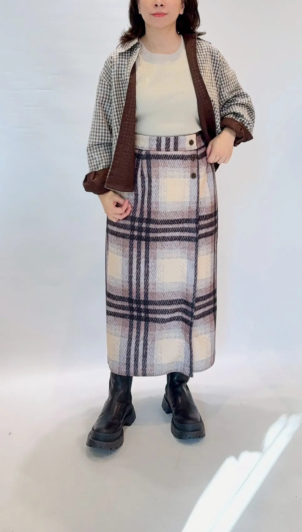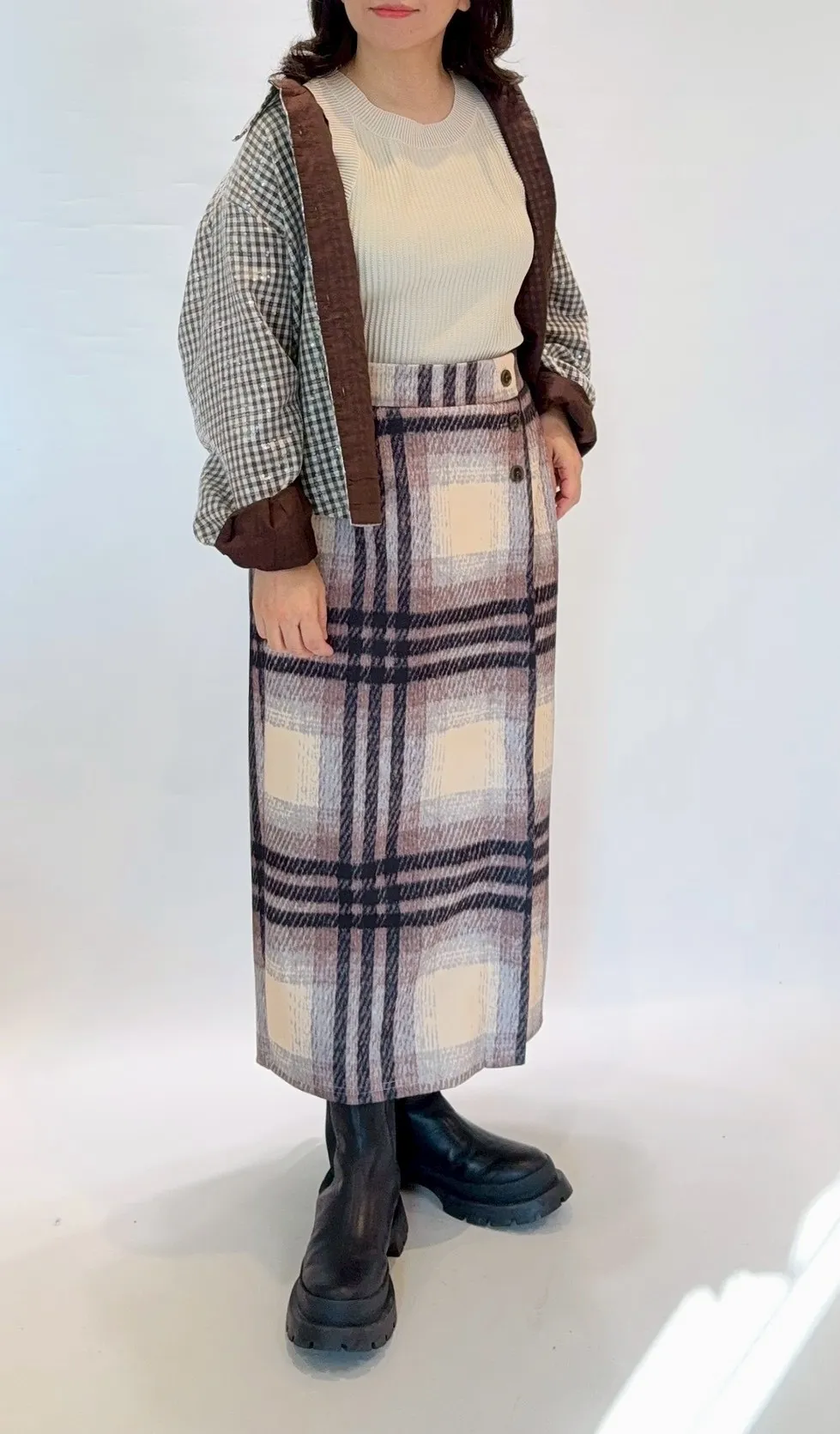刷毛格紋鬆緊窄裙