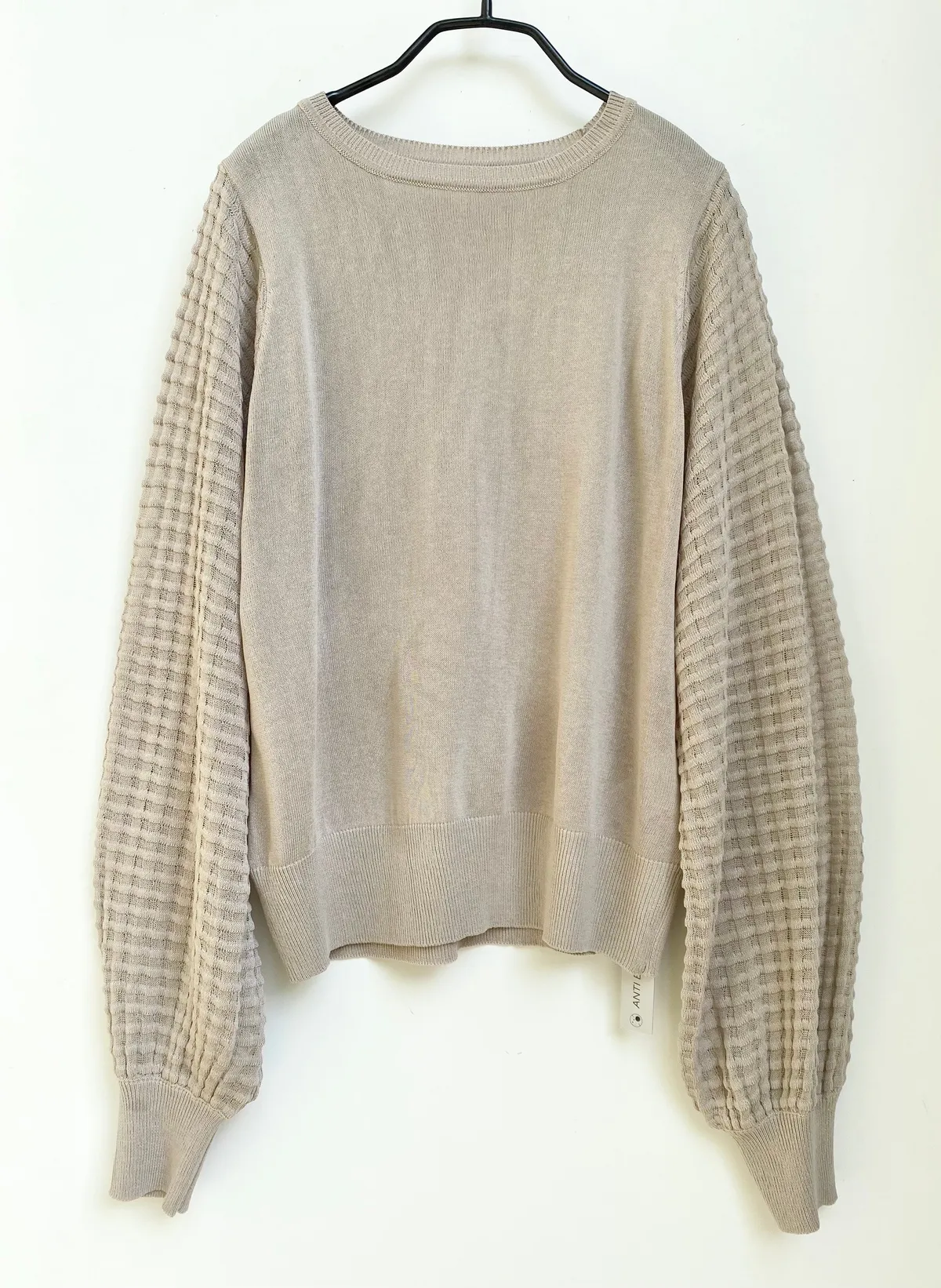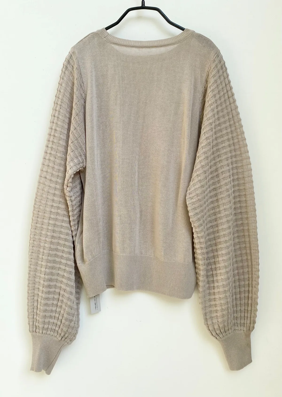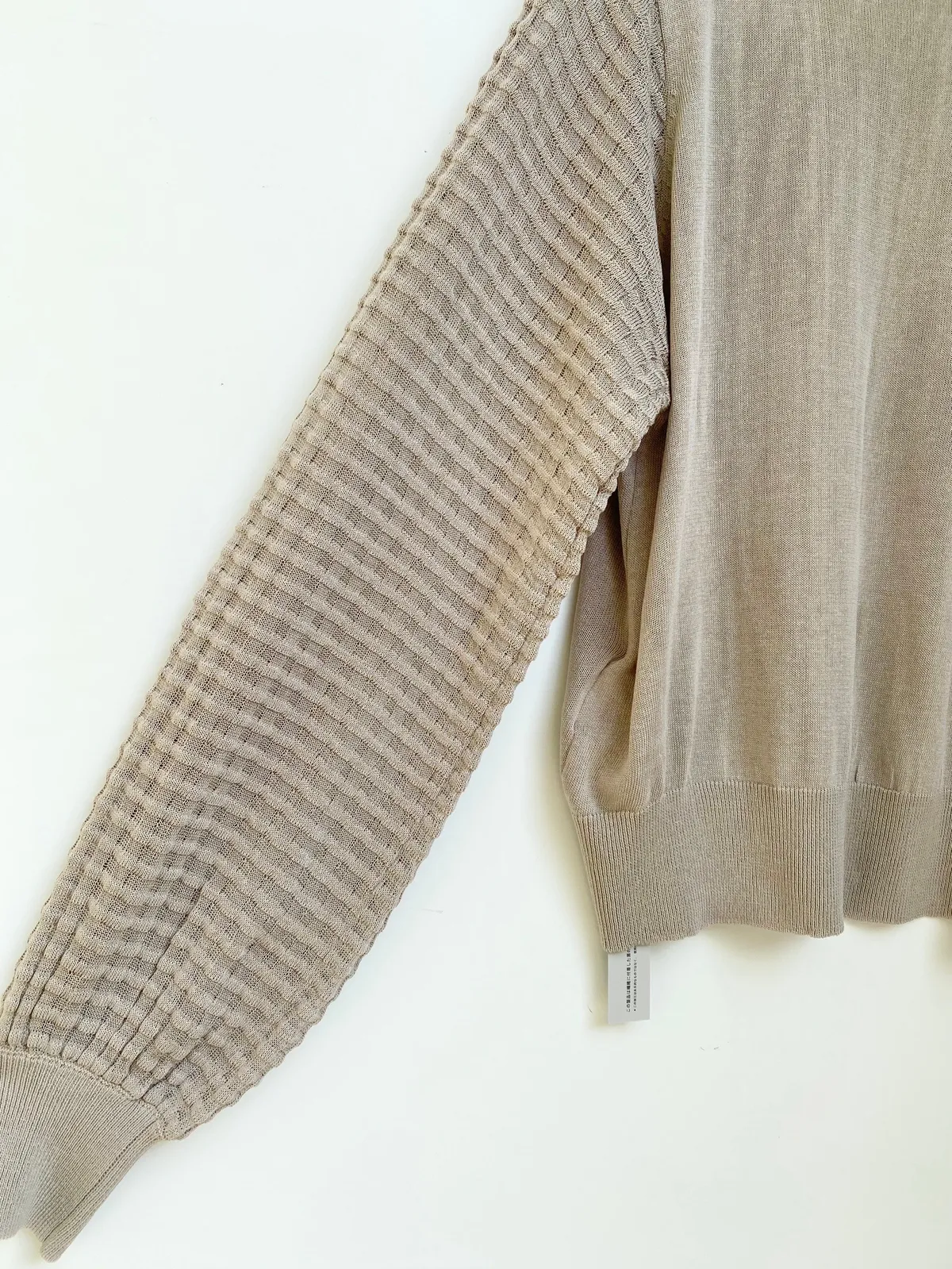 方格立體織紋拼接袖鉤花上衣