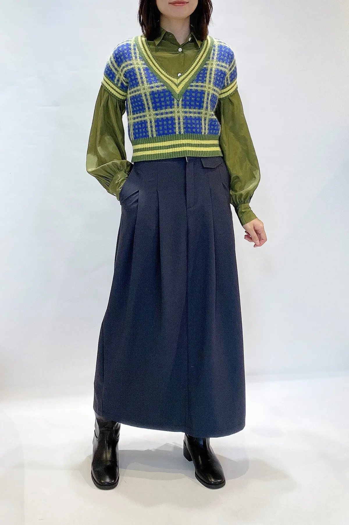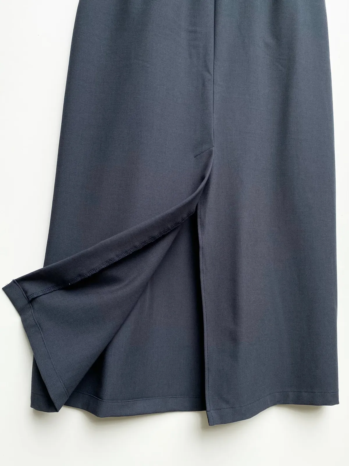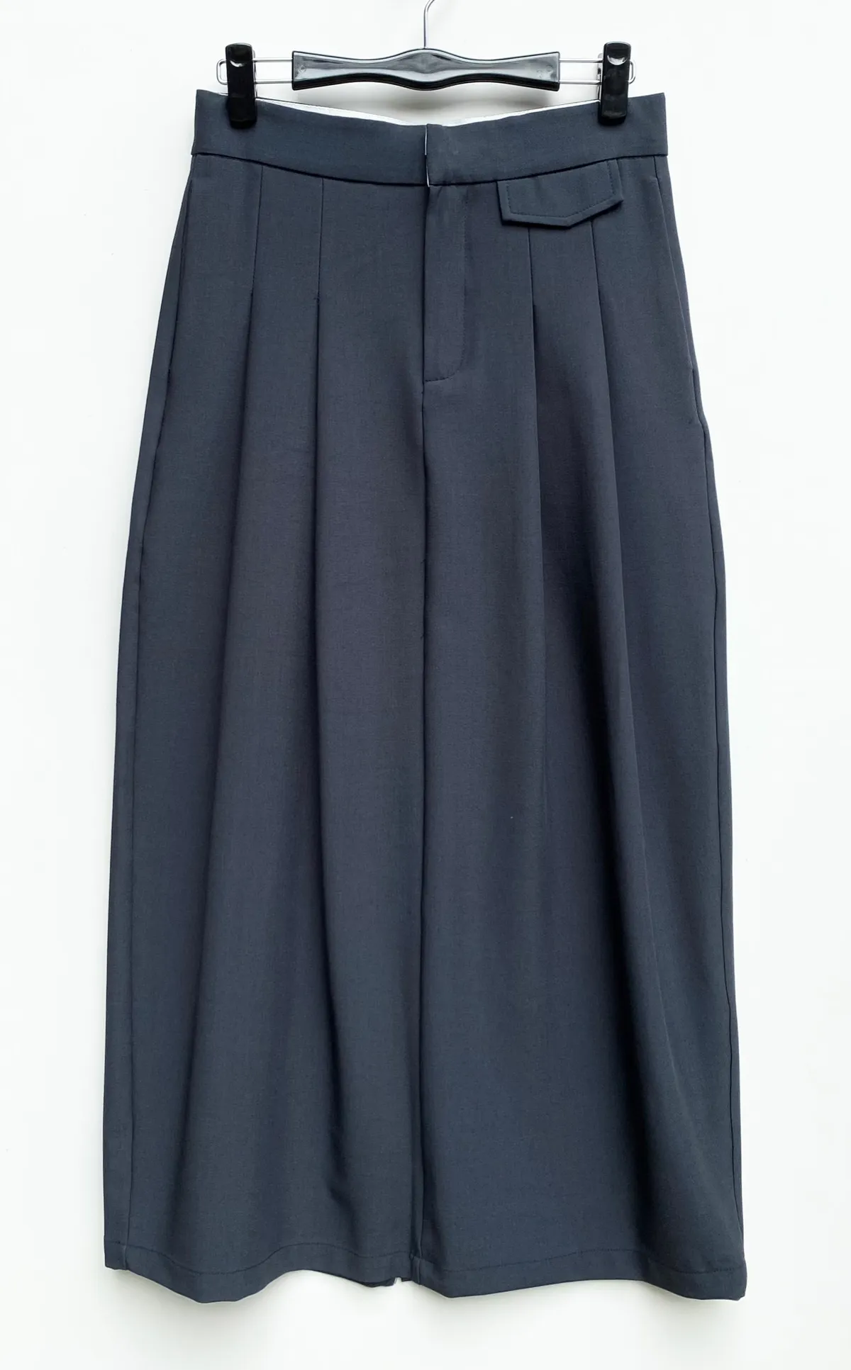 假口袋寬摺後開岔長裙