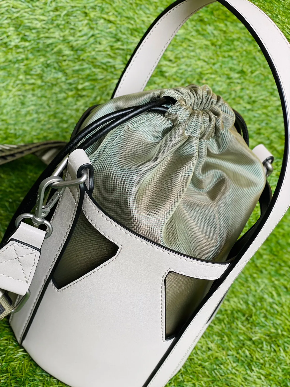 圓桶簍空束口肩背包