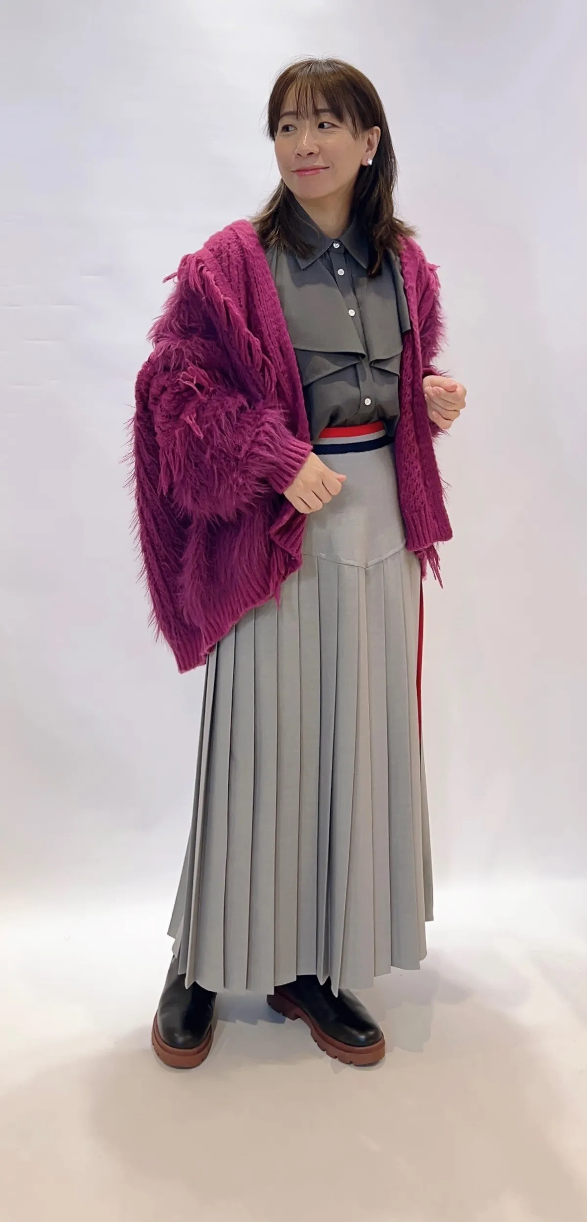 .長度約落在臀下左右,落肩抓袖設計,具有垂墜度,讓身形不放大,有線條造型感