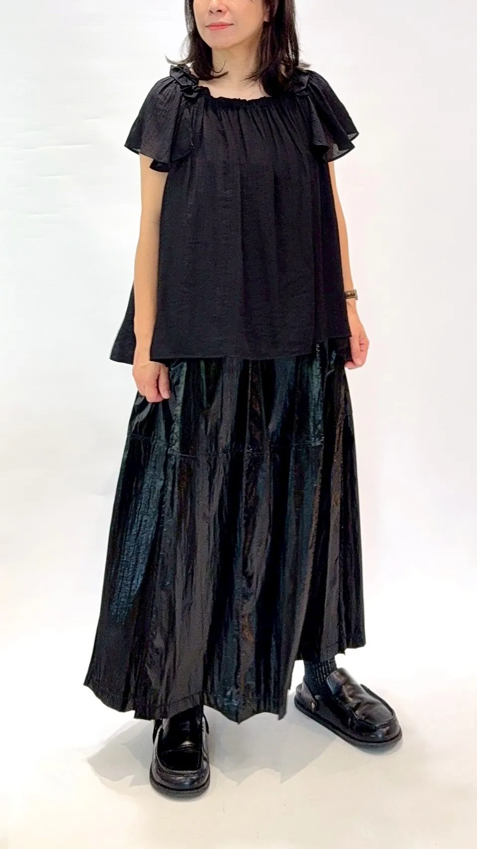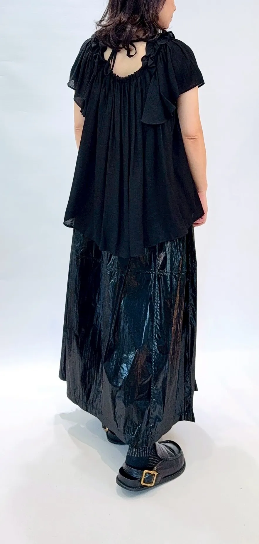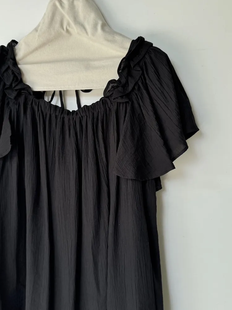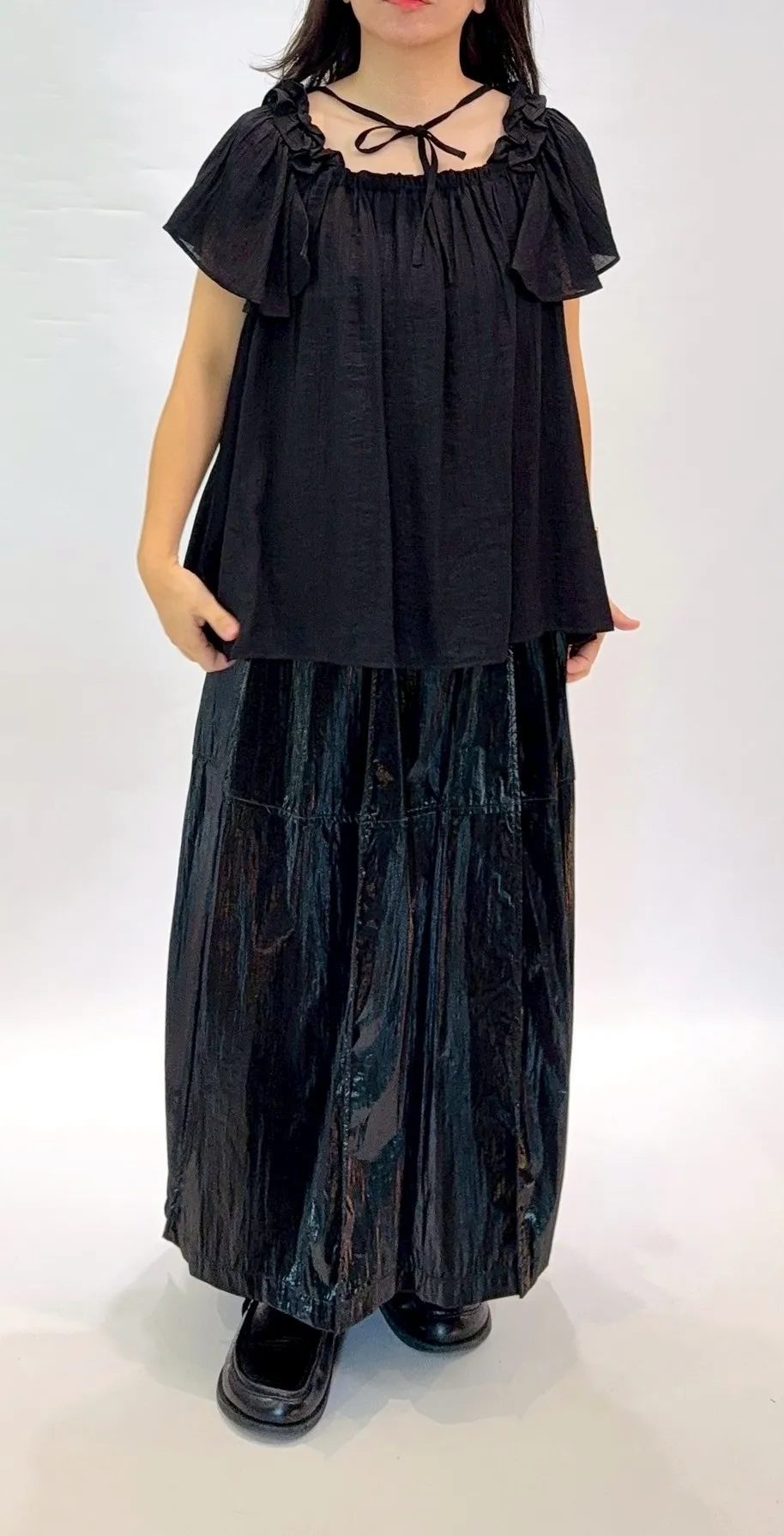 肩荷葉邊綁帶上衣