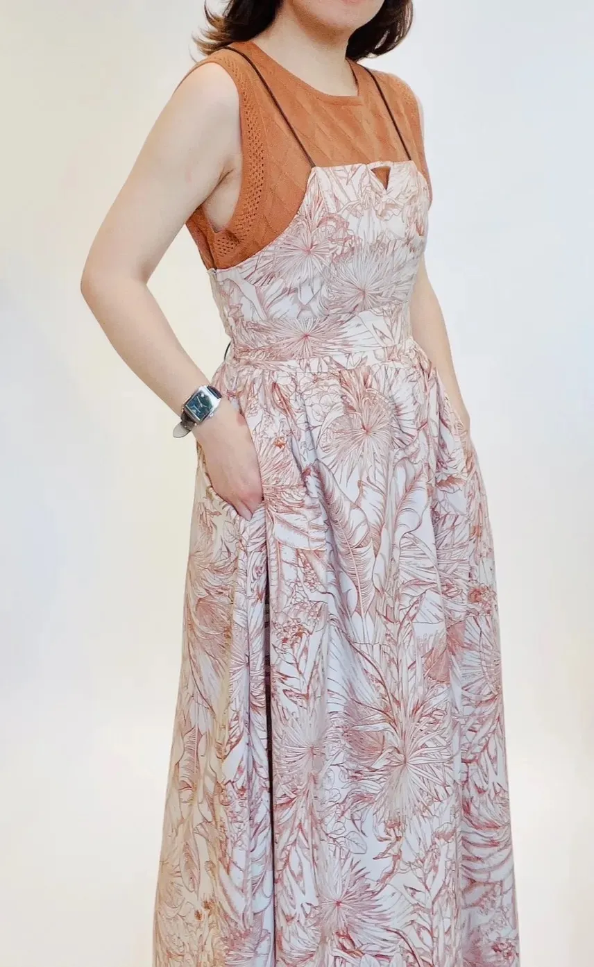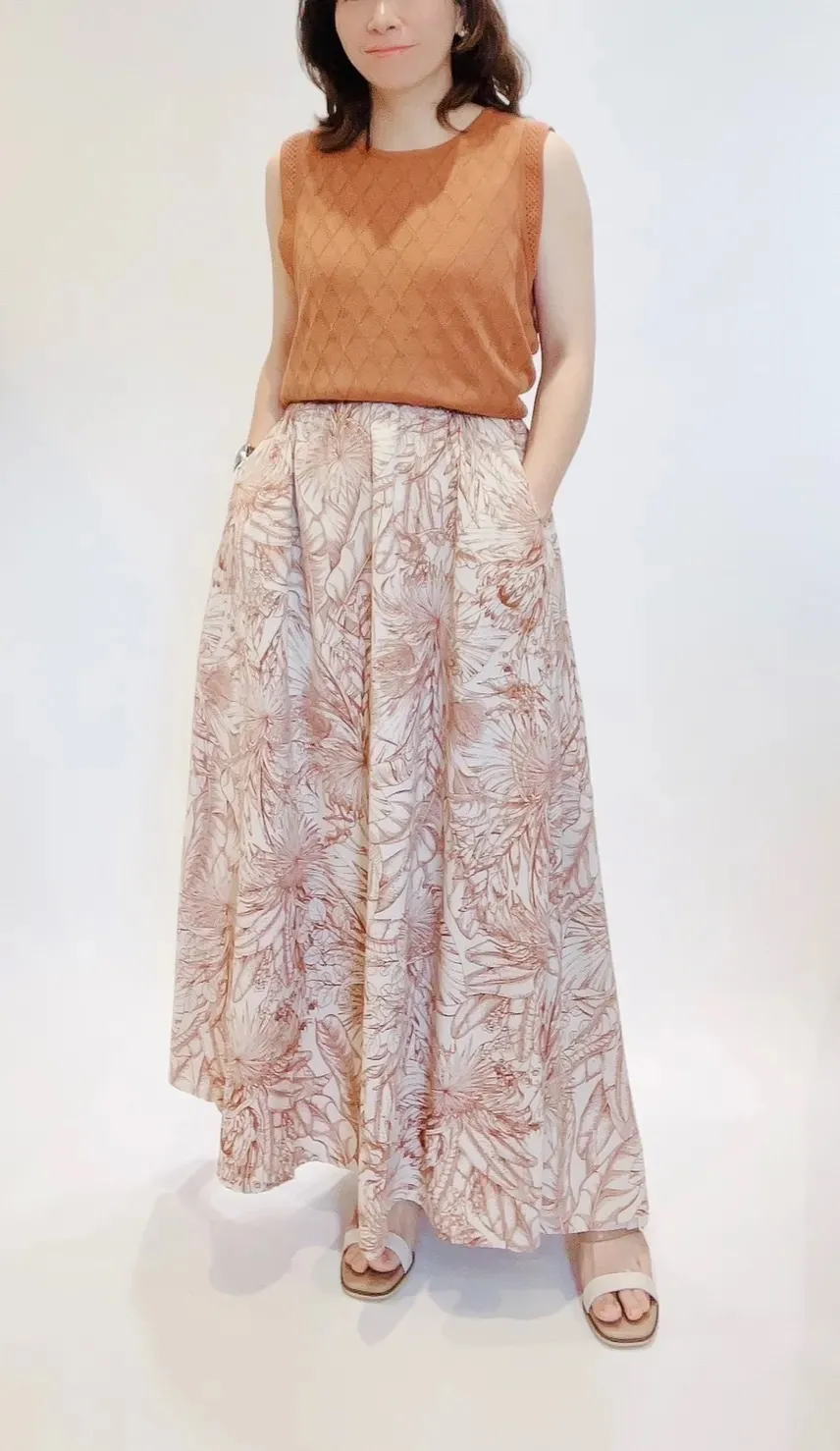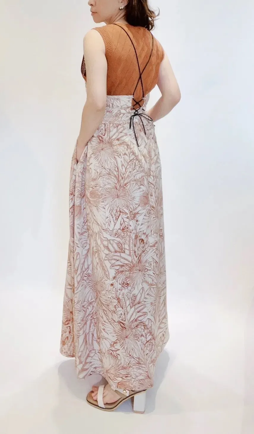 高腰棕櫚葉紋輕量長裙