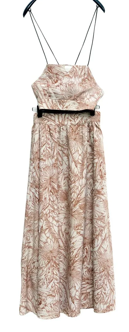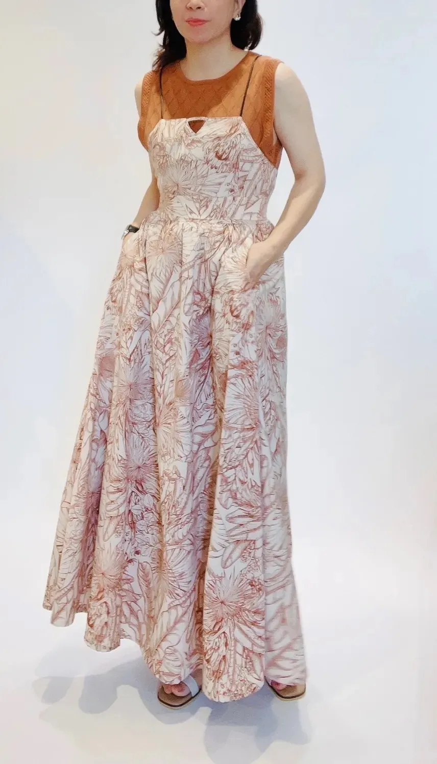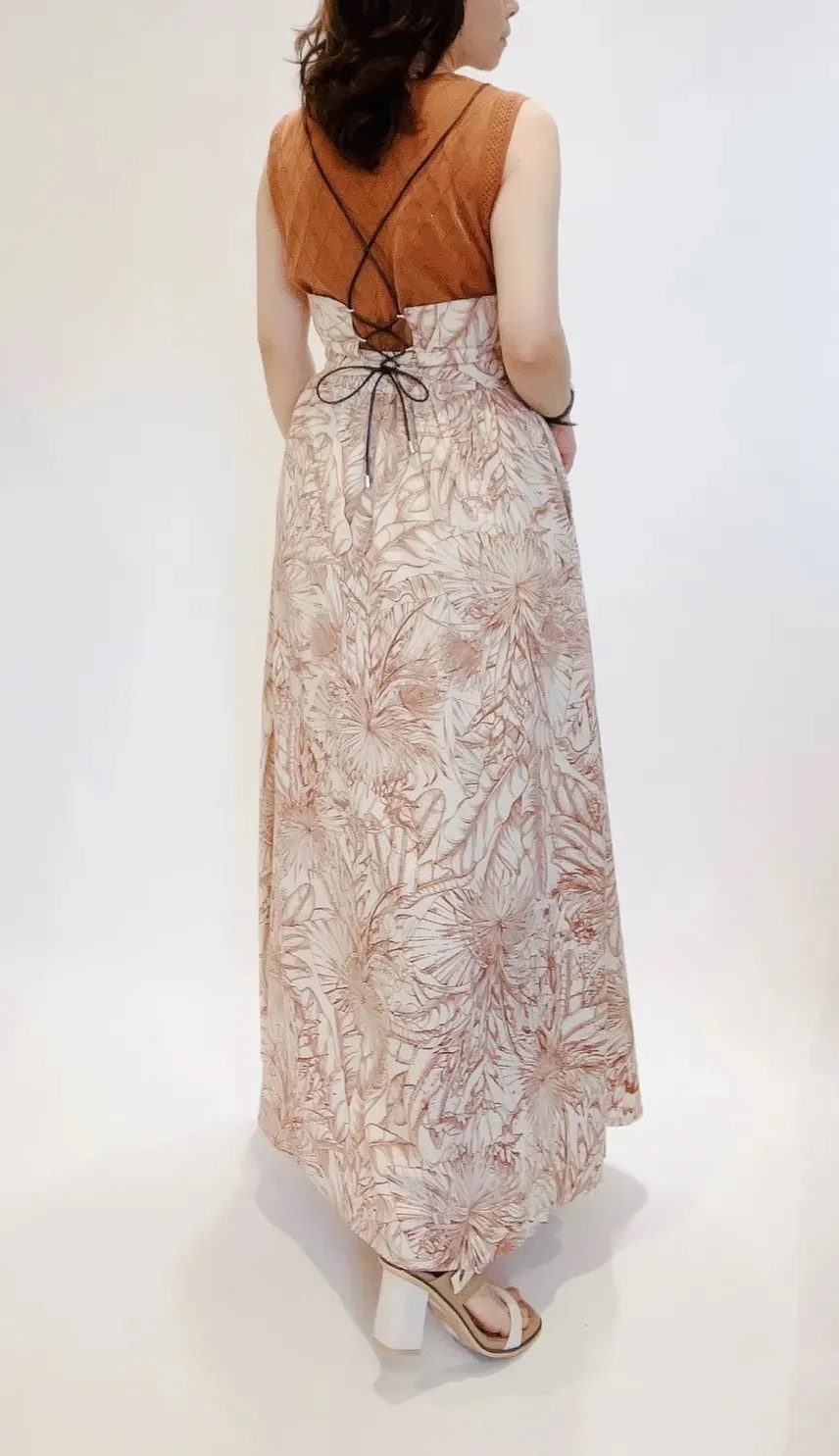 高腰棕櫚葉紋輕量長裙