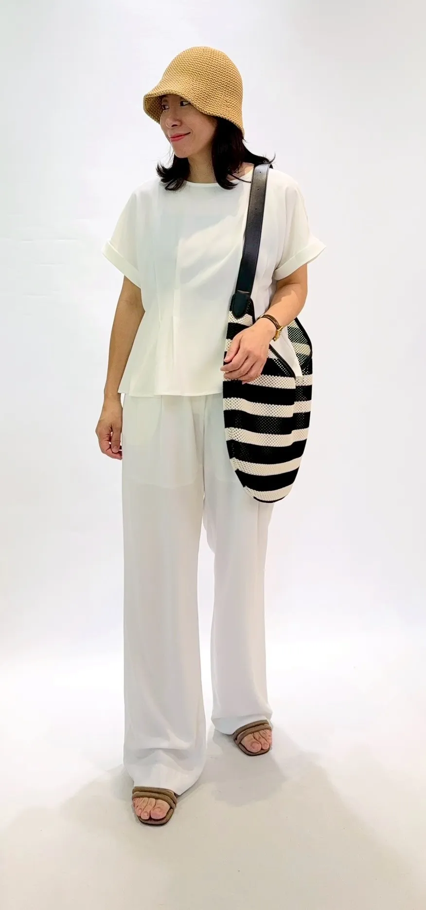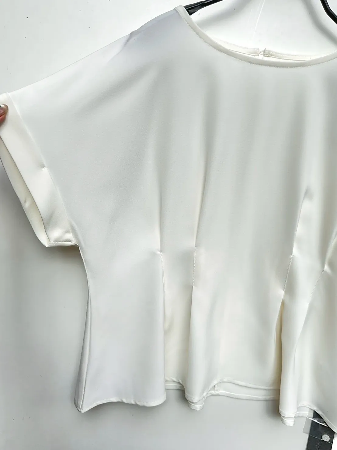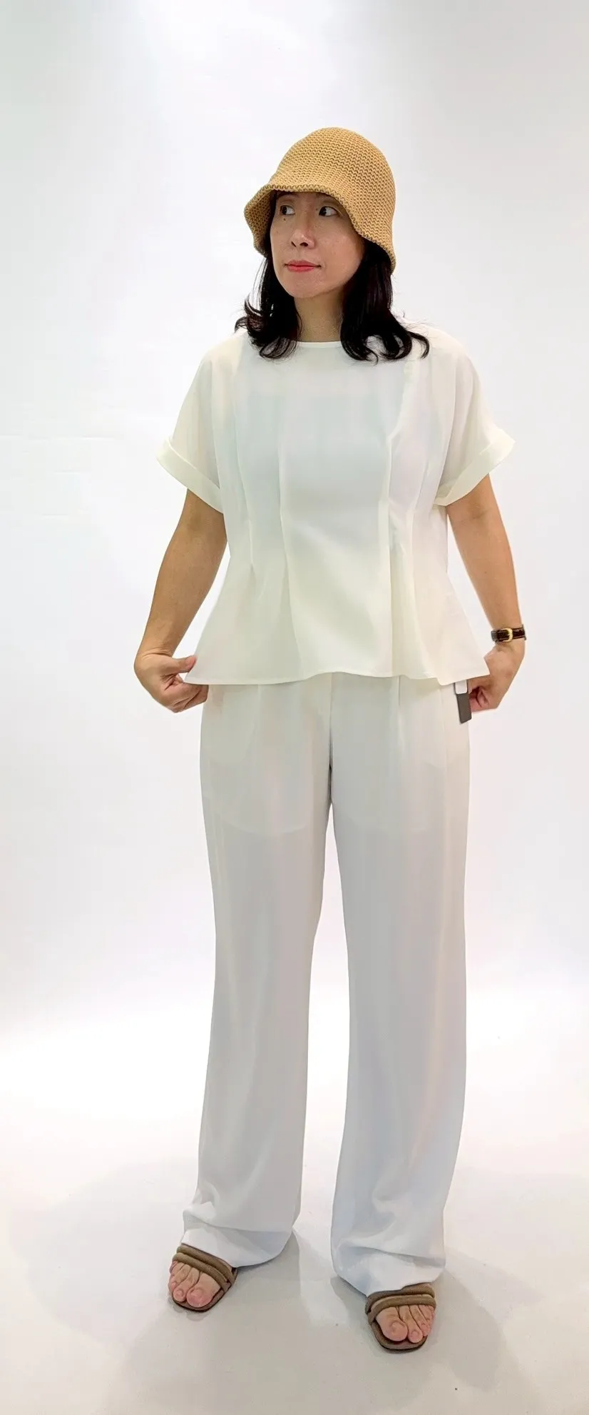 仿麻紋壓褶上衣