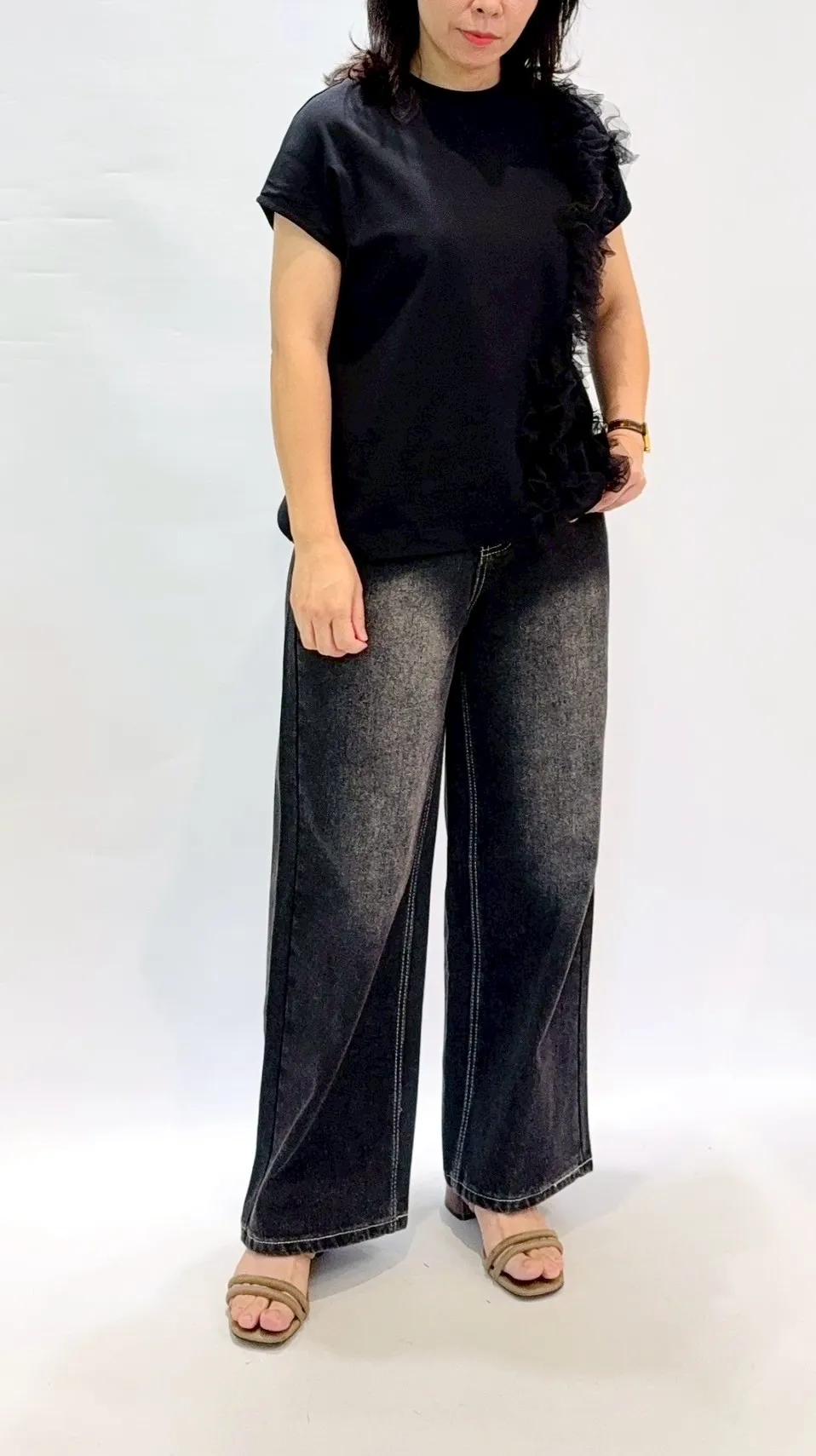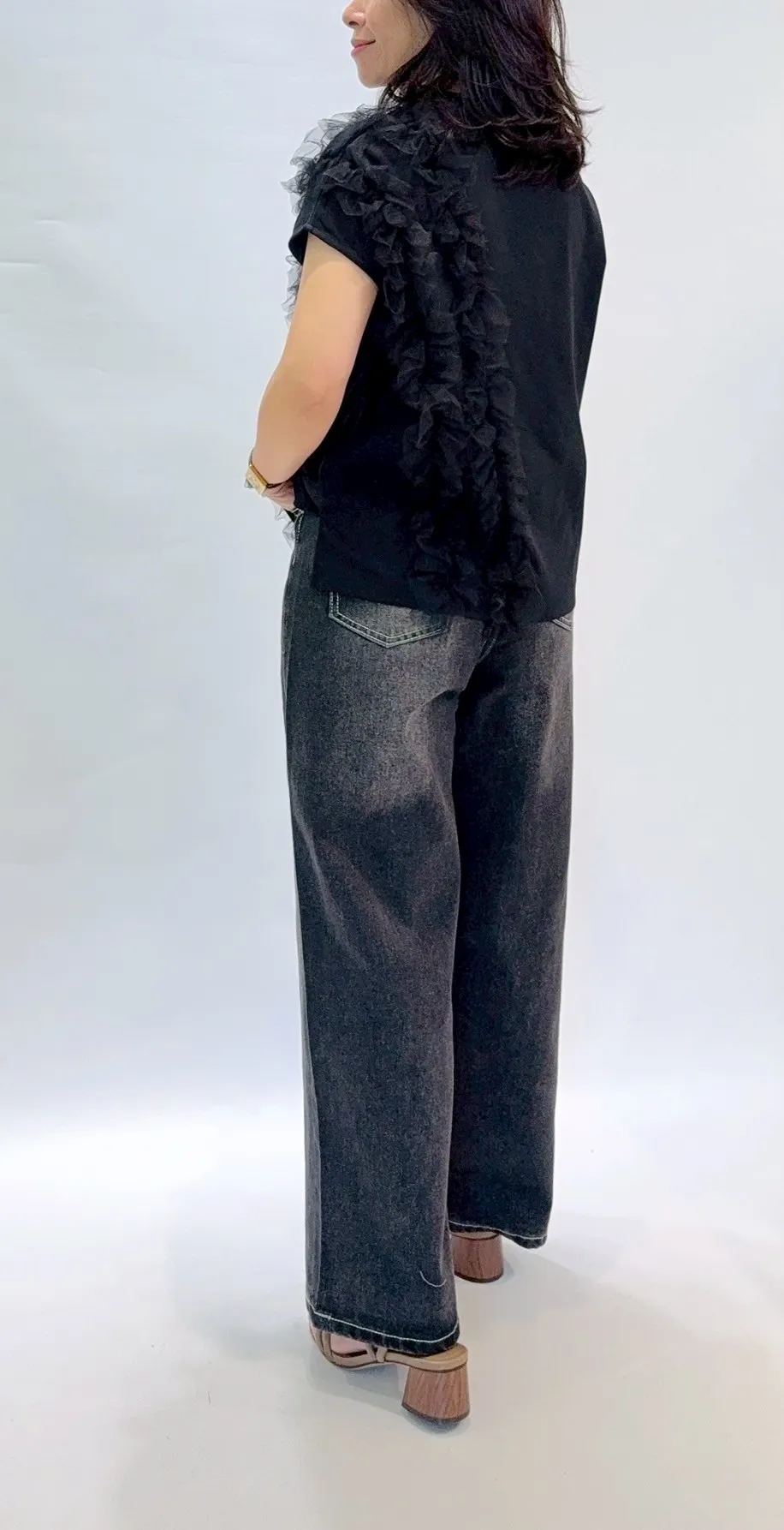 刷色復古牛仔寬褲