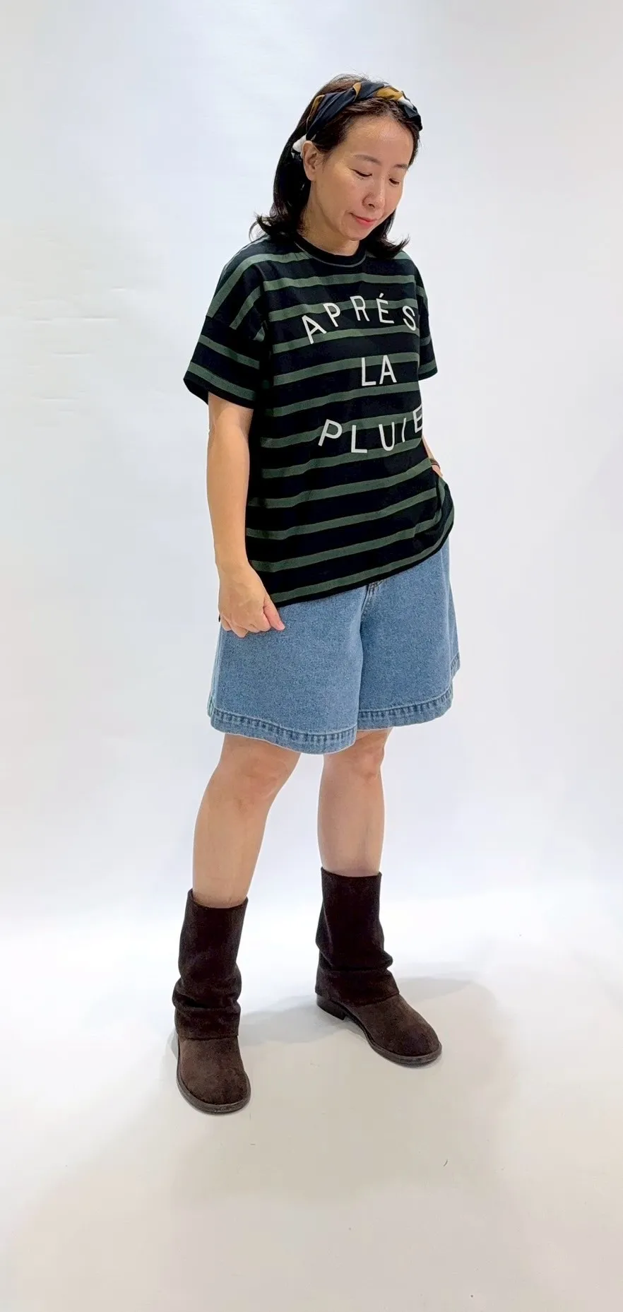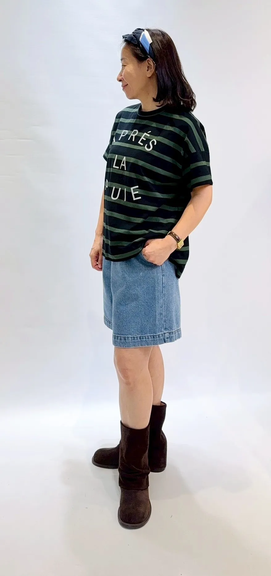 日製拔染橫條文字Tee
