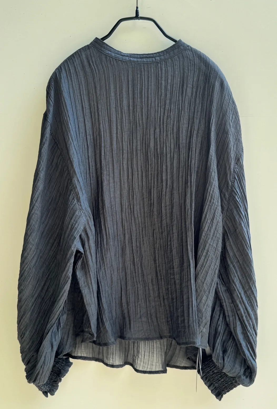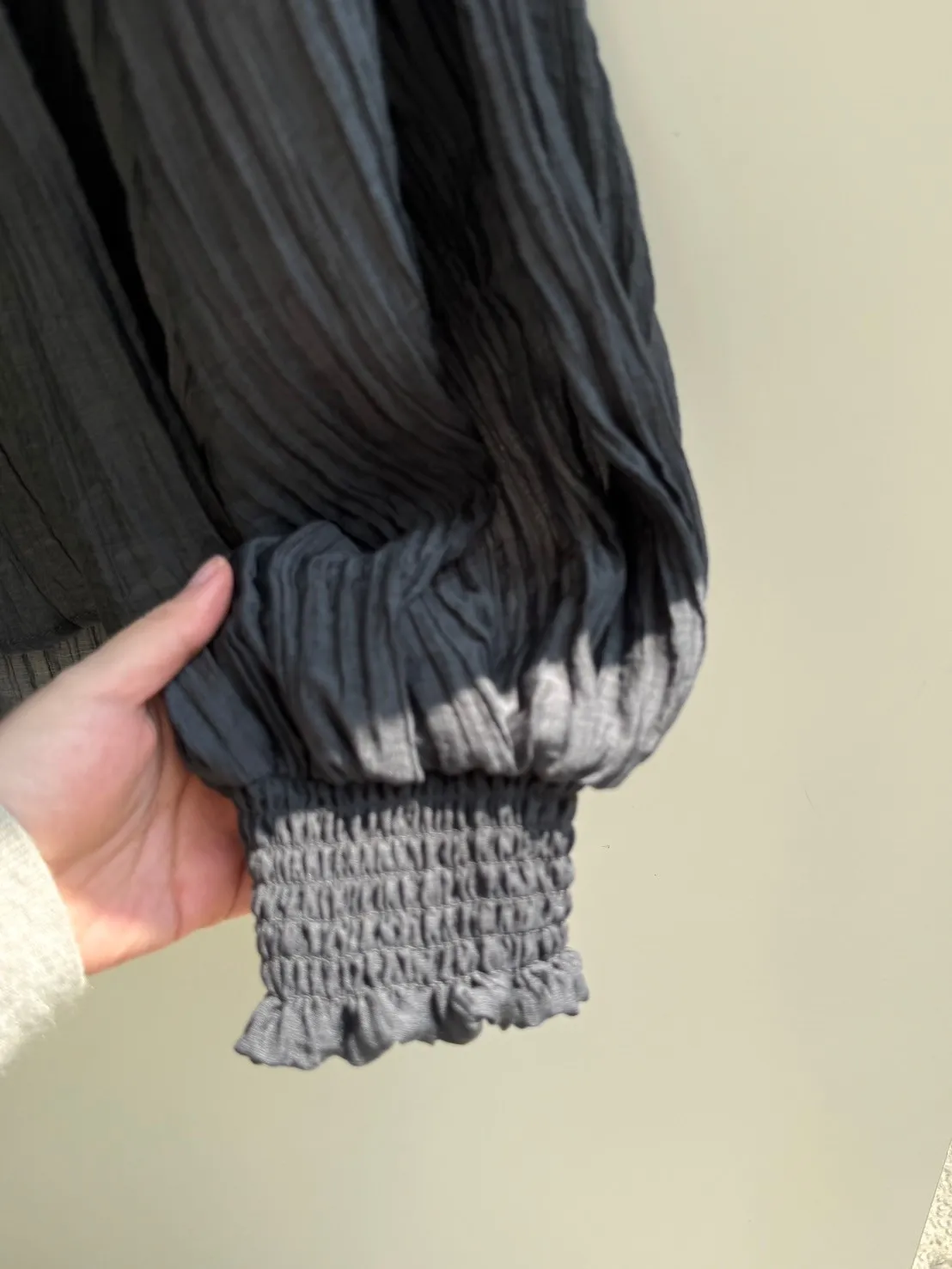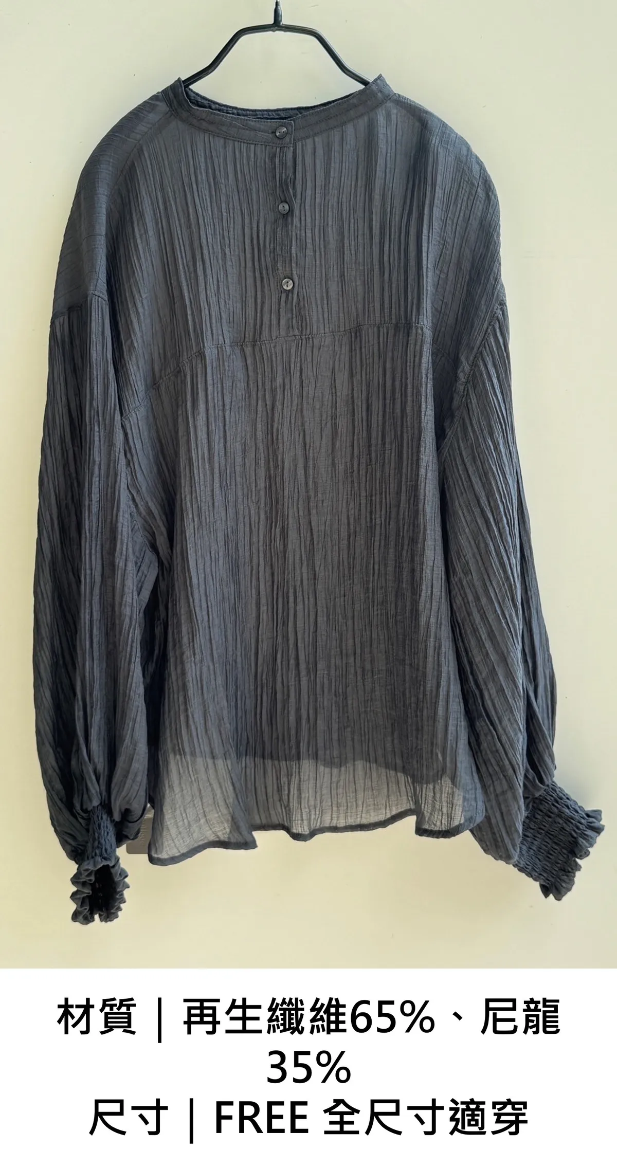 蓬袖薄透氣紋理上衣