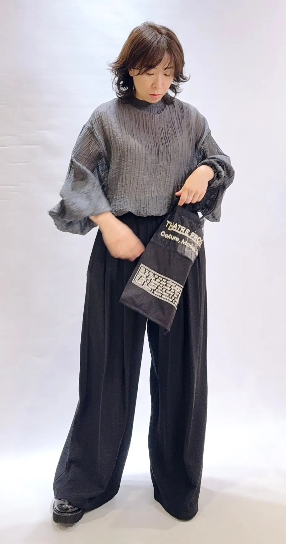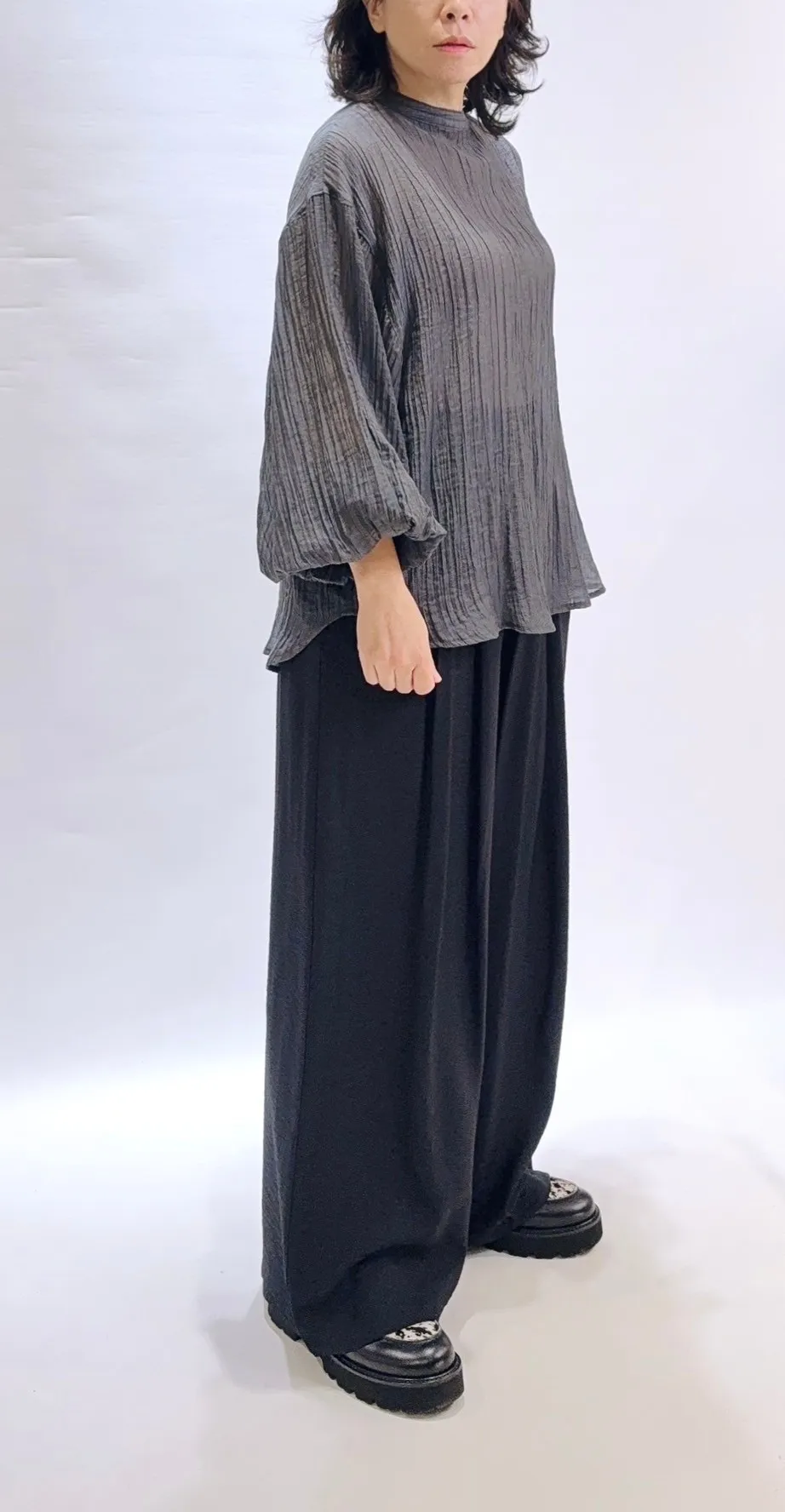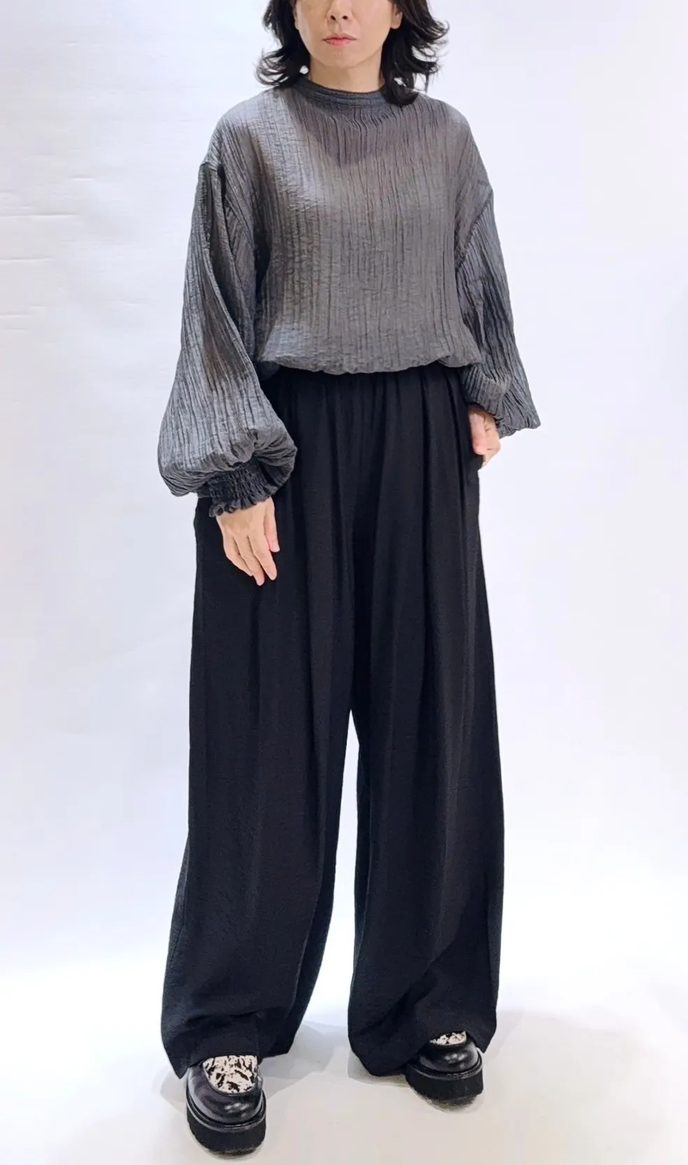 蓬袖薄透氣紋理上衣