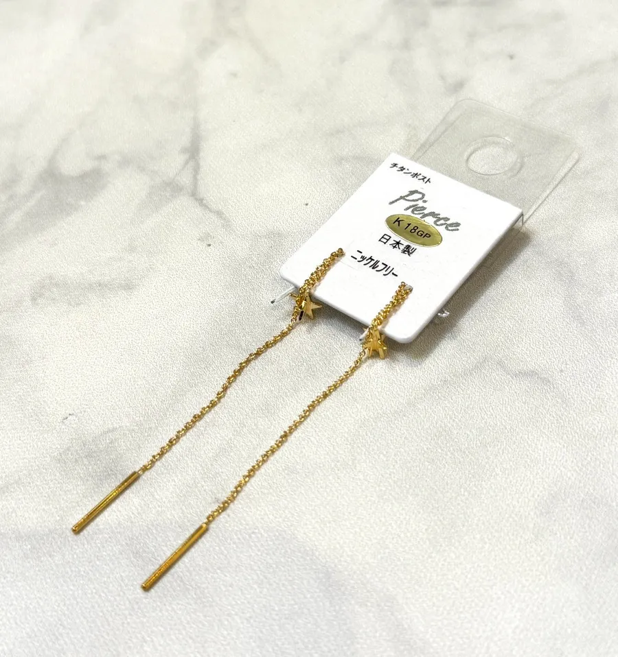 18k小星星長短鍊耳環