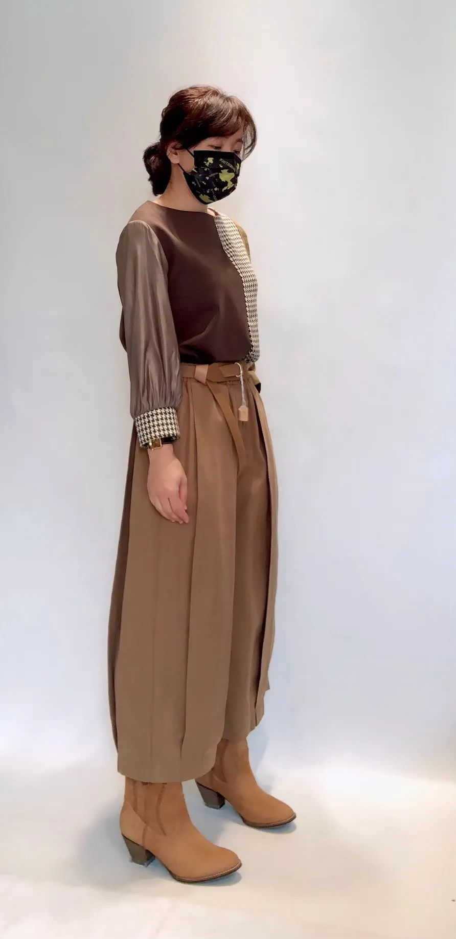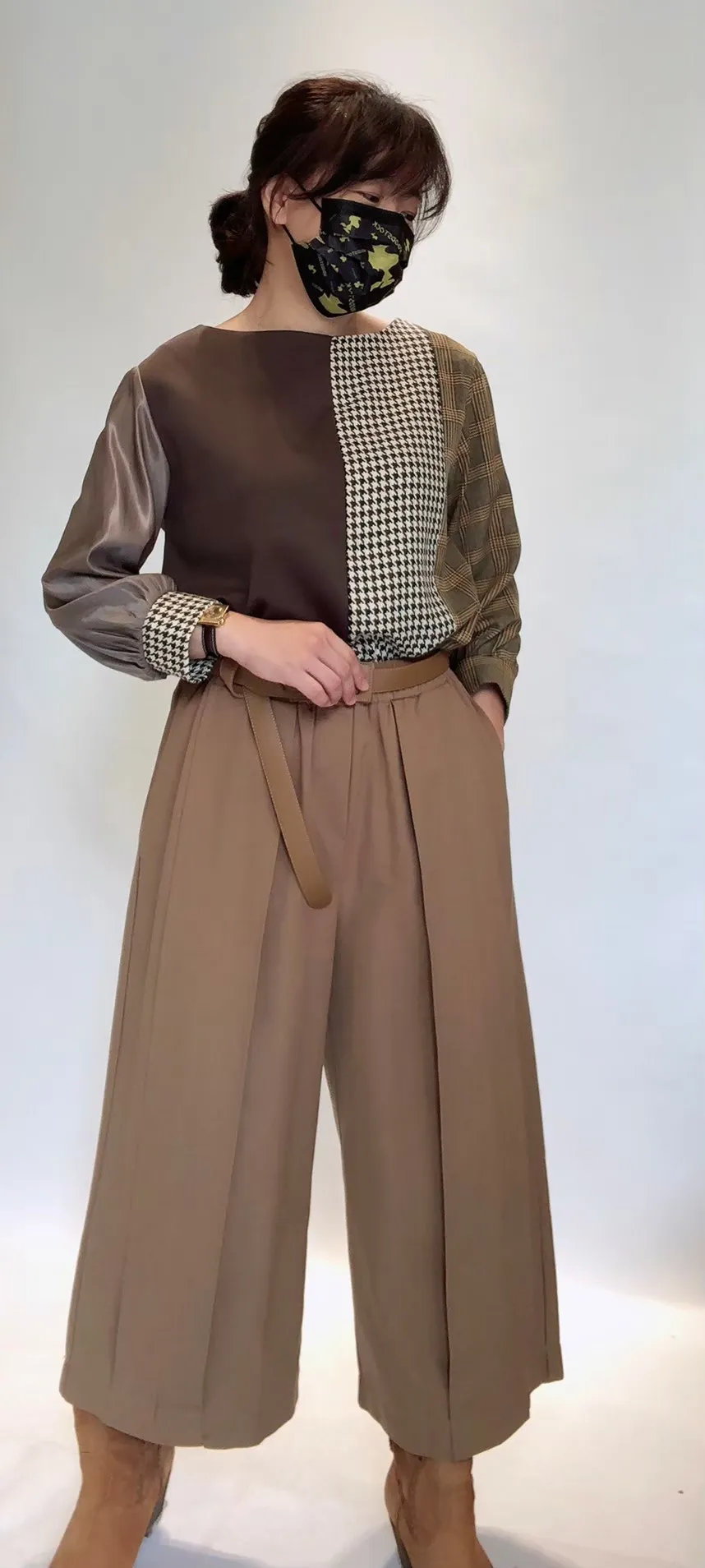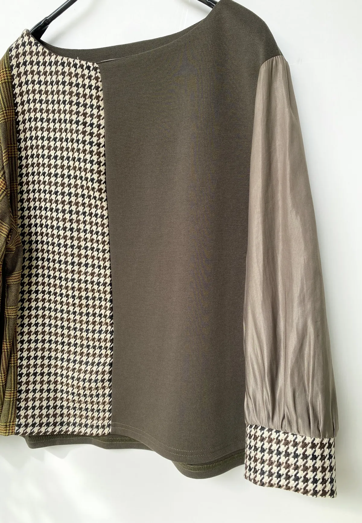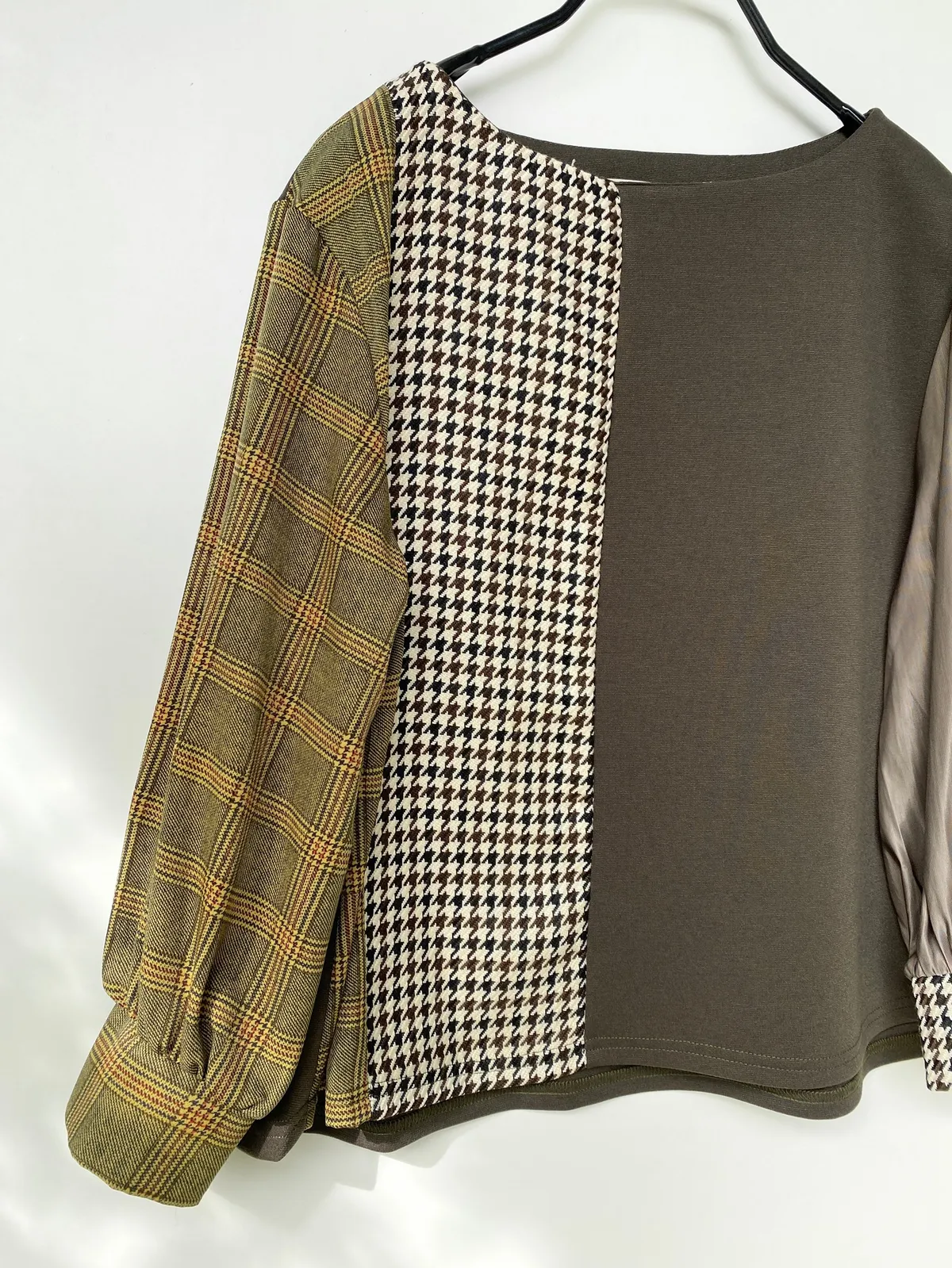 [微瑕疵出清價]千鳥格紋拼接上衣