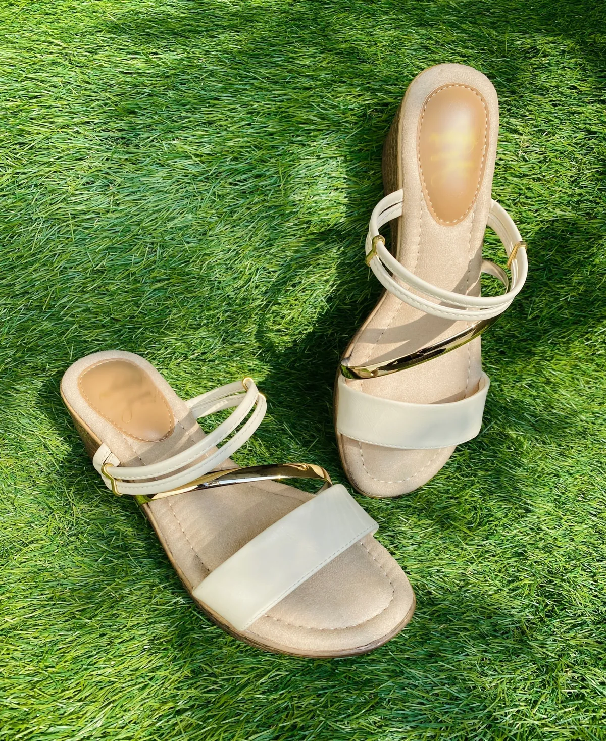 楔型鞋的優點在於它的輕巧度以及有著流暢線條的穩固後跟,在行走時可以減輕穿高跟鞋的負擔同時,後跟的設計也能更加穩定好走,不容易會因為和地面接觸的面積小而有拐腳的風險存在。