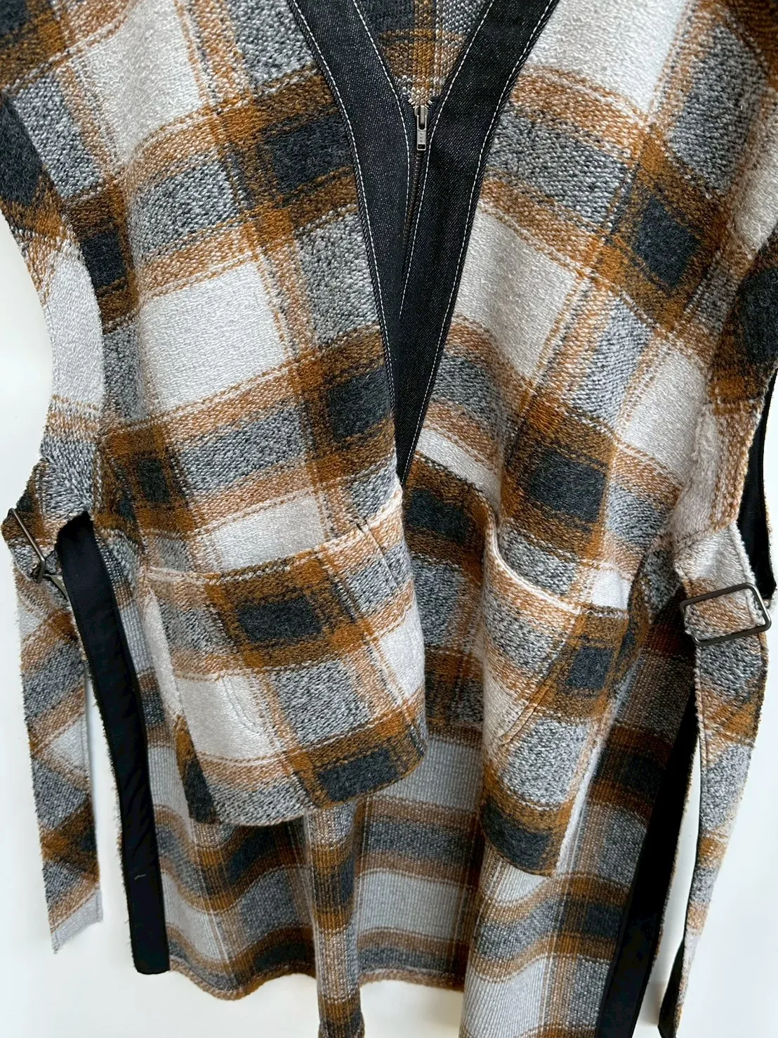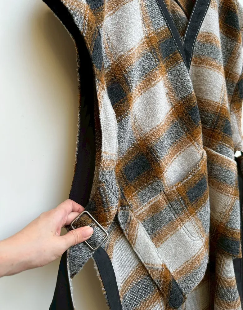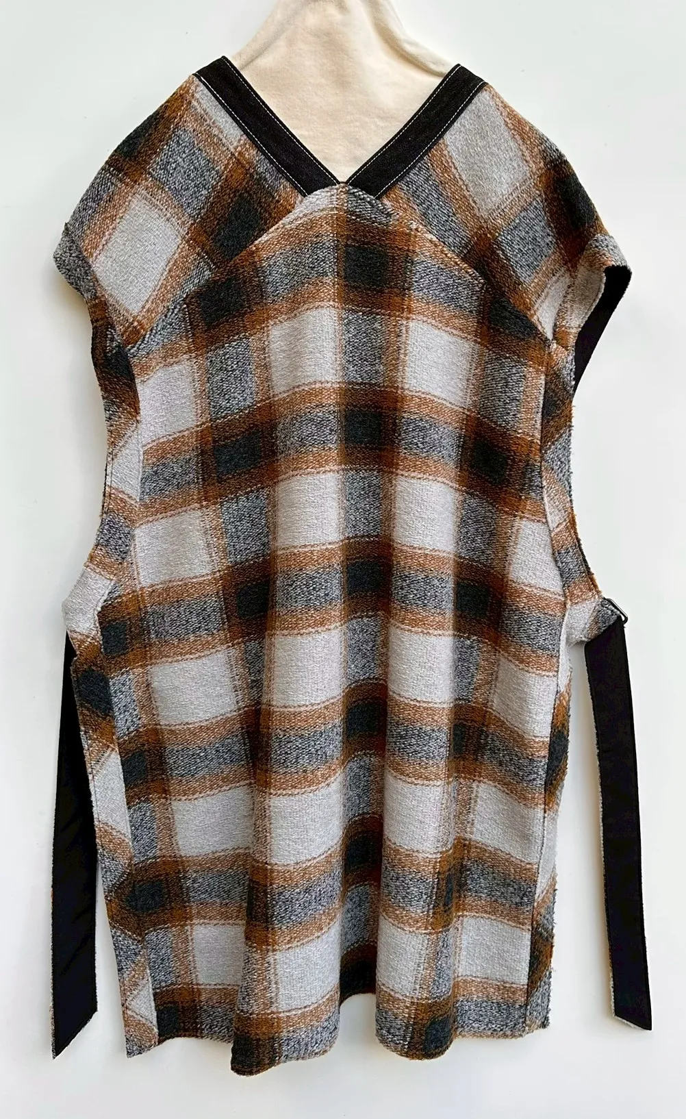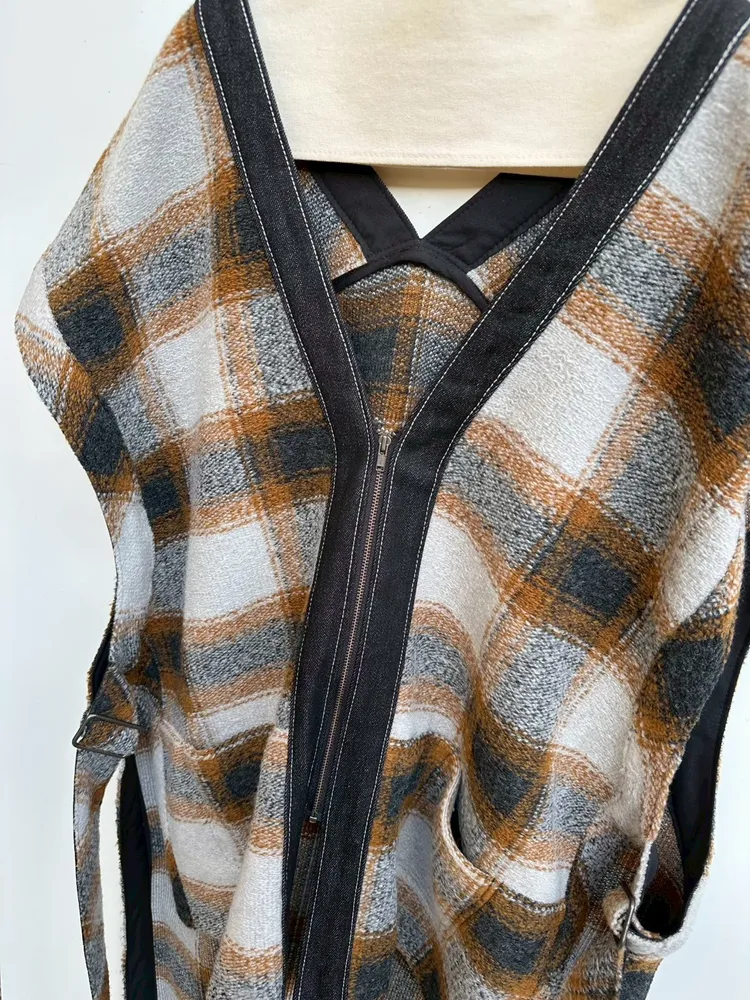 V領格紋背心造型罩衫