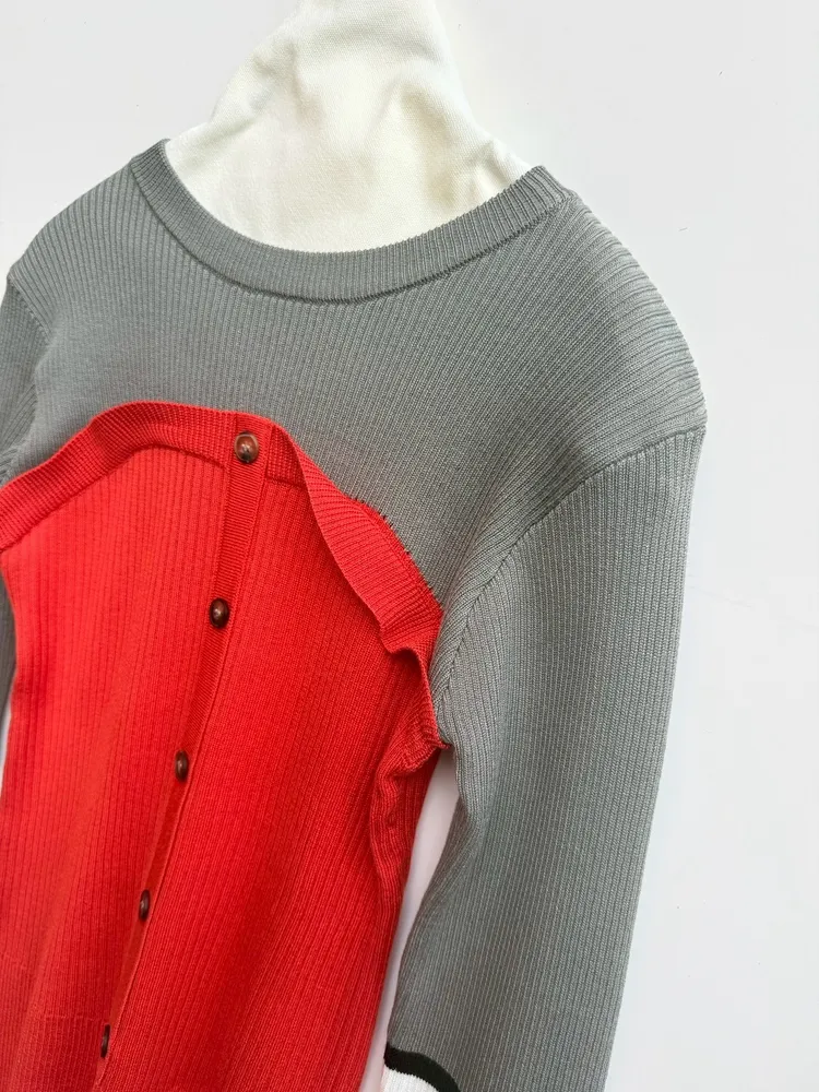 撞色排扣針織上衣