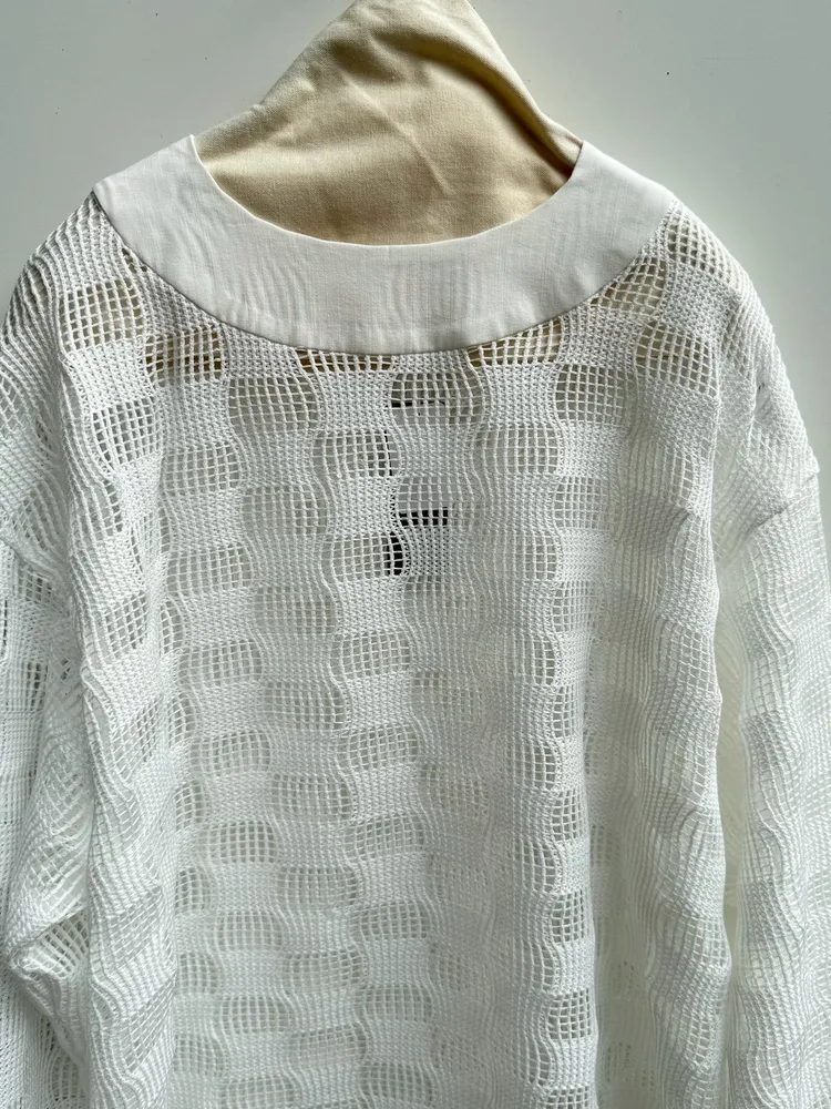 方格簍空格紋上衣