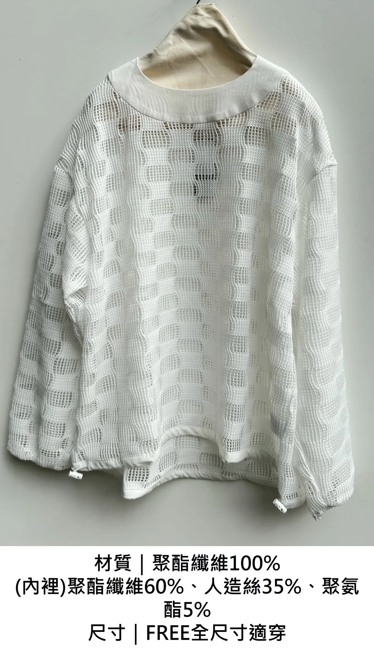 | F | 詳細尺寸請私訊官方Line/粉絲專頁 | 聚酯纖維100%(內裡)聚酯纖維60%、人造絲35%、聚氨酯5% | 155CM/53KG |