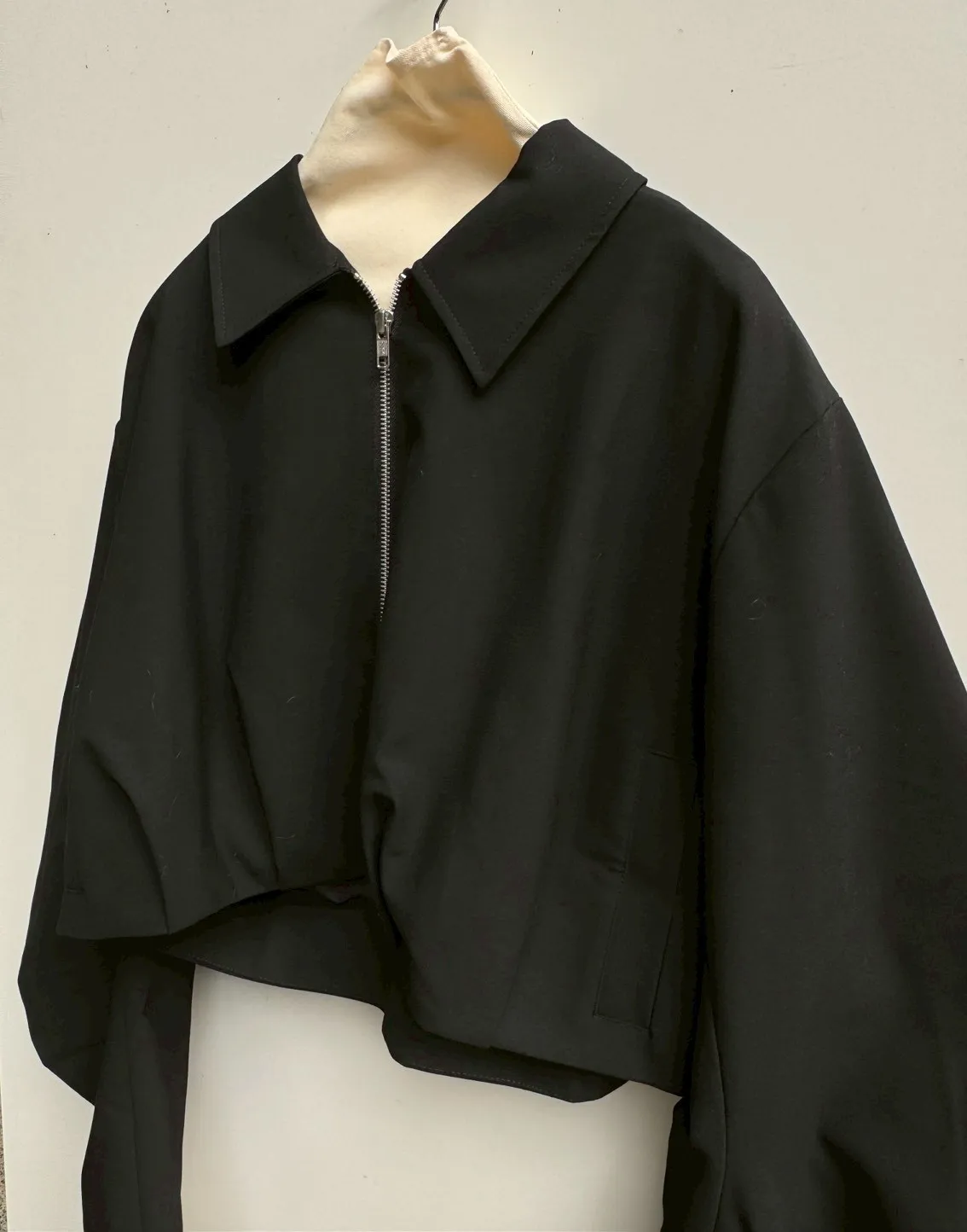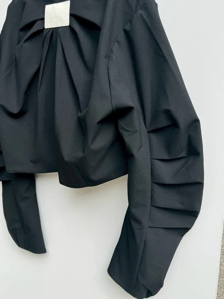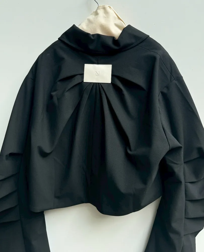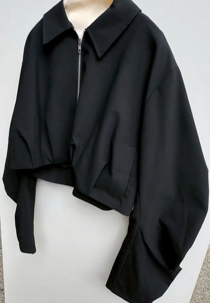 寬疊袖後logo短版外套